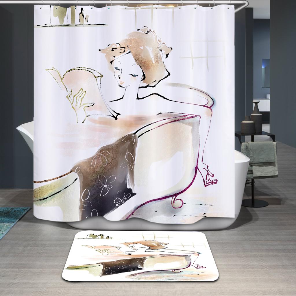 Girls Women Bedroom Bathroom Shower Room Decor Cute reading Girls Print Charms Bath Shower Curtain With 12 Hooks