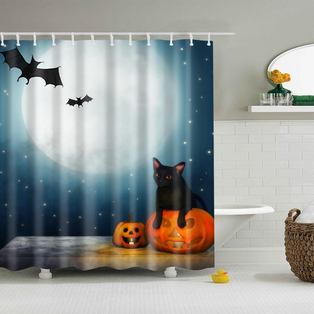 Halloween Printed Polyester Bathroom Shower Curtain Halloween Moon
