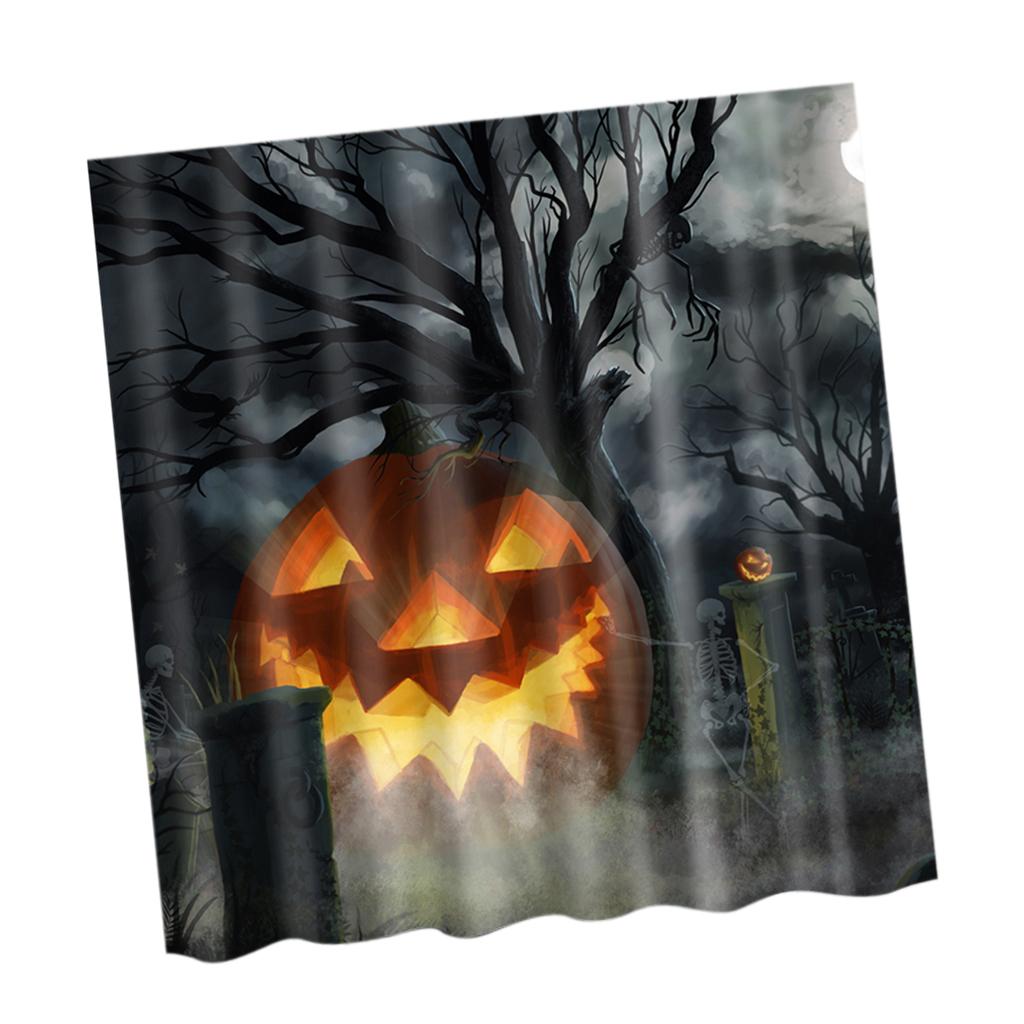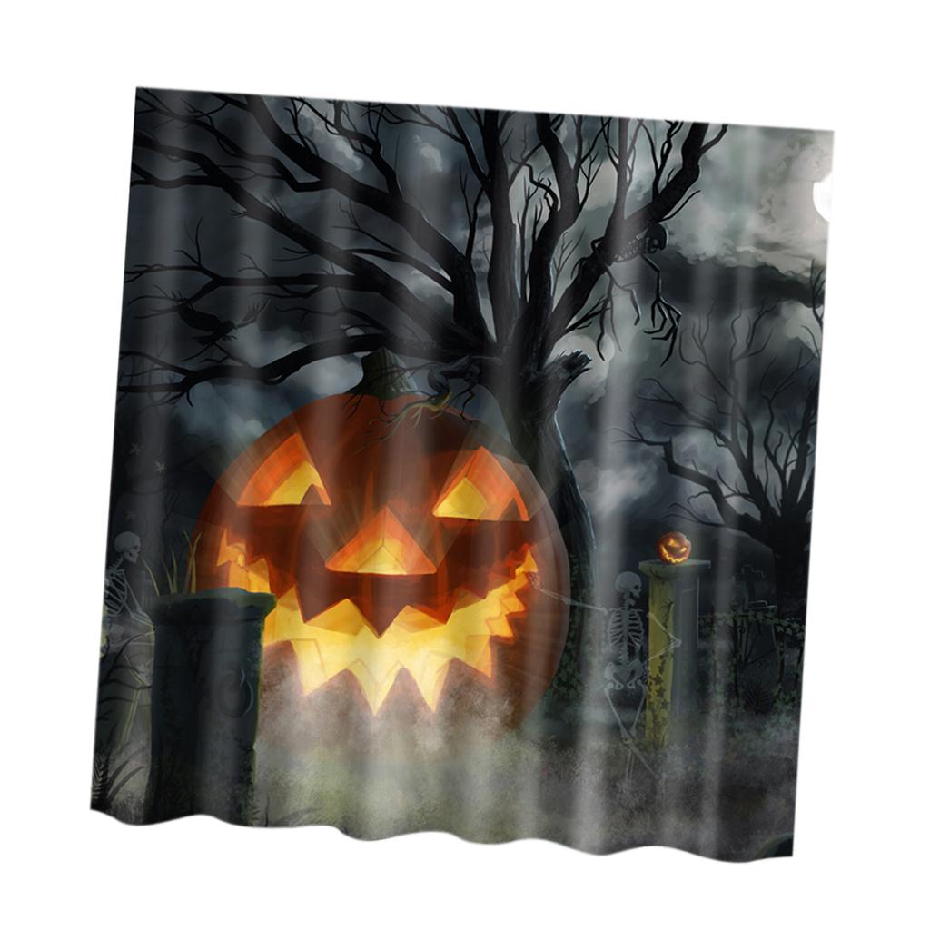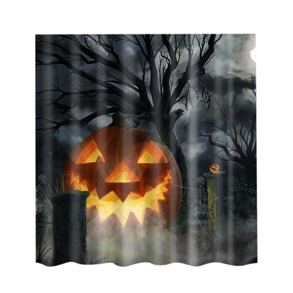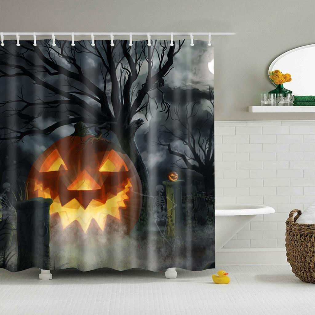 Halloween Printed Polyester Bathroom Shower Curtain Pumpkin Lamp