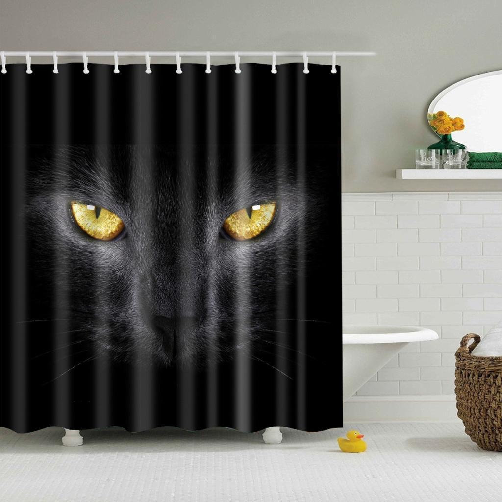 Home Bathroom Bedroom Door Window Use Extra Long Fabric Bath Shower Cat Eyes Print Pattern Curtain With 12 Hooks
