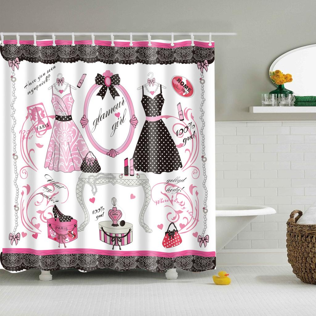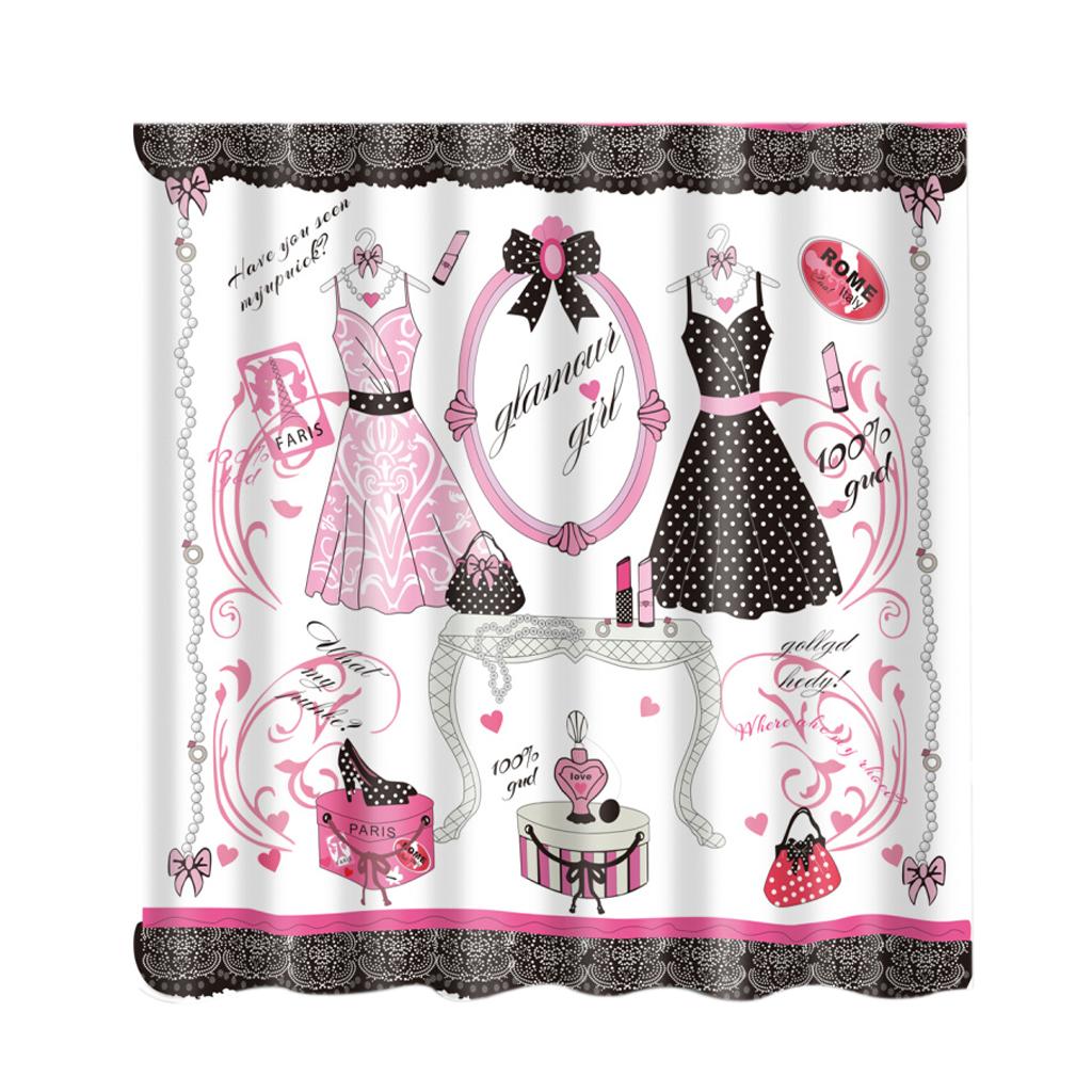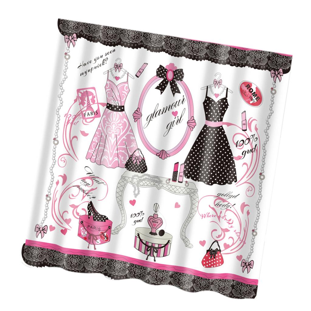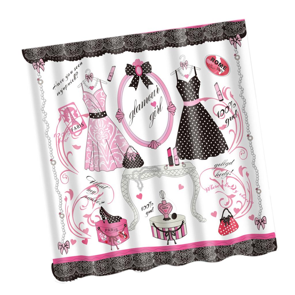 Home Bathroom Bedroom Door Window Use Extra Long Fabric Bath Shower Girls Dress Print Pattern Curtain With 12 Hooks