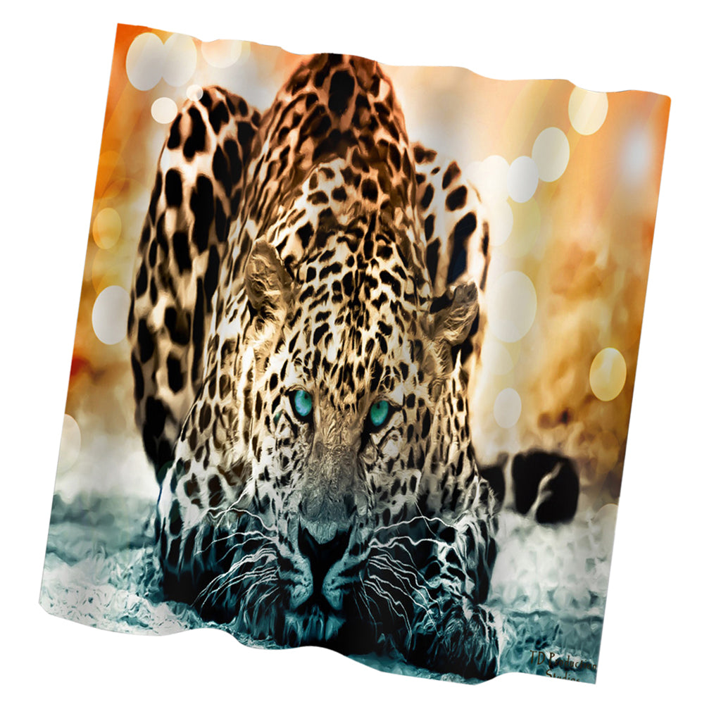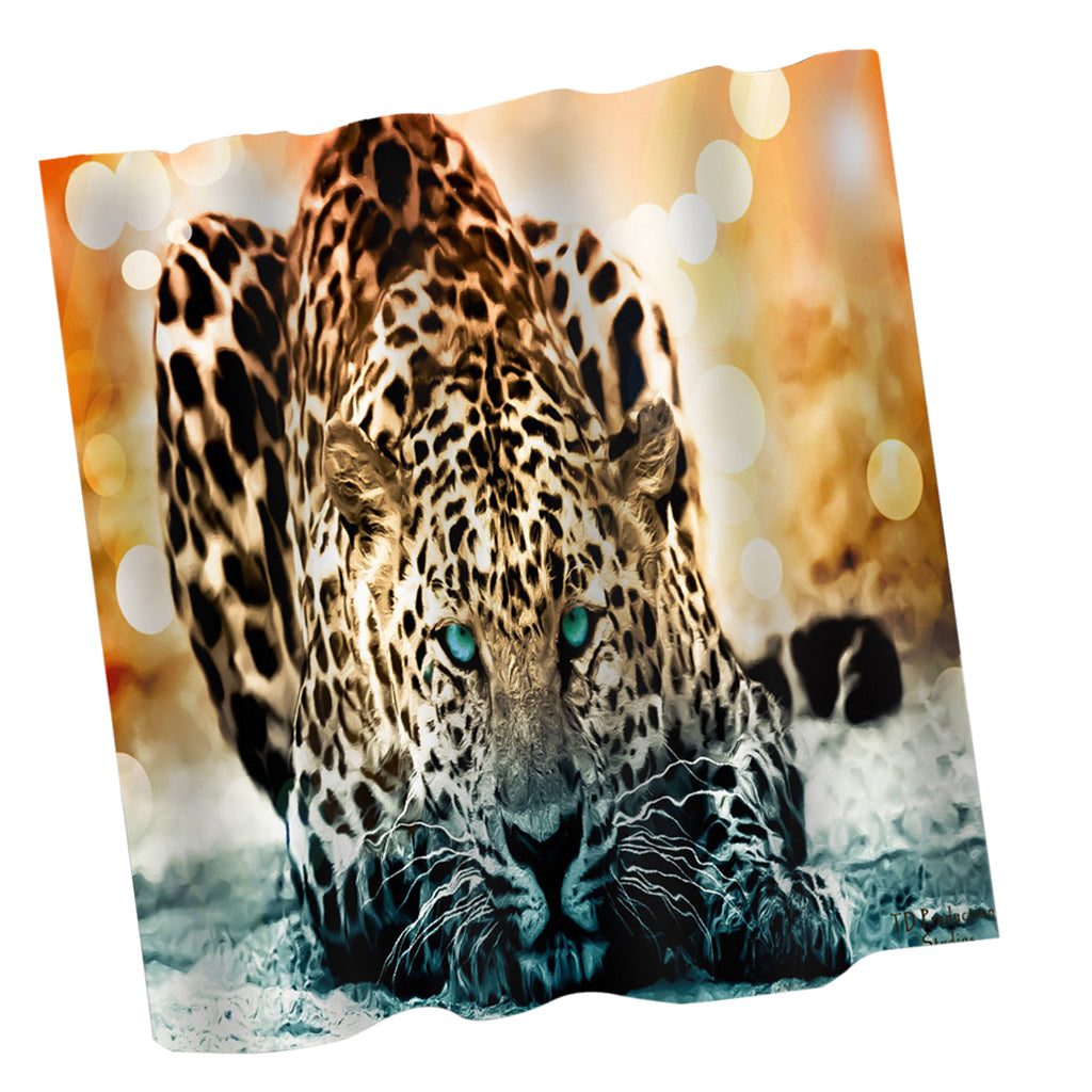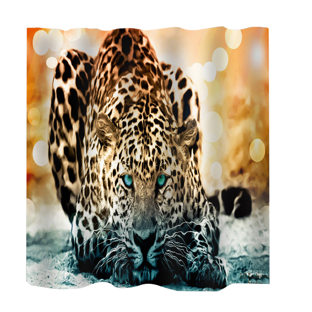 Home Bathroom Bedroom Door Window Use Extra Long Fabric Bath Shower Leopard Print Pattern Curtain With 12 Hooks