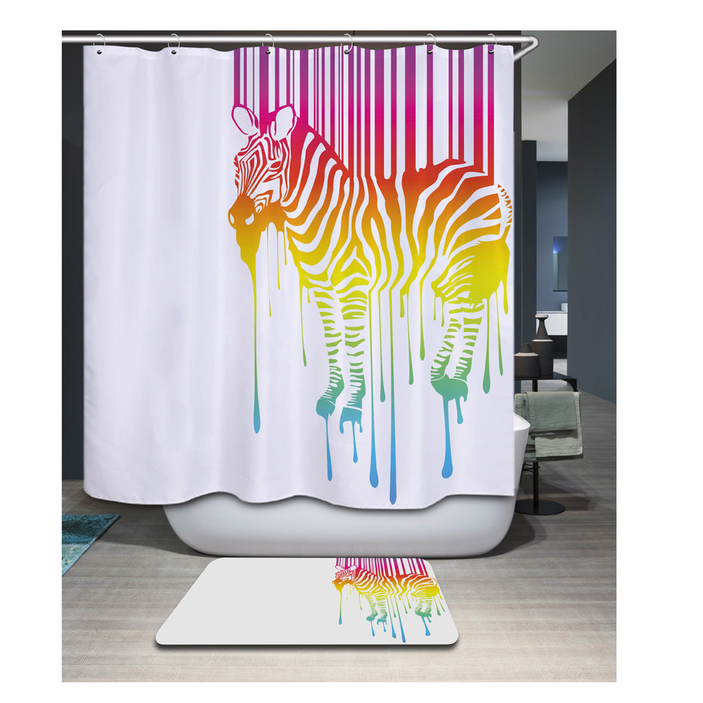 Home Bathroom Bedroom Door Window Use Extra Long Fabric Bath Shower Zebra Print Pattern Curtain With 12 Hooks #1