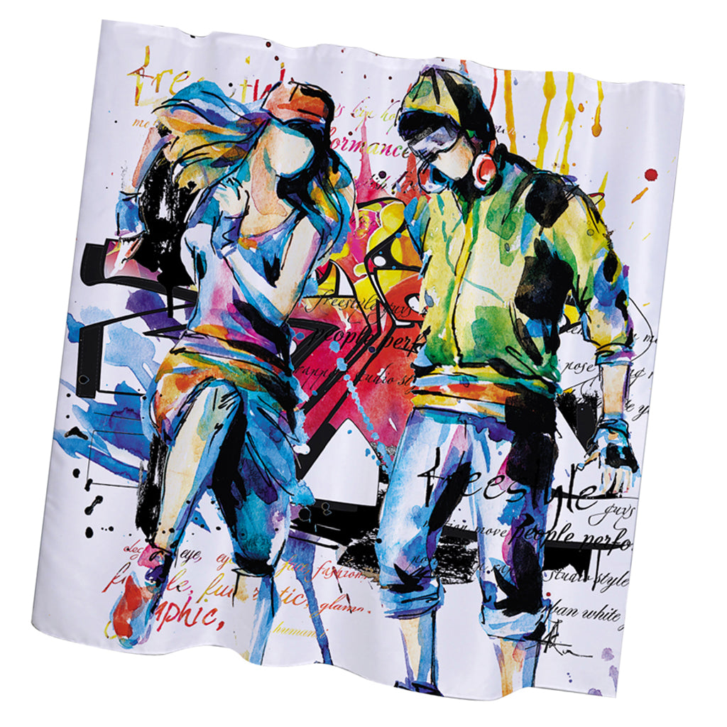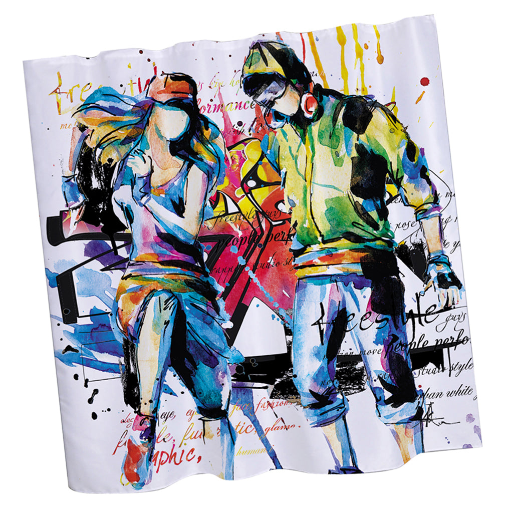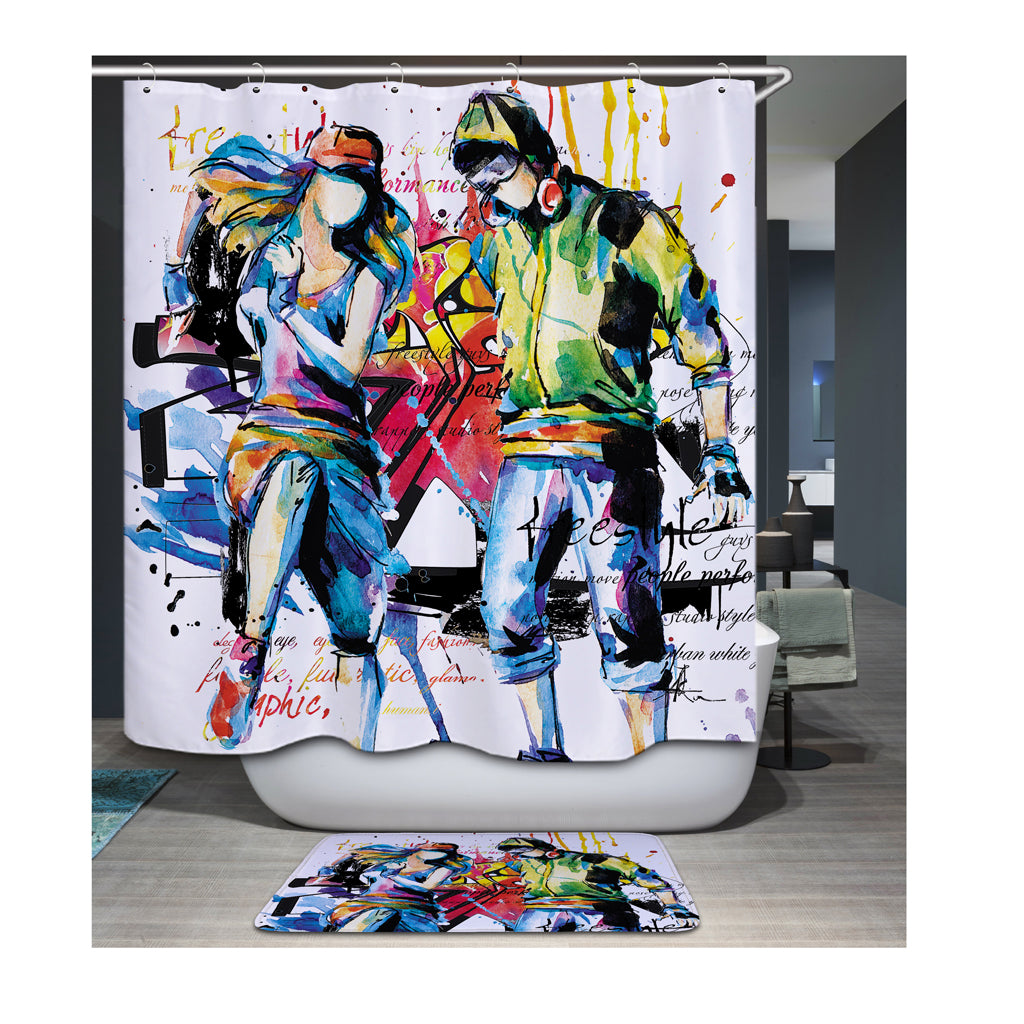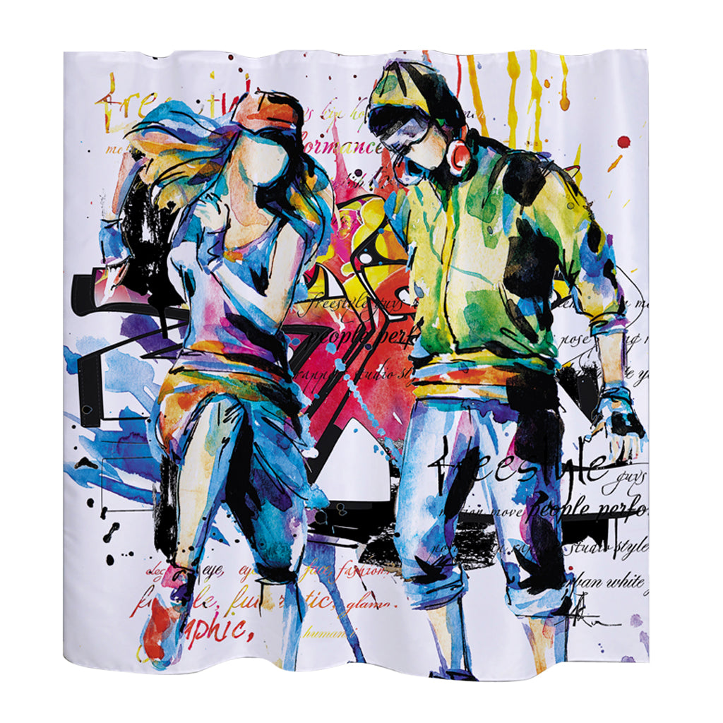 Home Hotel Bathroom Shower Room Decor Fashionable Musician Boy Girl Print Charms Shower Curtain With 12 Hooks