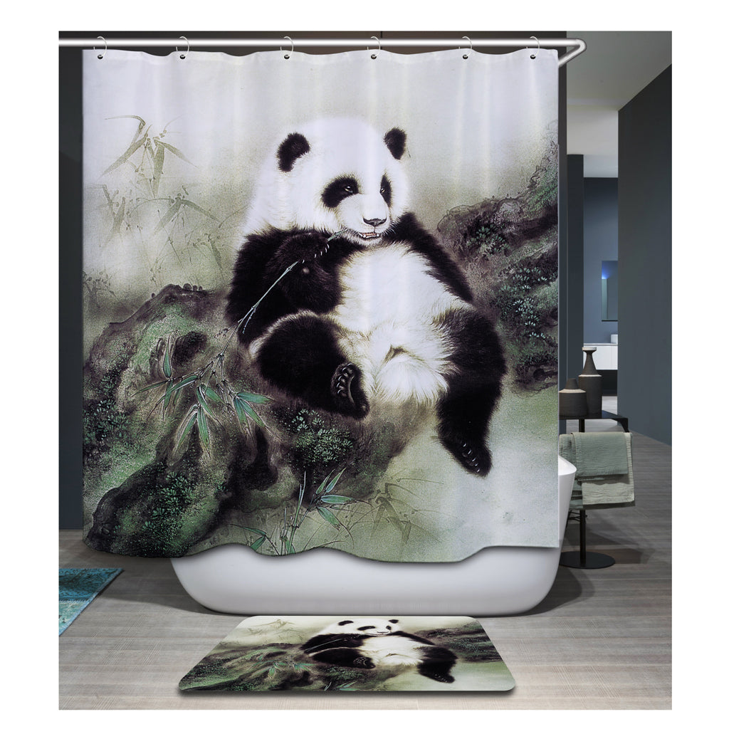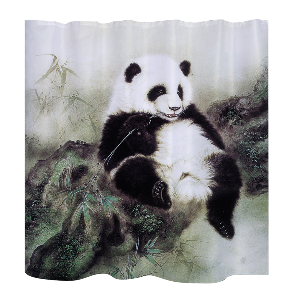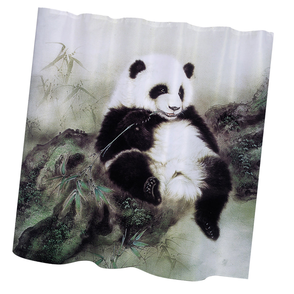 Home Hotel Bathroom Shower Room Decor Retro Fabric Shower Curtains With 12 Hooks Fashionable Panda Print Charms Home Decor Accessory