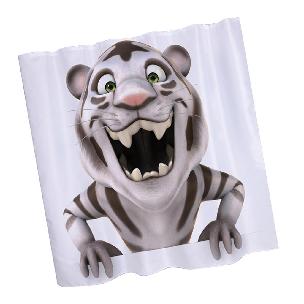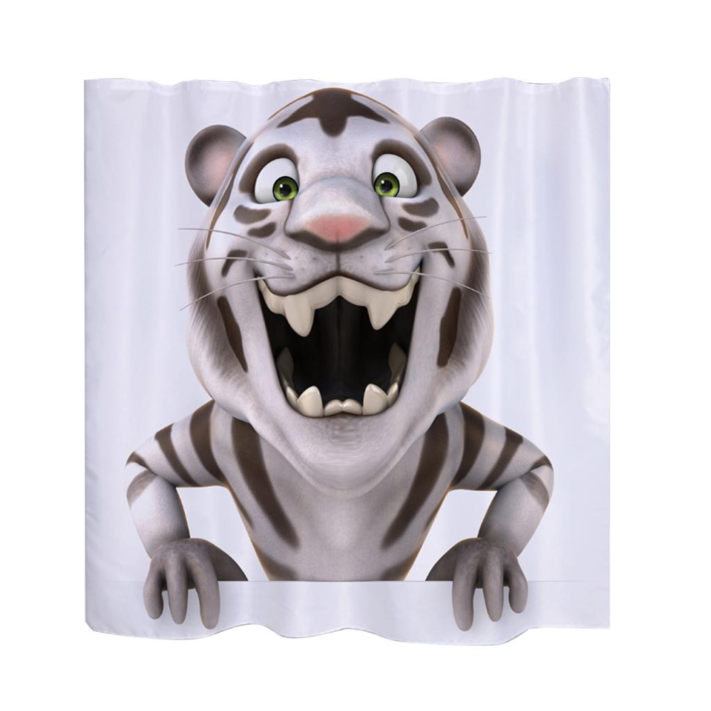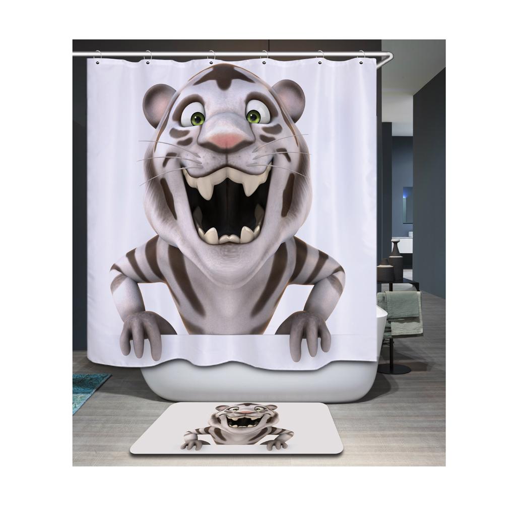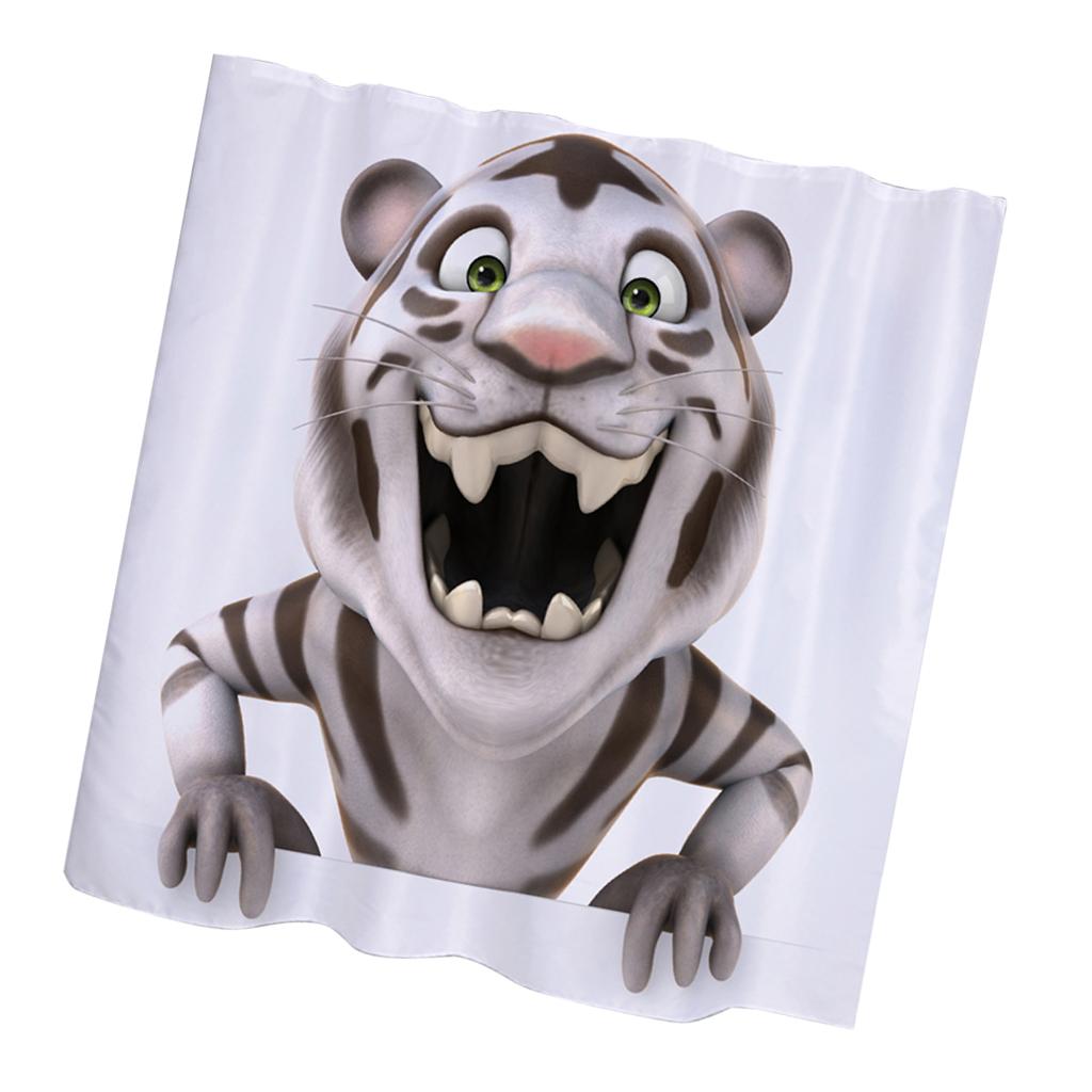 Home Hotel Bathroom Shower Room Decor Retro Fabric Shower Curtains With 12 Hooks Fashionable Tiger Print Charms Home Decor Accessory