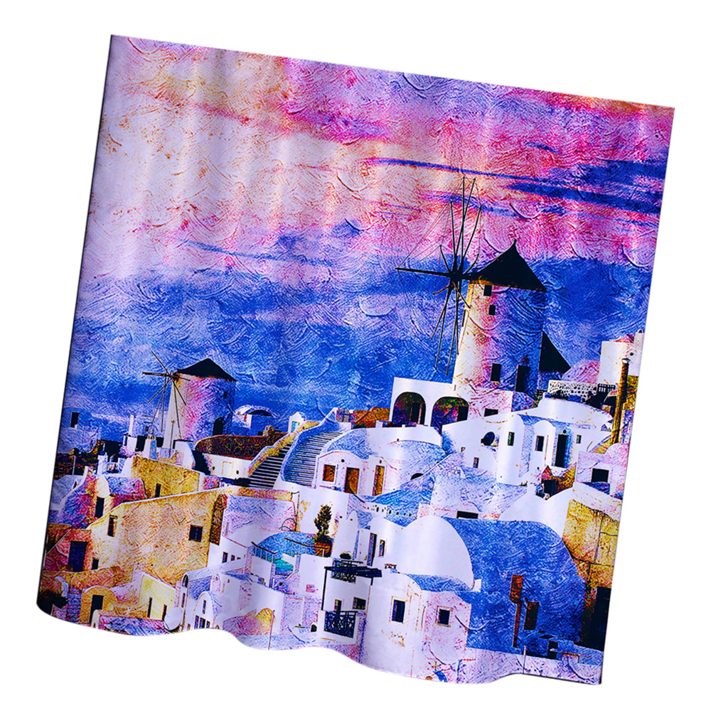 Home Hotel Bathroom Shower Room Door Window Decor Extra Long Fabric Bath Shower Curtain With 12 Hooks Greece Pattern Charms
