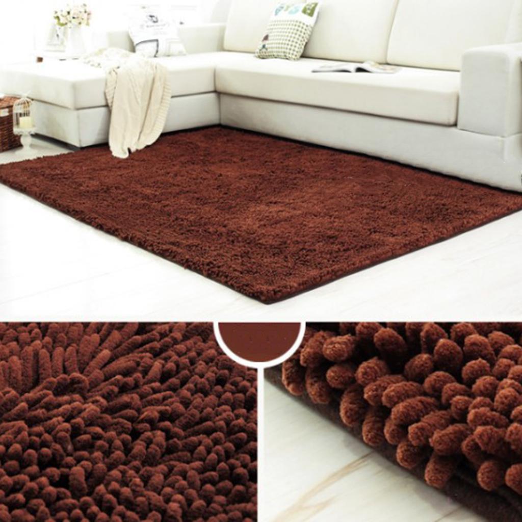 Microfibre Shaggy Chenille Shower Bath Mat Floor Area Rug 60x90cm-Coffee