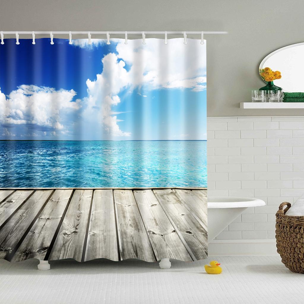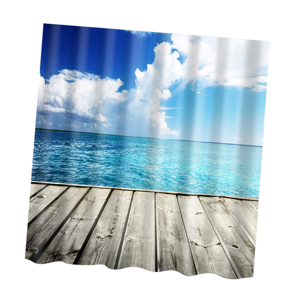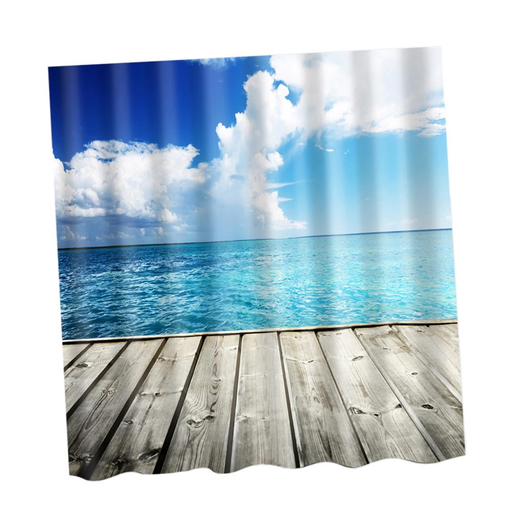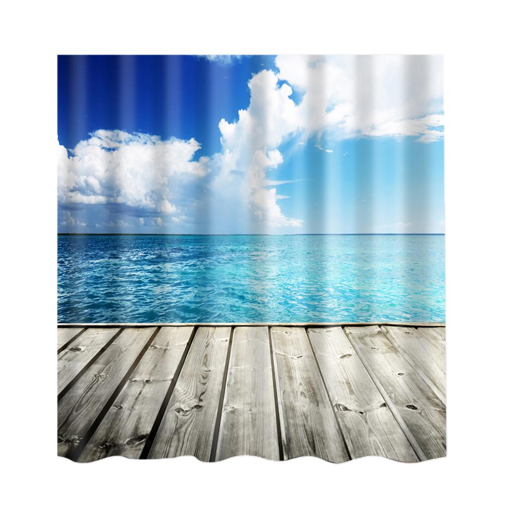 Natural Scenery Shower Curtain Waterproof Bath Decor Cloud and Sea