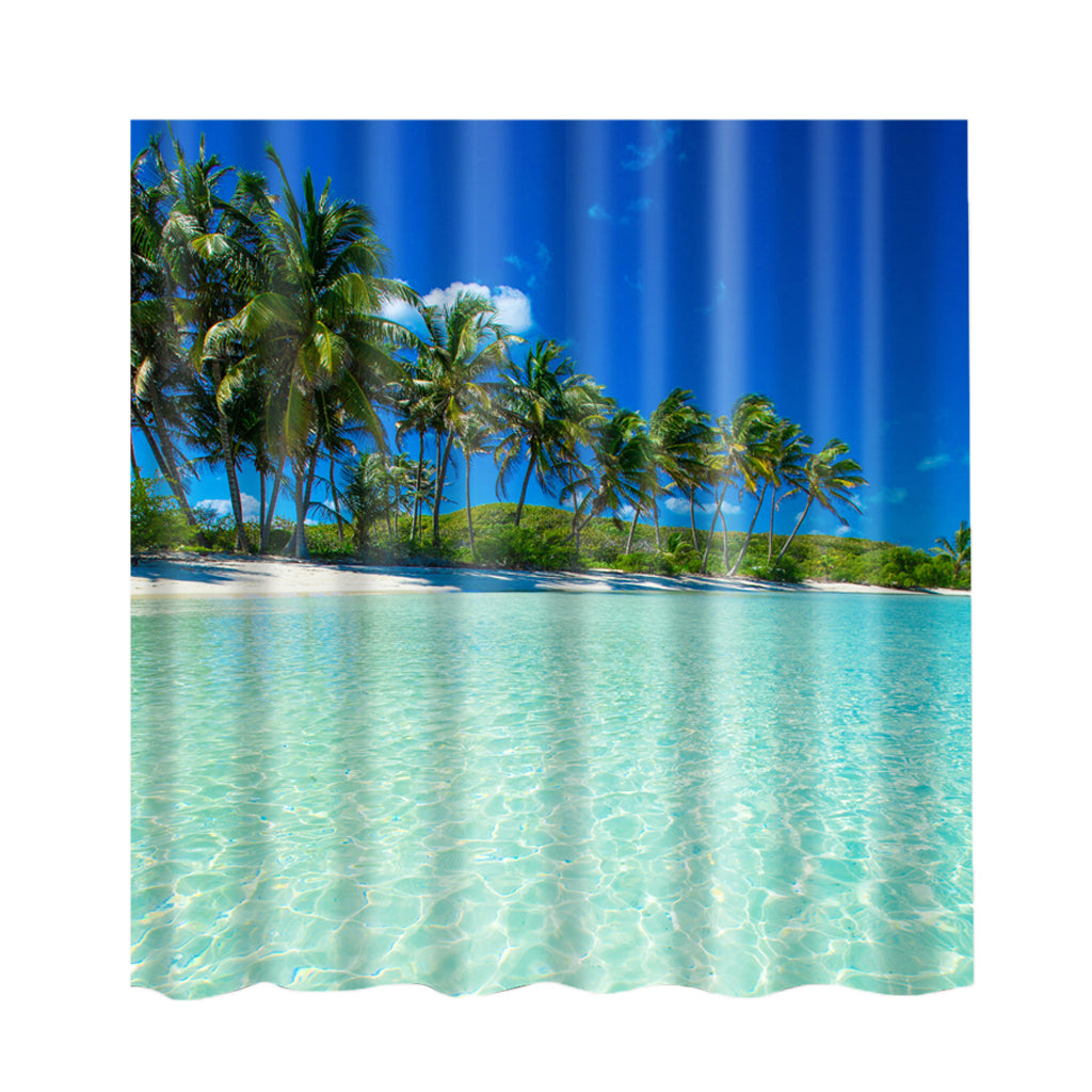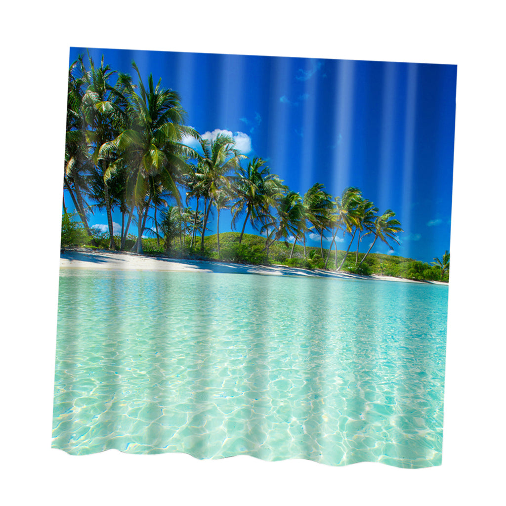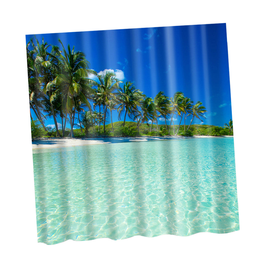 Natural Scenery Shower Curtain Waterproof Bath Decor Coconut Palm and Sea