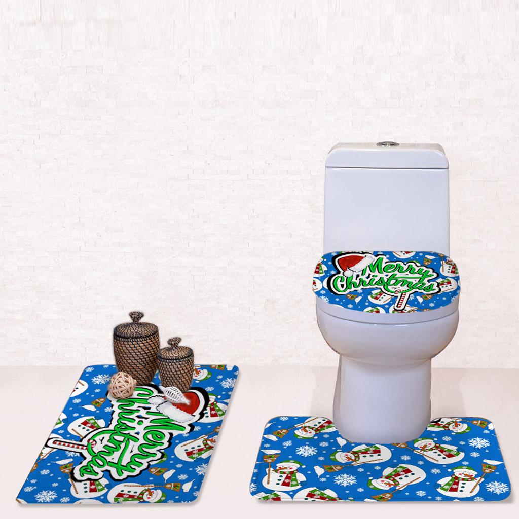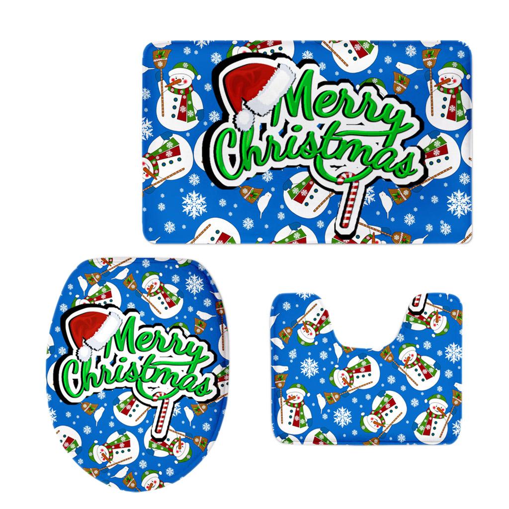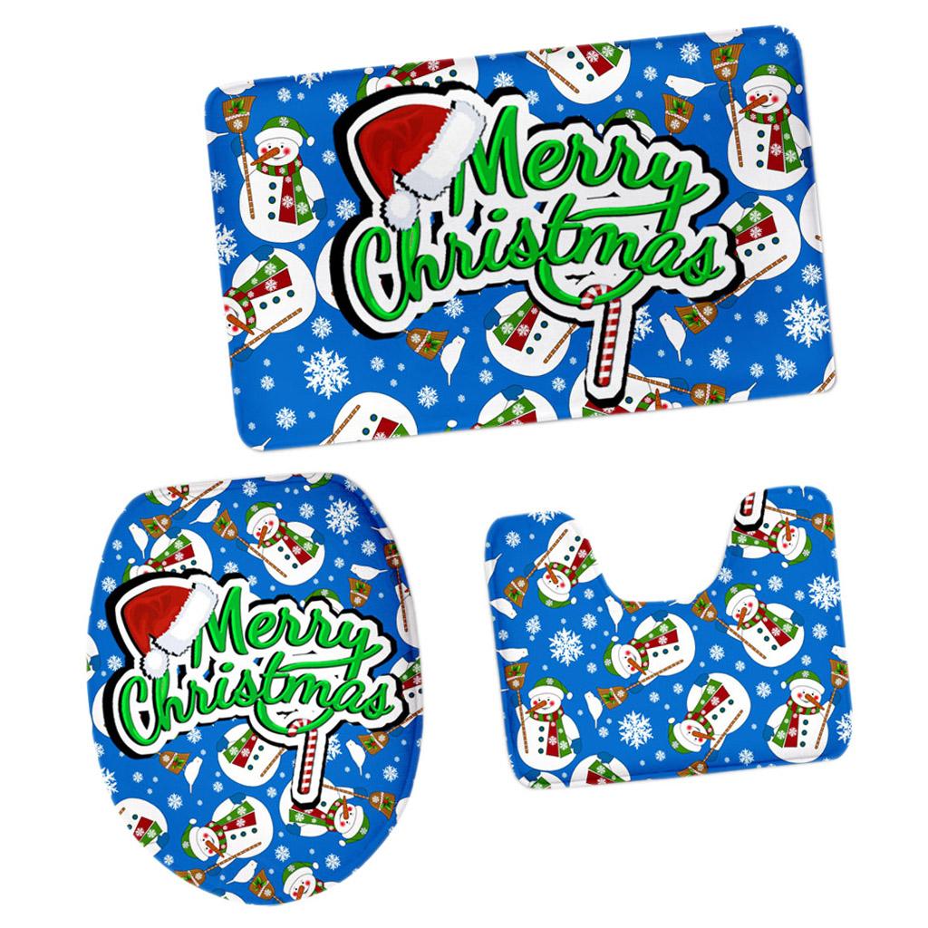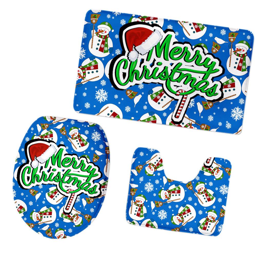 Non-Slip Bathroom Pedestal Lid Mat Pad Toilet Rug Set Merry Christmas 3