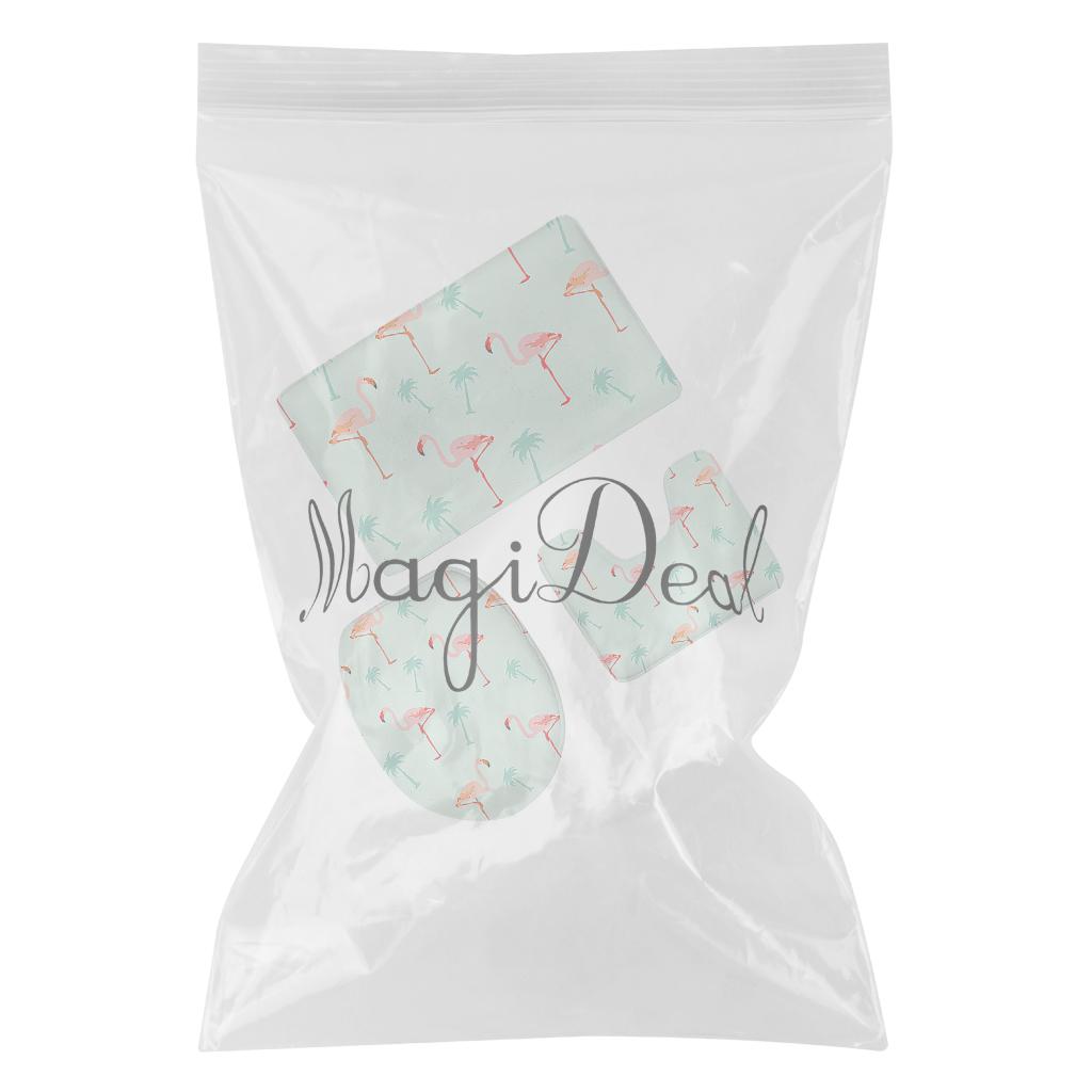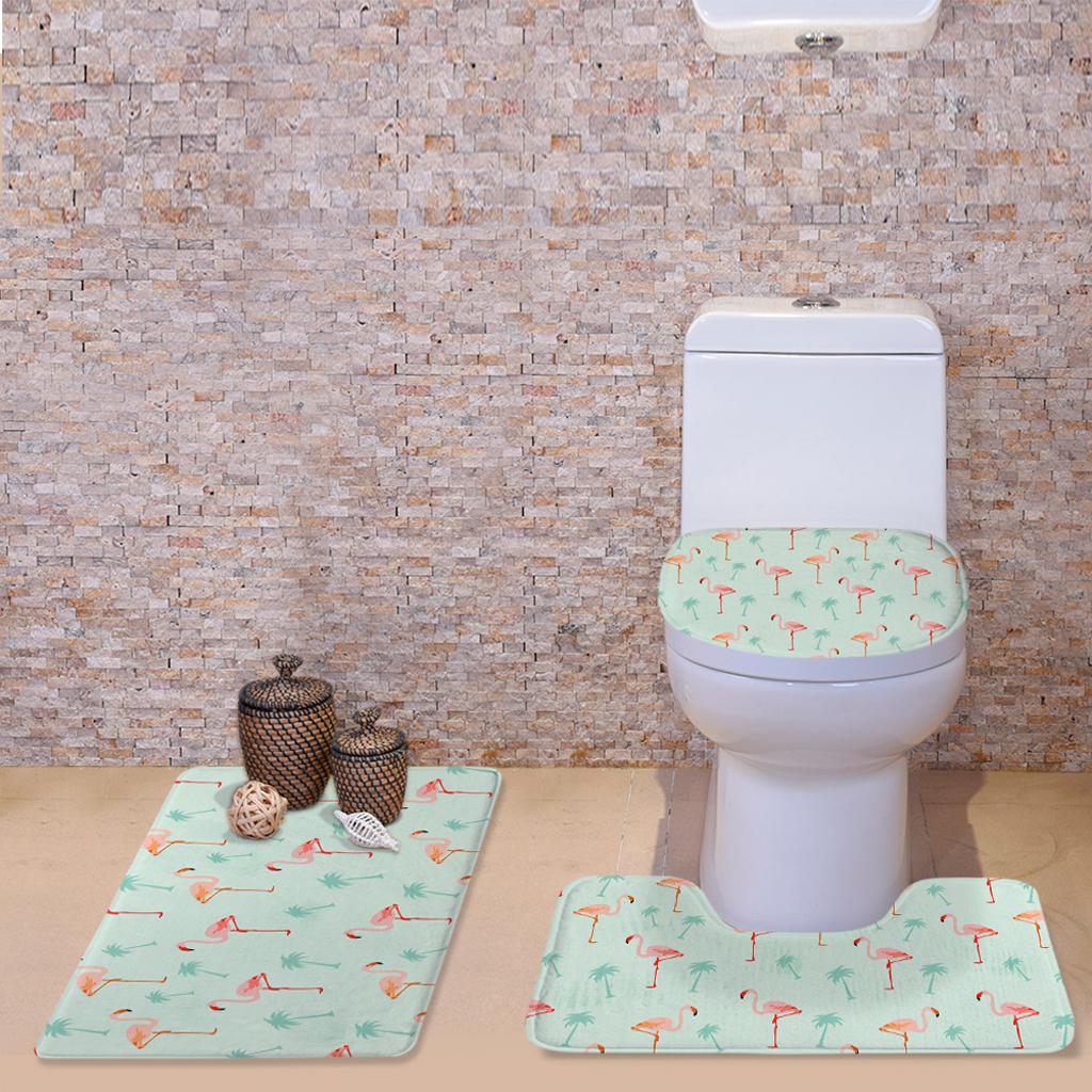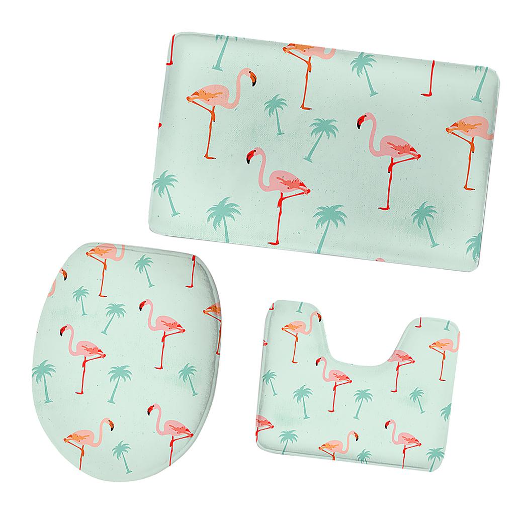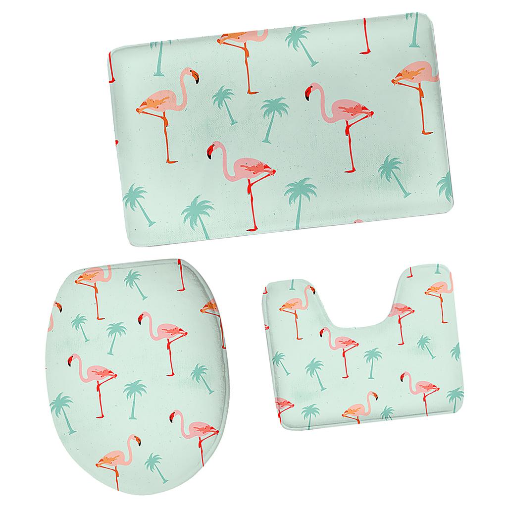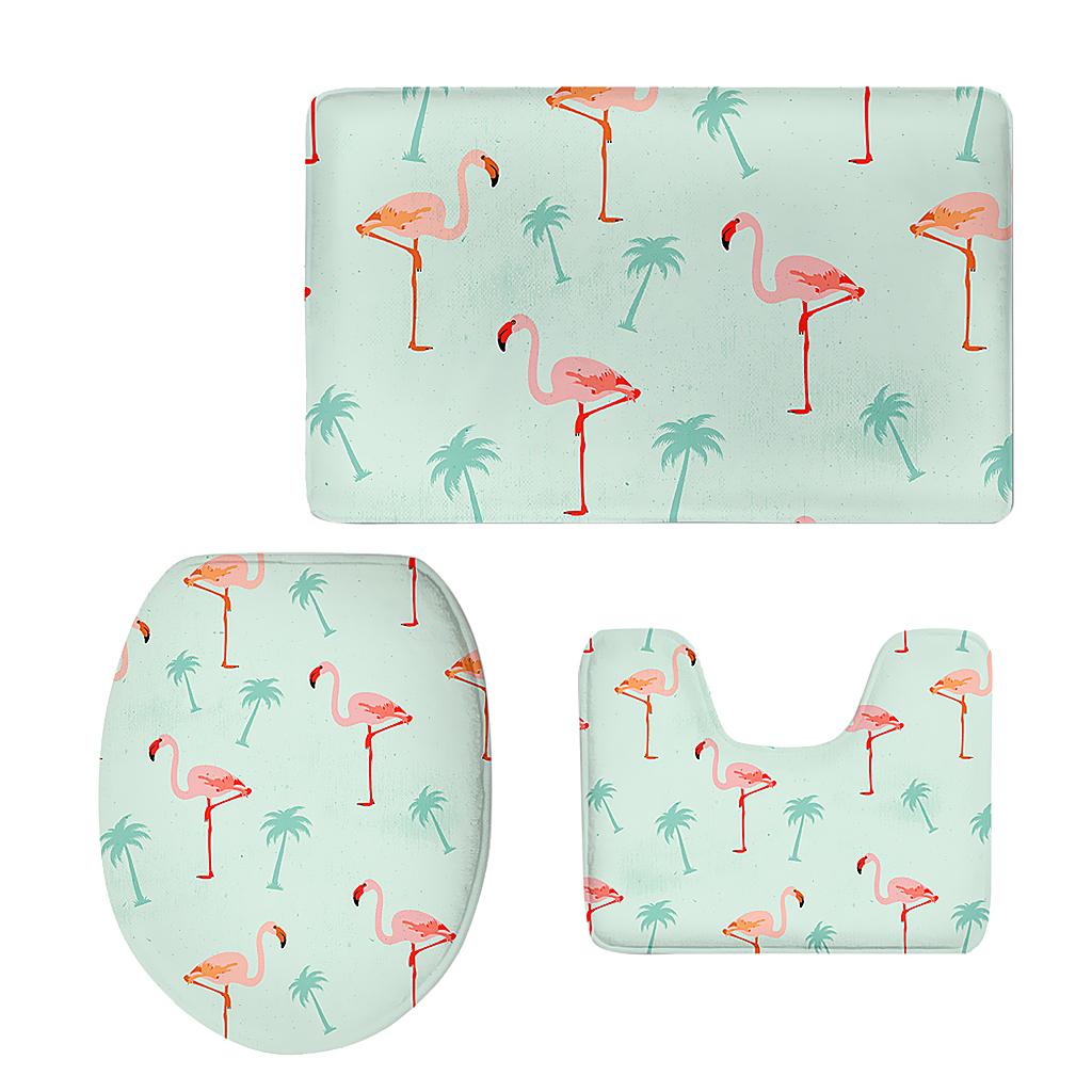 Non-Slip Flamingo Print Bathroom Pedestal Lid Mat Toilet Rug Set 5