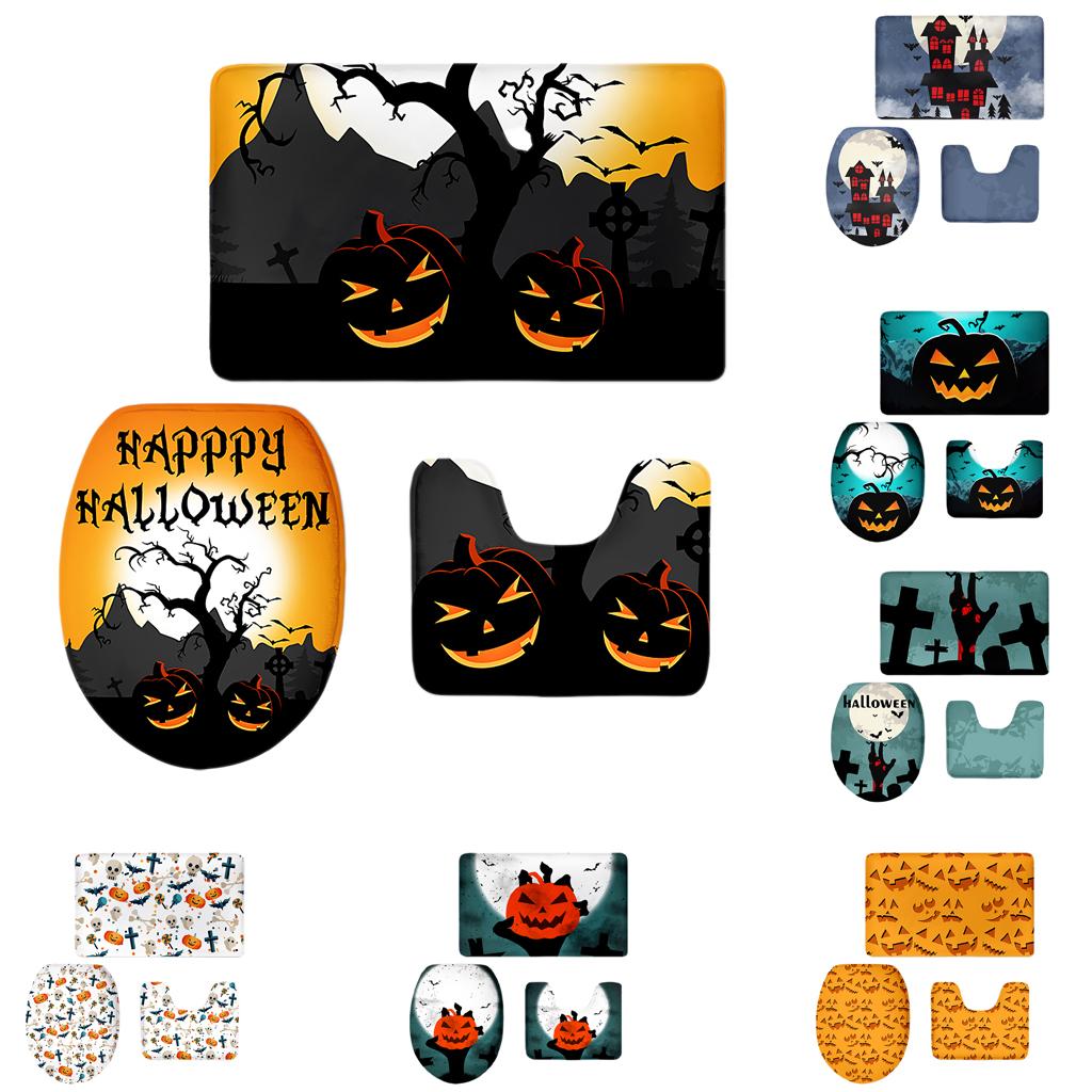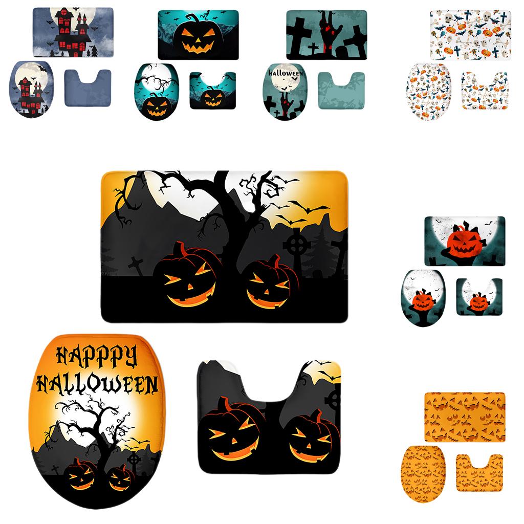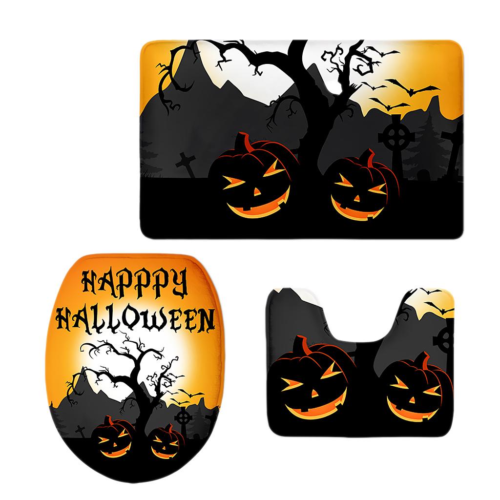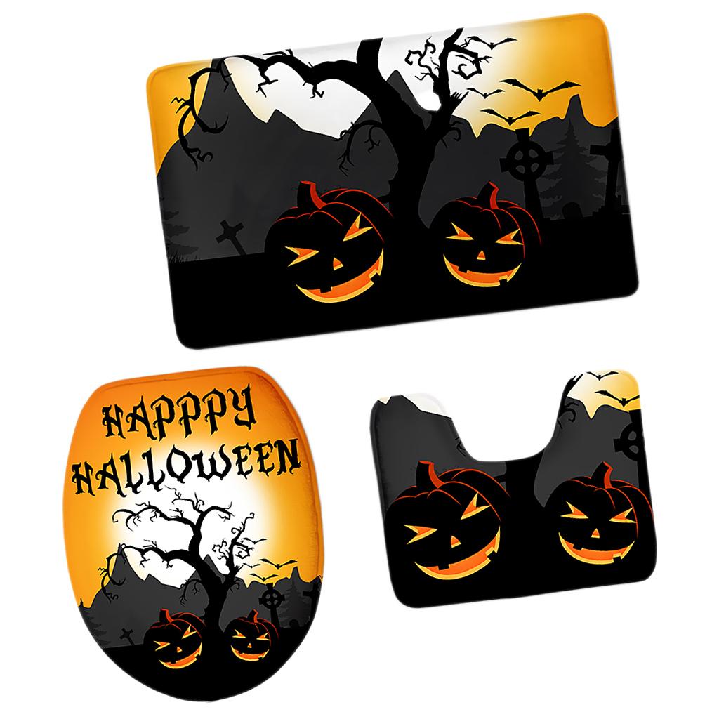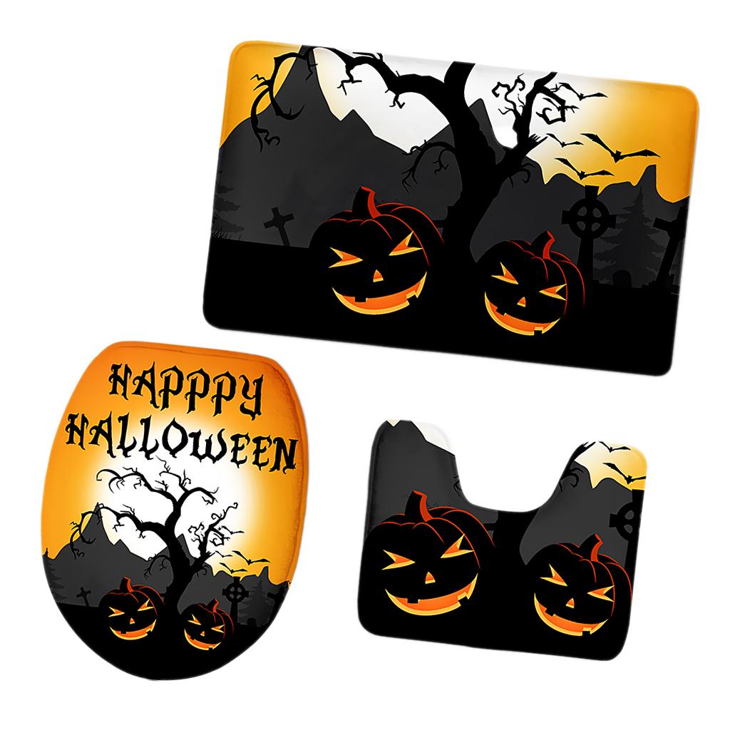 Set of 3pcs (U-shape Rug + Lid Toilet Cover + Bath Mat)