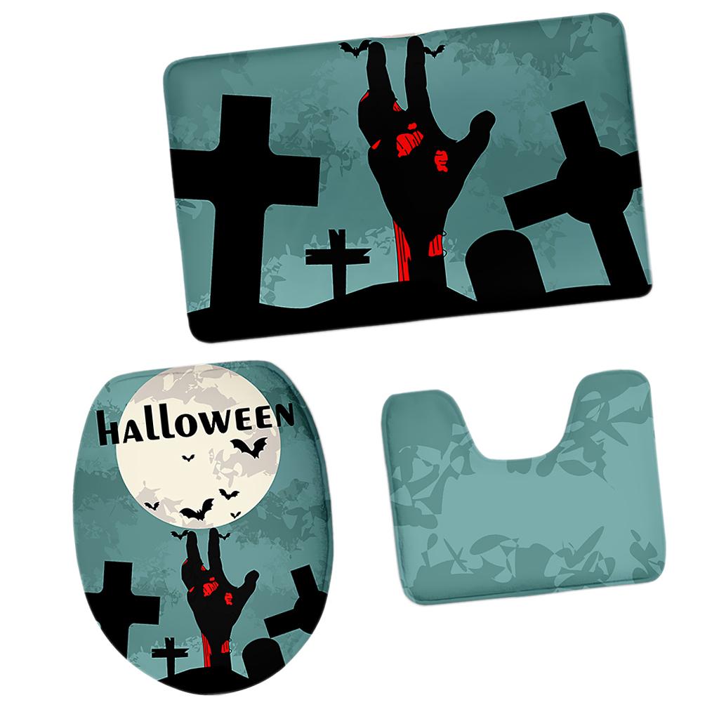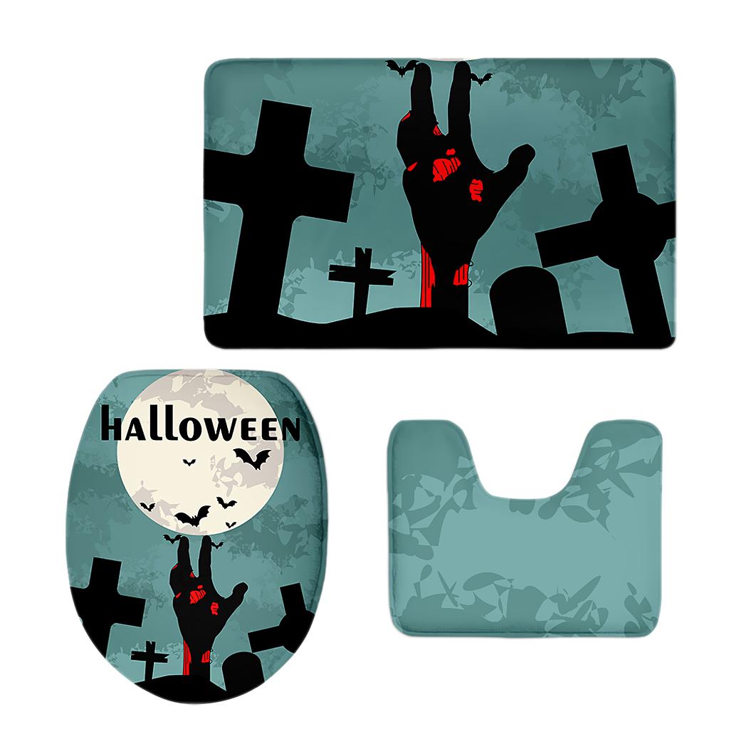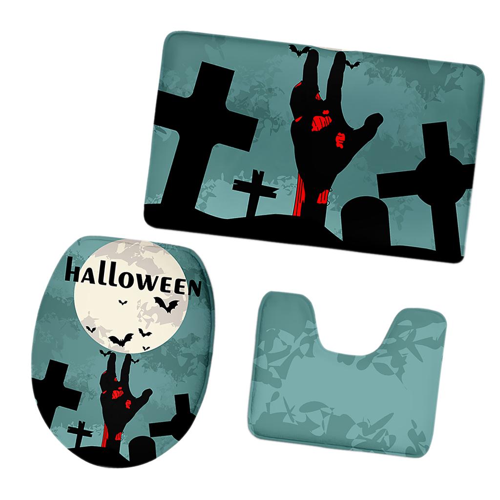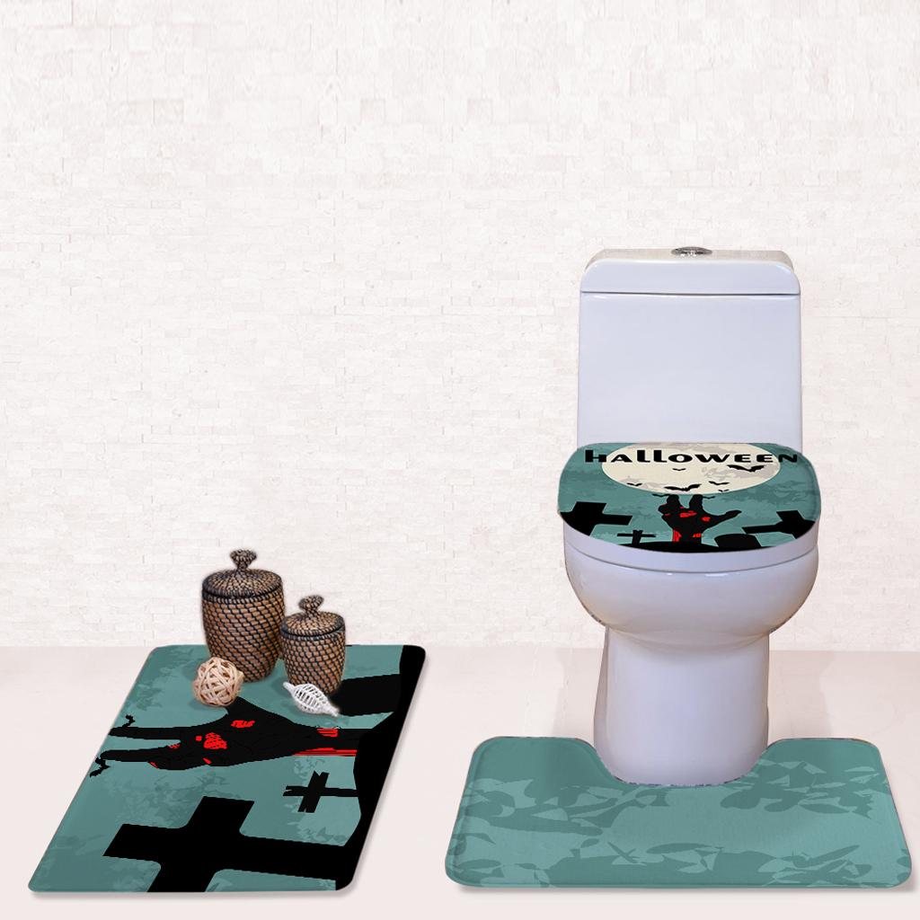 Non-Slip Halloween Print Bathroom Pedestal Lid Mat Toilet Floor Rug Set 4