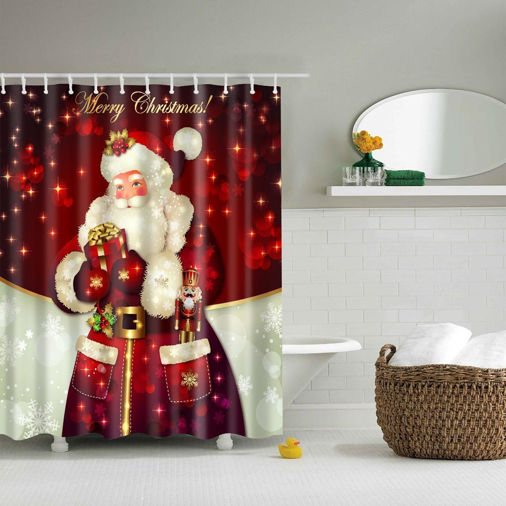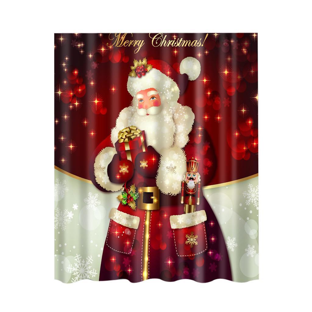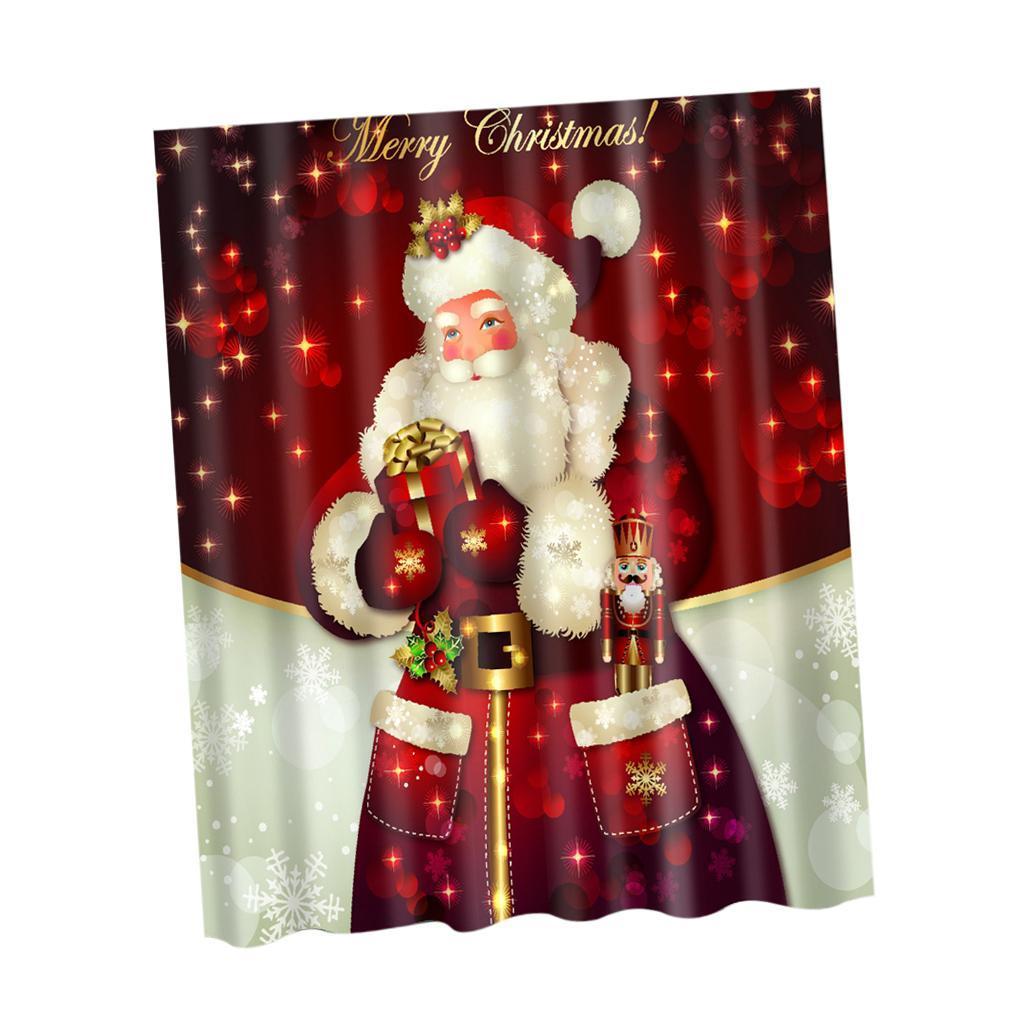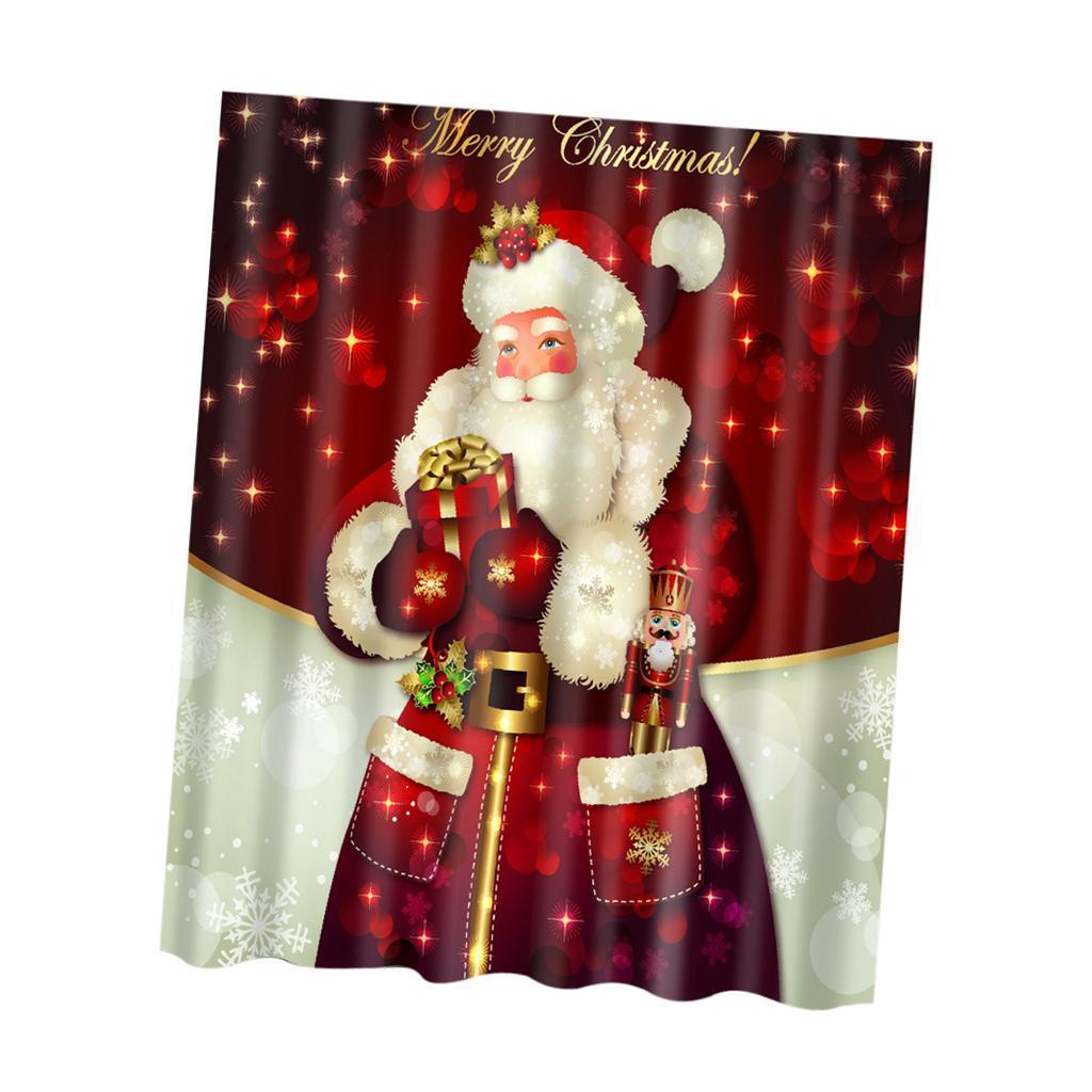 Polyester Bathroom Shower Curtain Sheer Panel Decor 12 Hooks Santa Claus 2