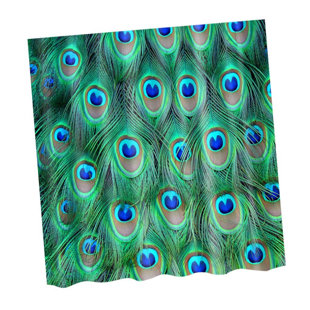 Polyester Shower Curtain with 12 Hooks Home Bathroom Decoration Peacock