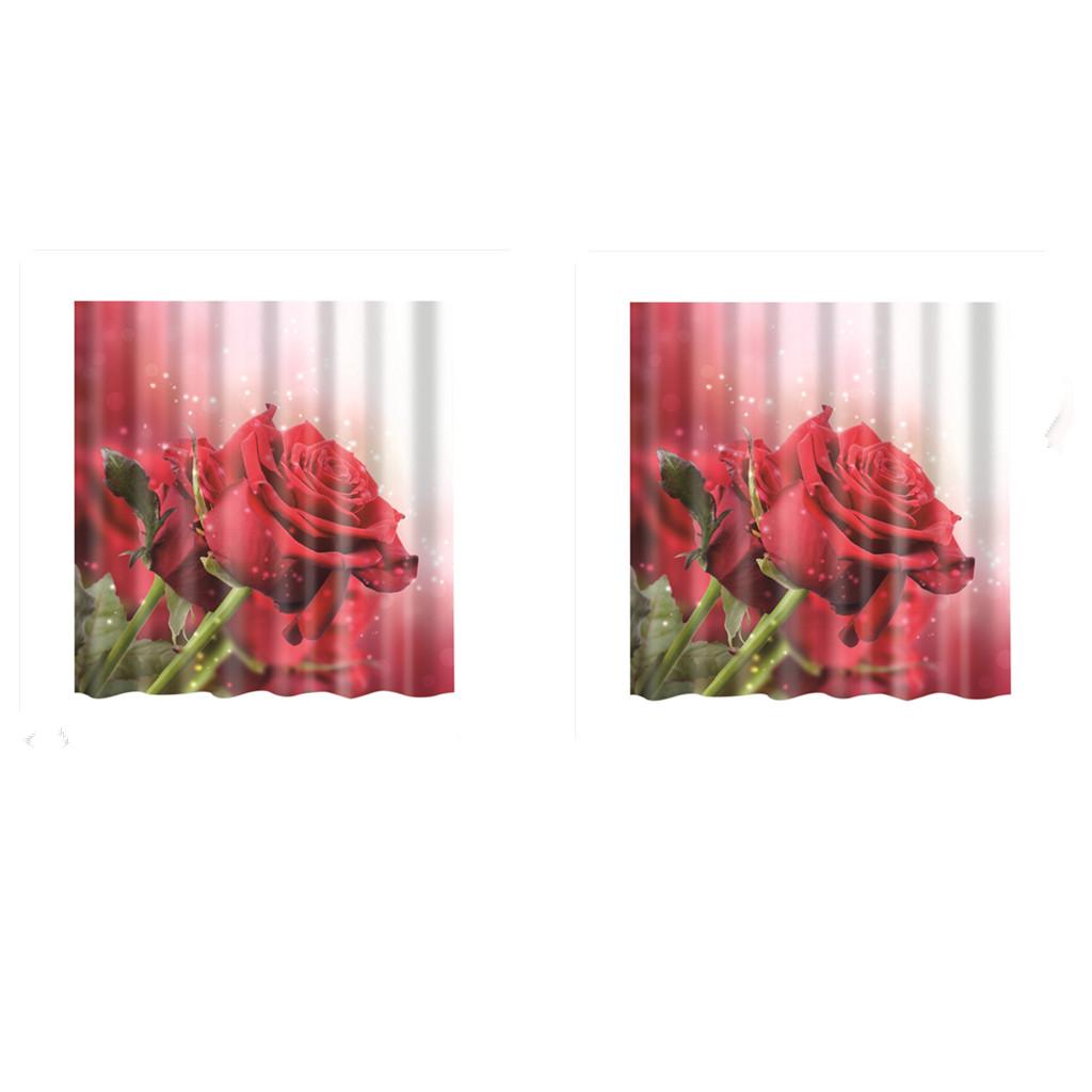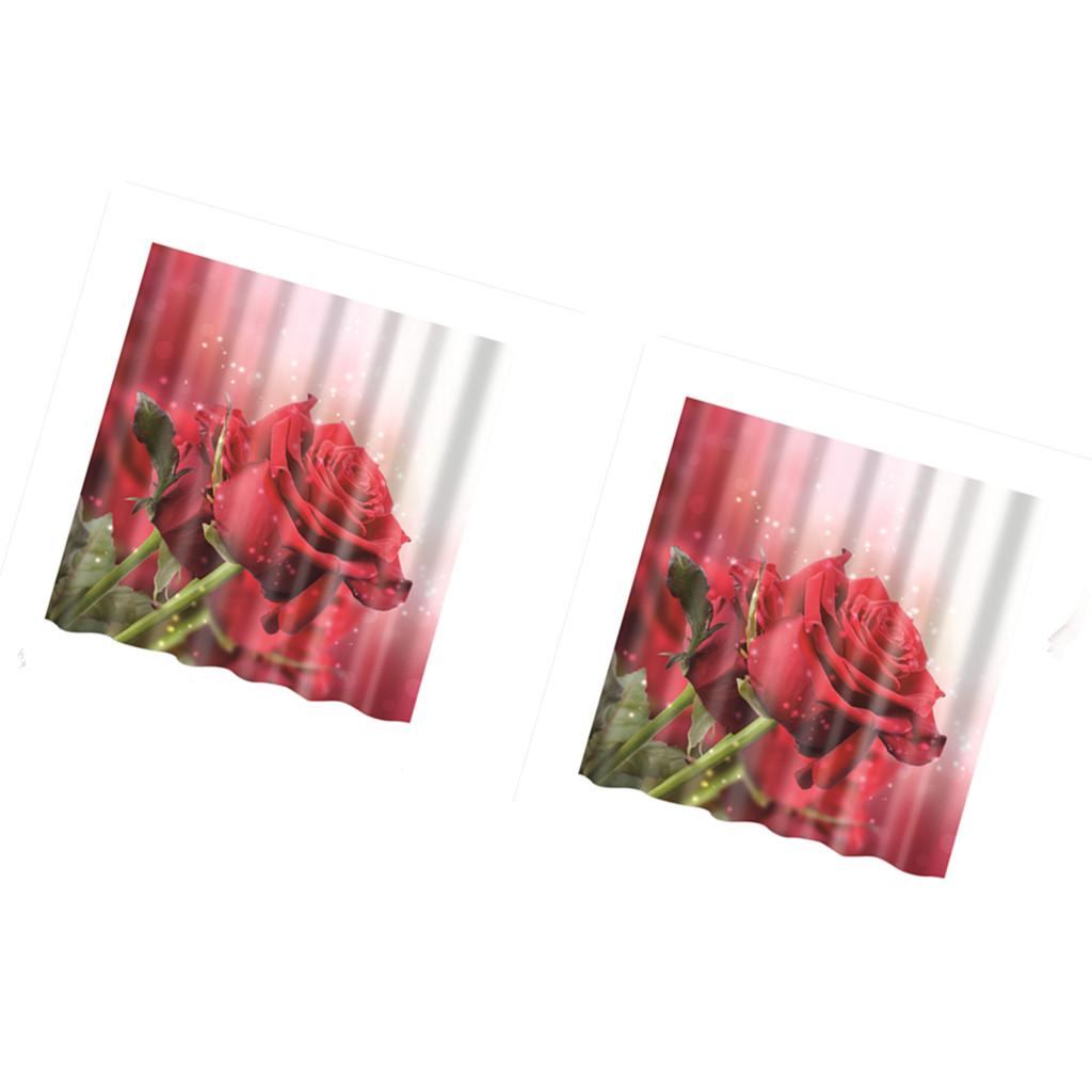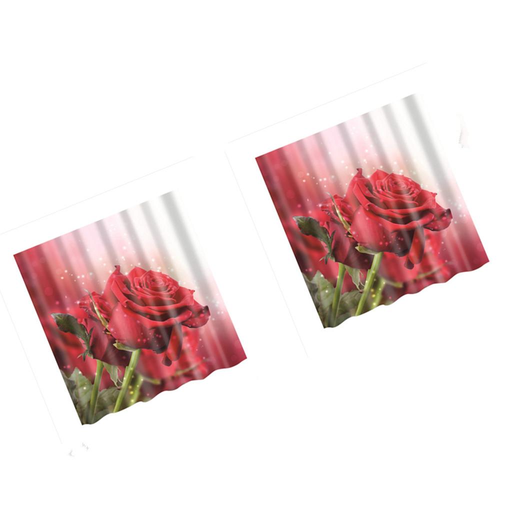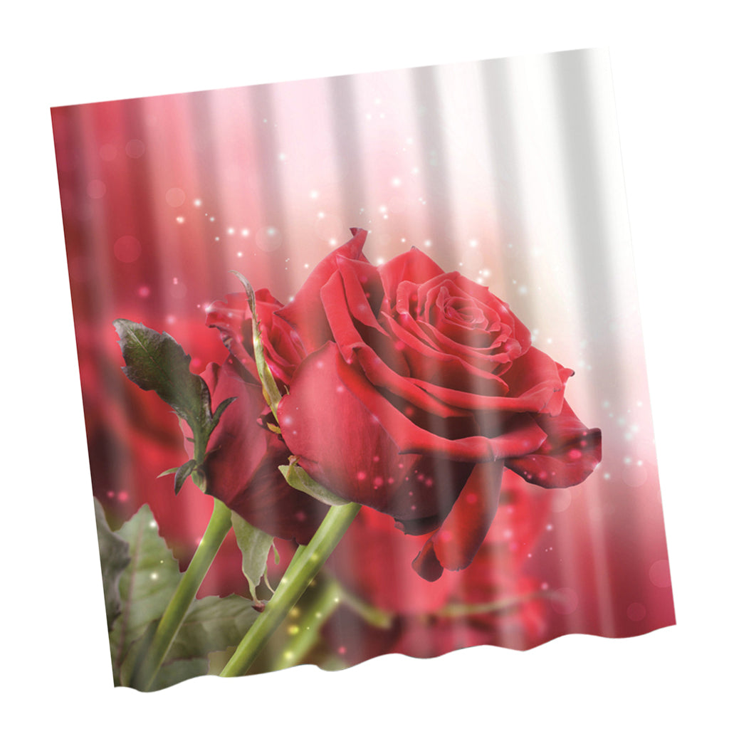 Red Rose Pattern Water-resistant bath Shower Curtain Set with 12 Hooks