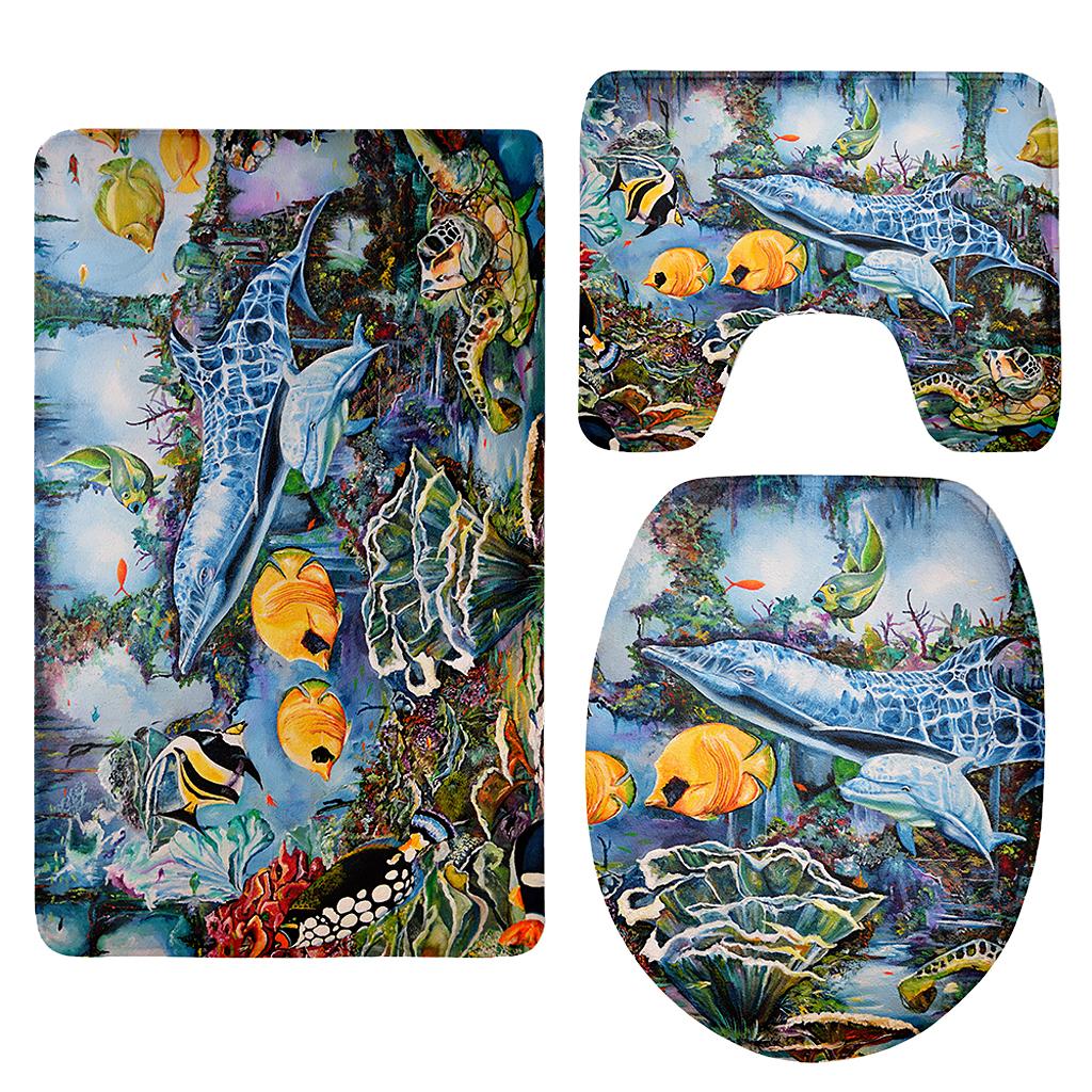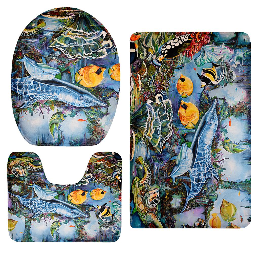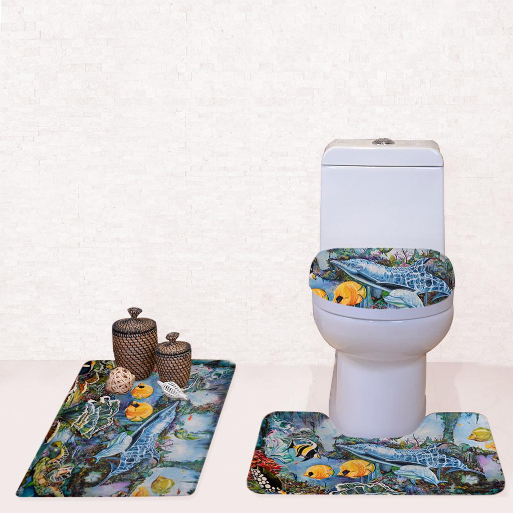 Set Of 3PCS Safe Slip Resistant Flannel Bath Mat With Toilet Rug & Seat Cover Entrance Door Bathroom Coffee Study Kitchen Bed Decor Rug Underwater