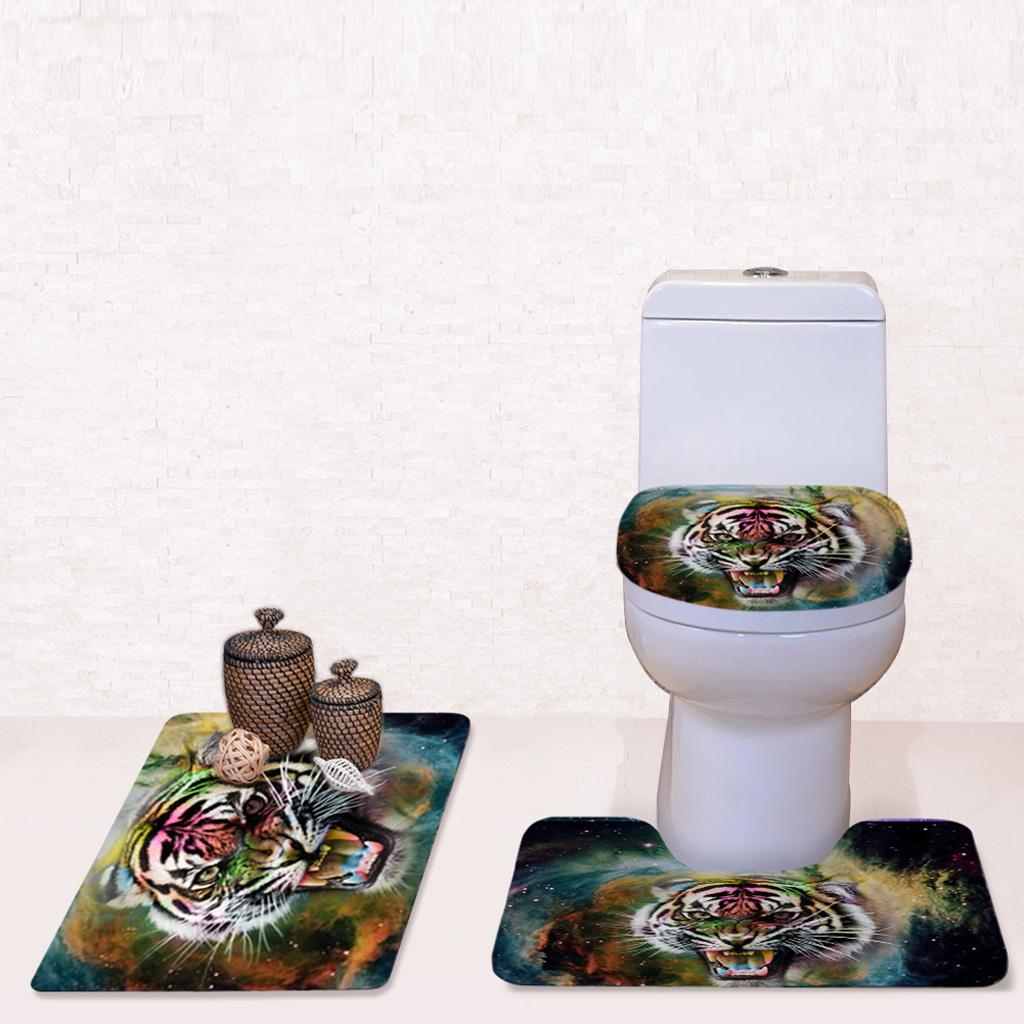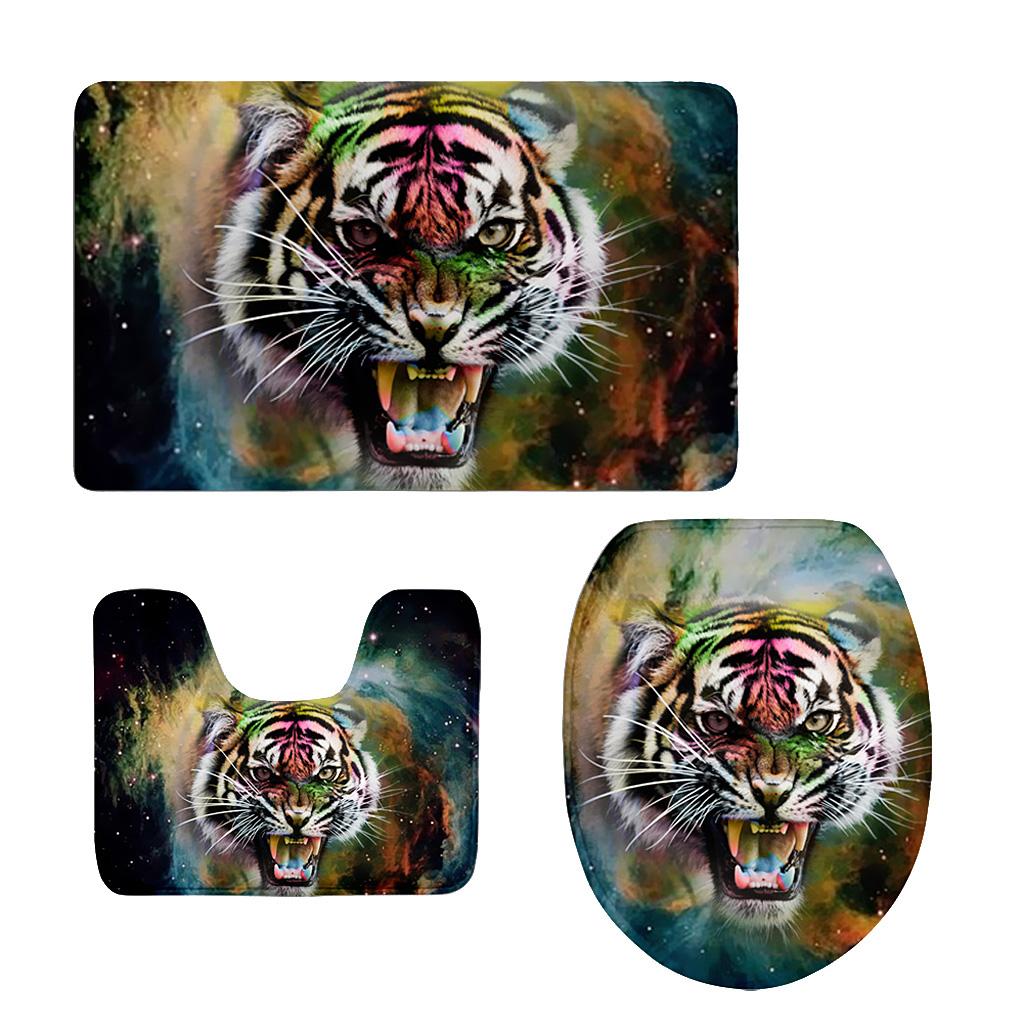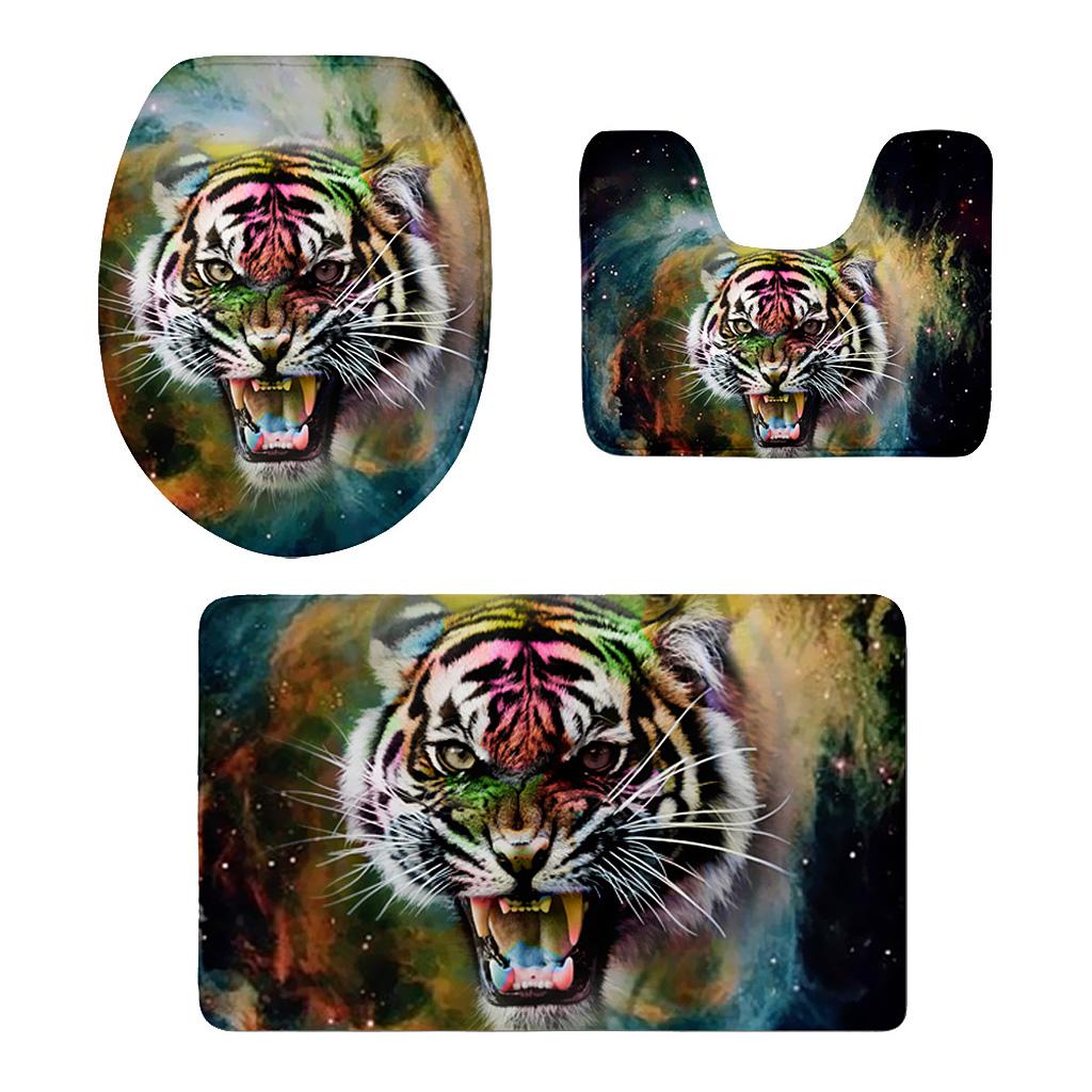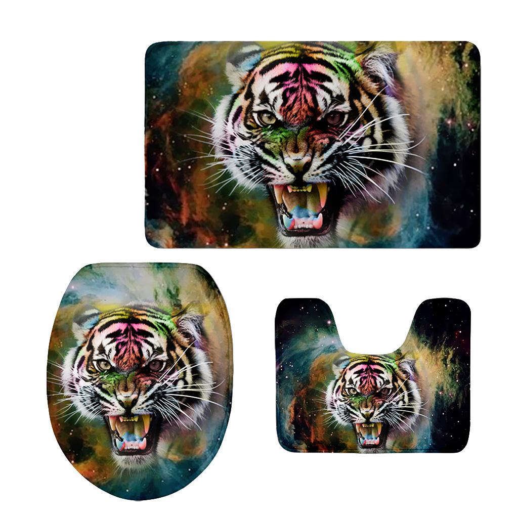 Set Of 3PCS Safe Slip Resistant Flannel Bath Mat With Toilet Rug & Seat Cover Entrance Door Bathroom Coffee Study Kitchen Bed Decor Tiger
