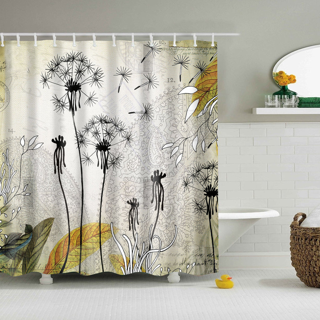 Shower Curtain Bathroom Polyester Fabric Panel Decor with 12 Hooks Set #11