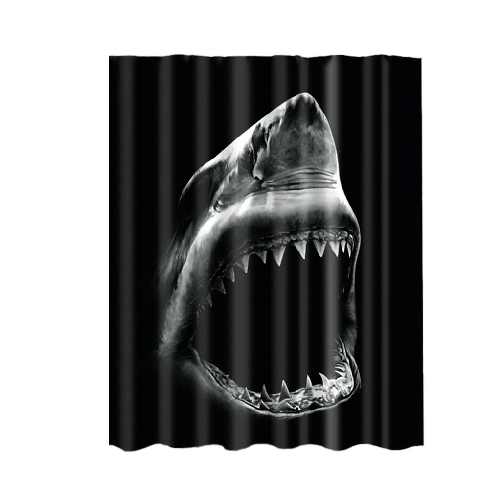 Shower Curtain Sheer Waterproof Panel Bathroom Decor w/ Hooks Shark Head