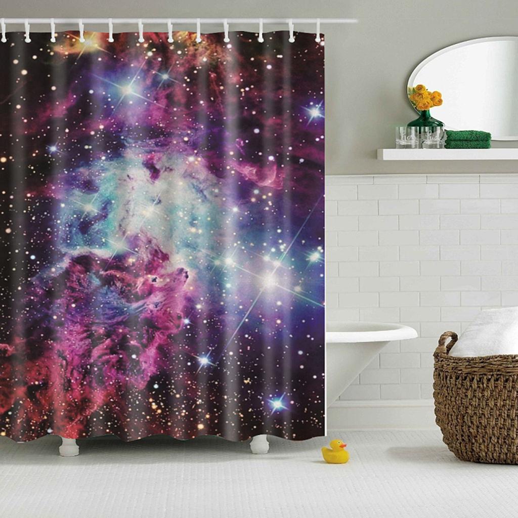 Shower Curtain Sheer Waterproof Panel Bathroom Decor w/ Hooks Starry Sky