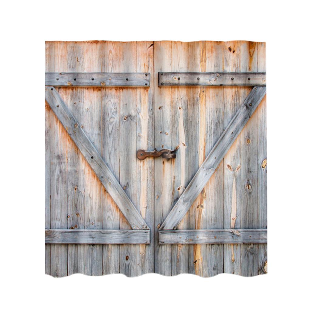 Shower Curtain Sheer Waterproof Panel Bathroom Decor w/ Hooks Wood Door
