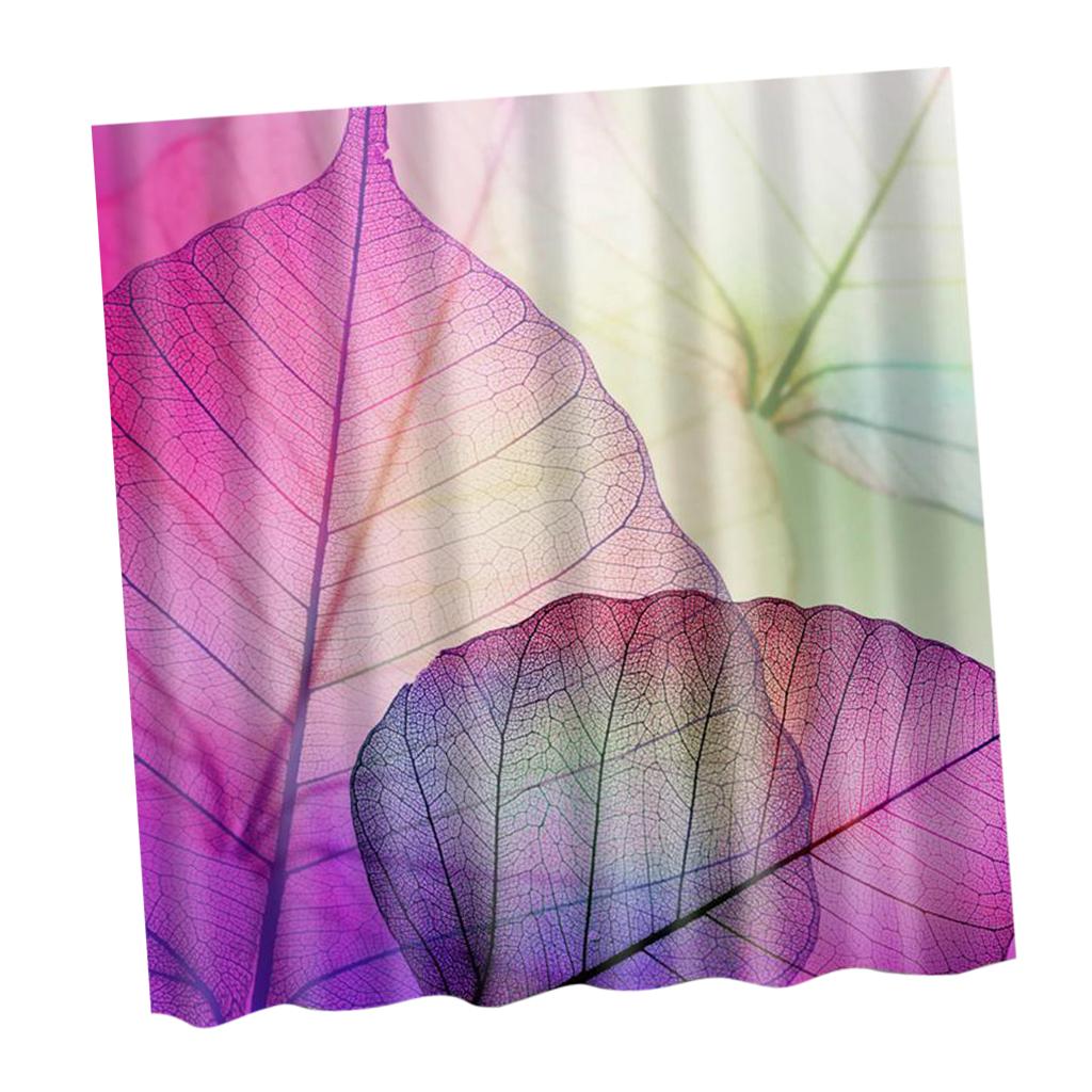 Shower Curtain Waterproof Mildew Resistant with 12 Hooks Set Leaves