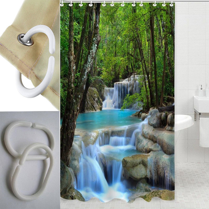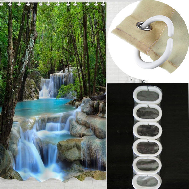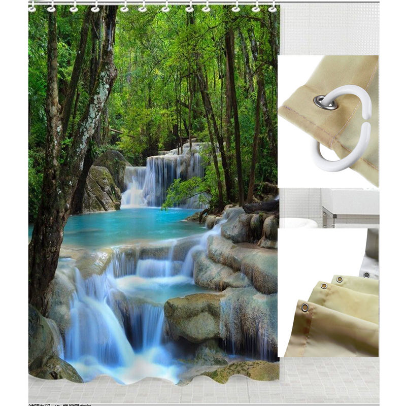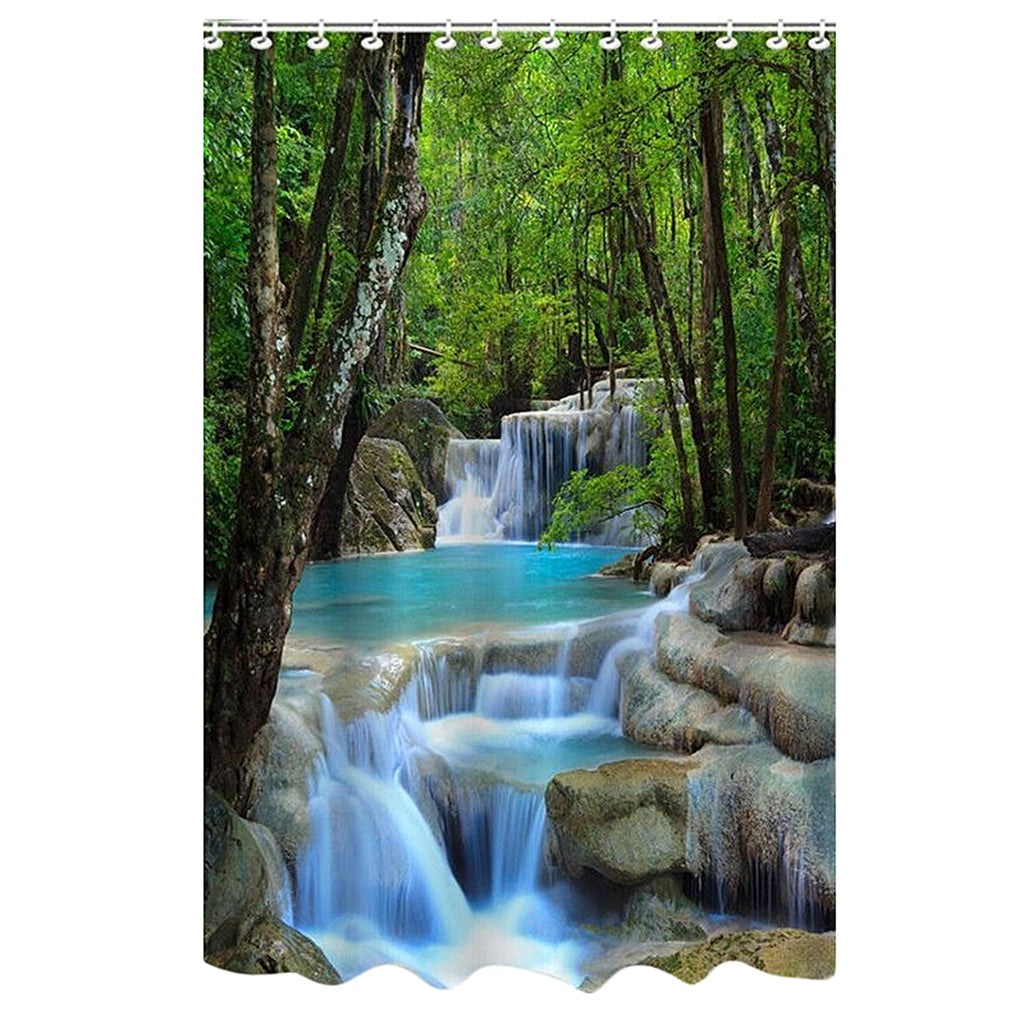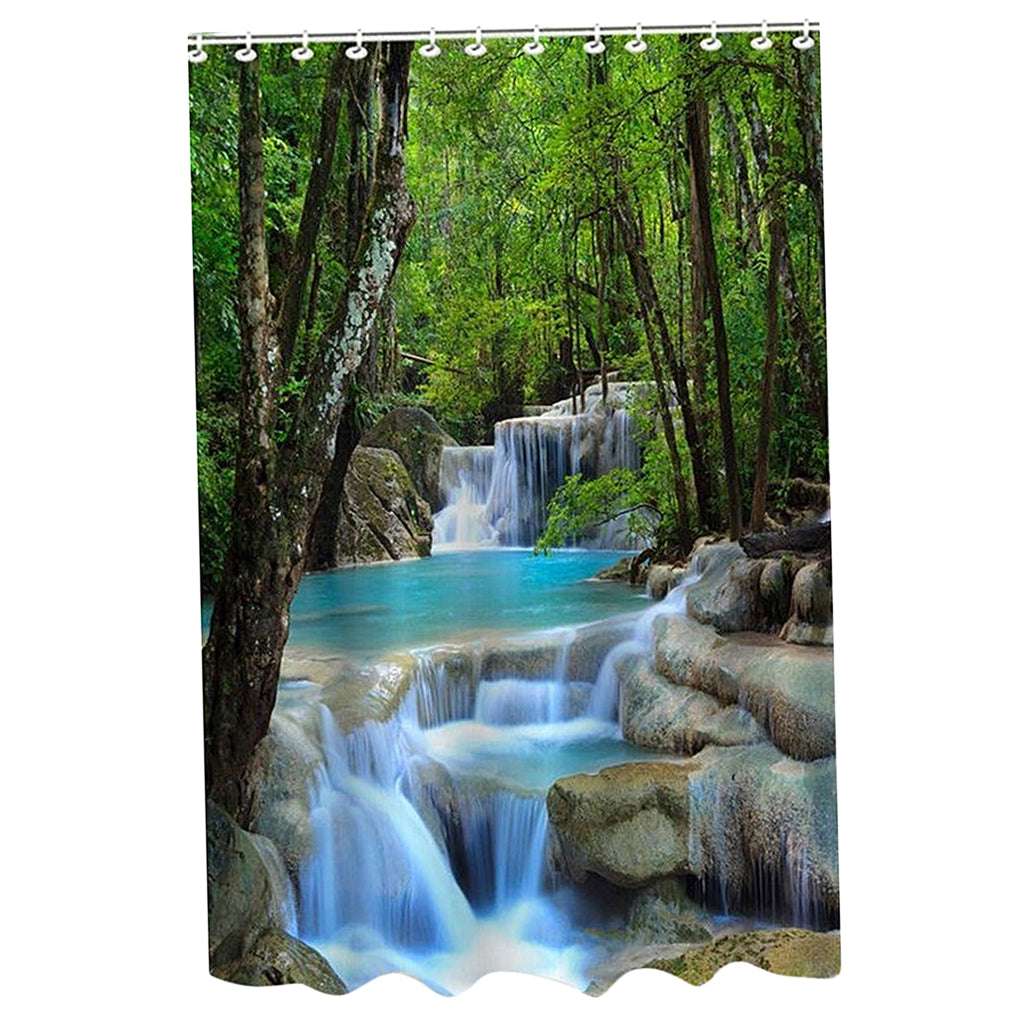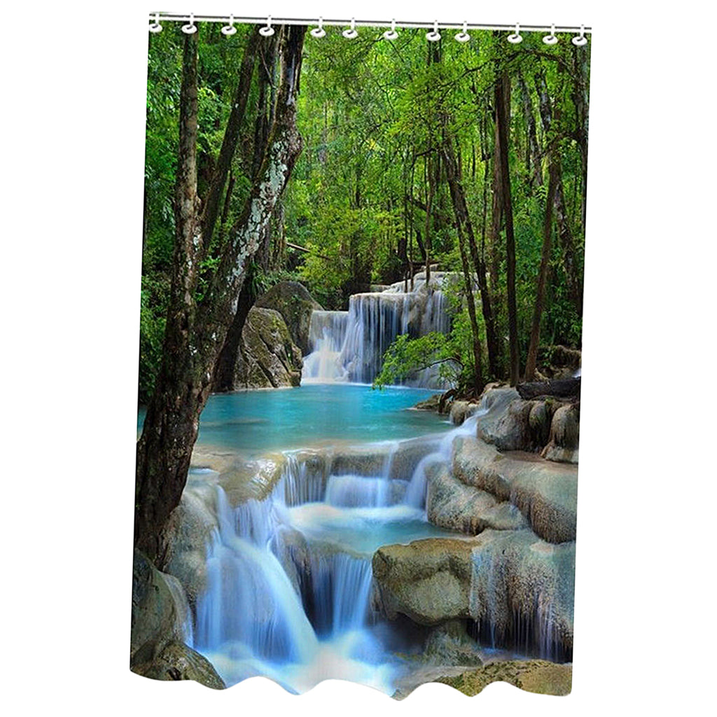 Waterfall Nature Scenery Waterproof Fabric Bath Shower Curtain Screens 72"