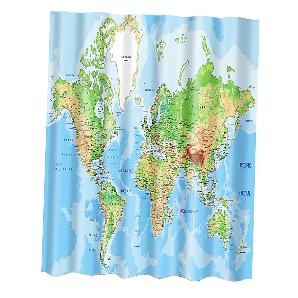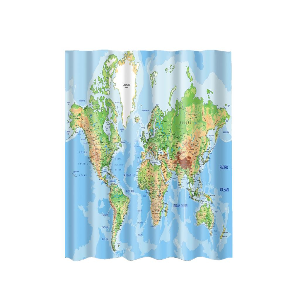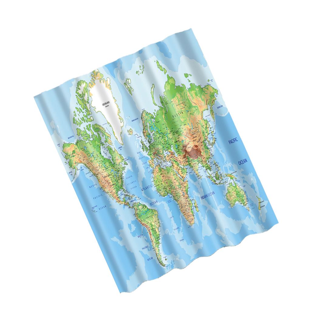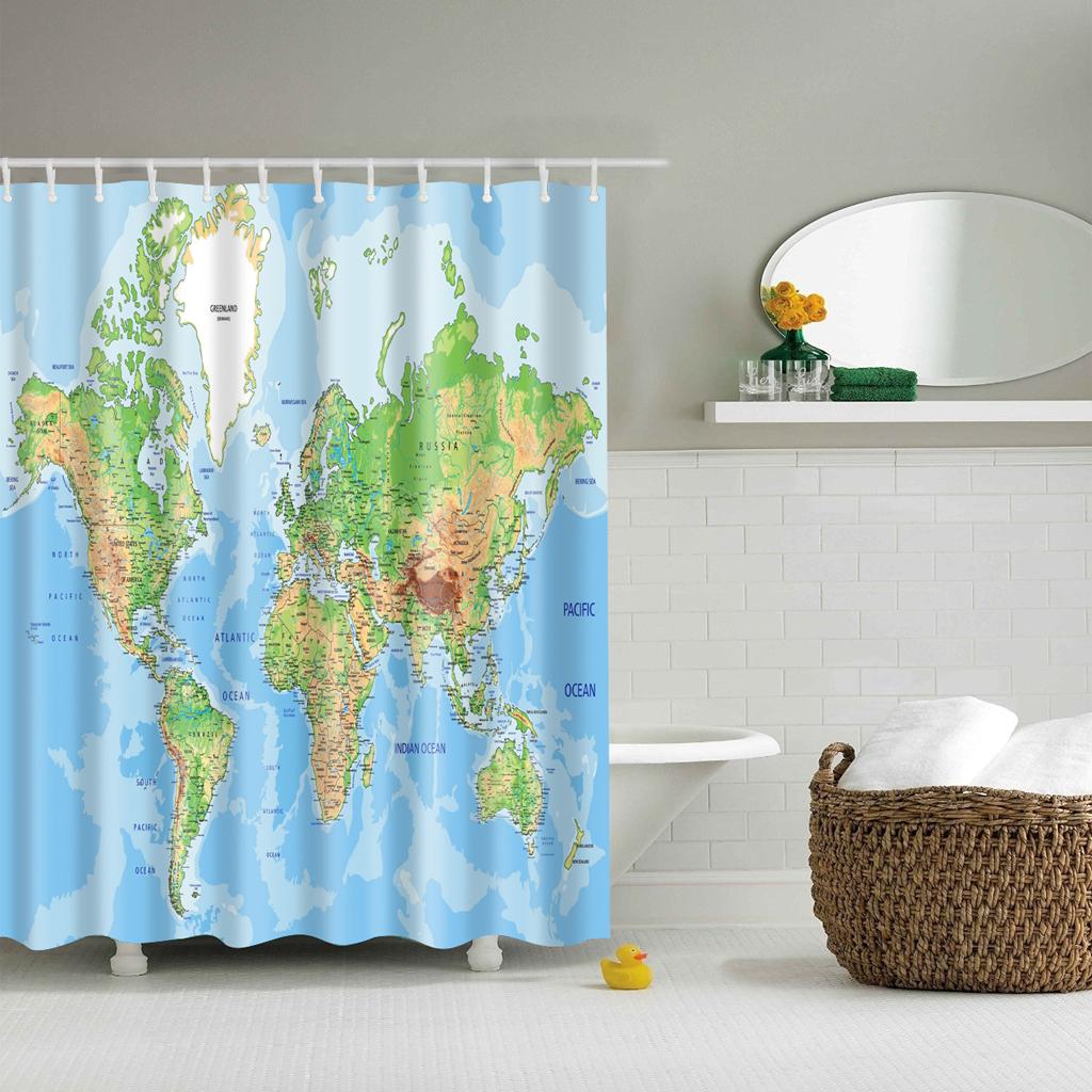 Waterproof Polyester Bathroom Shower Curtain Panel Decor W/Hook World Map