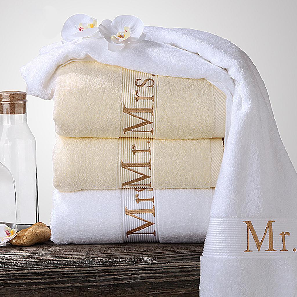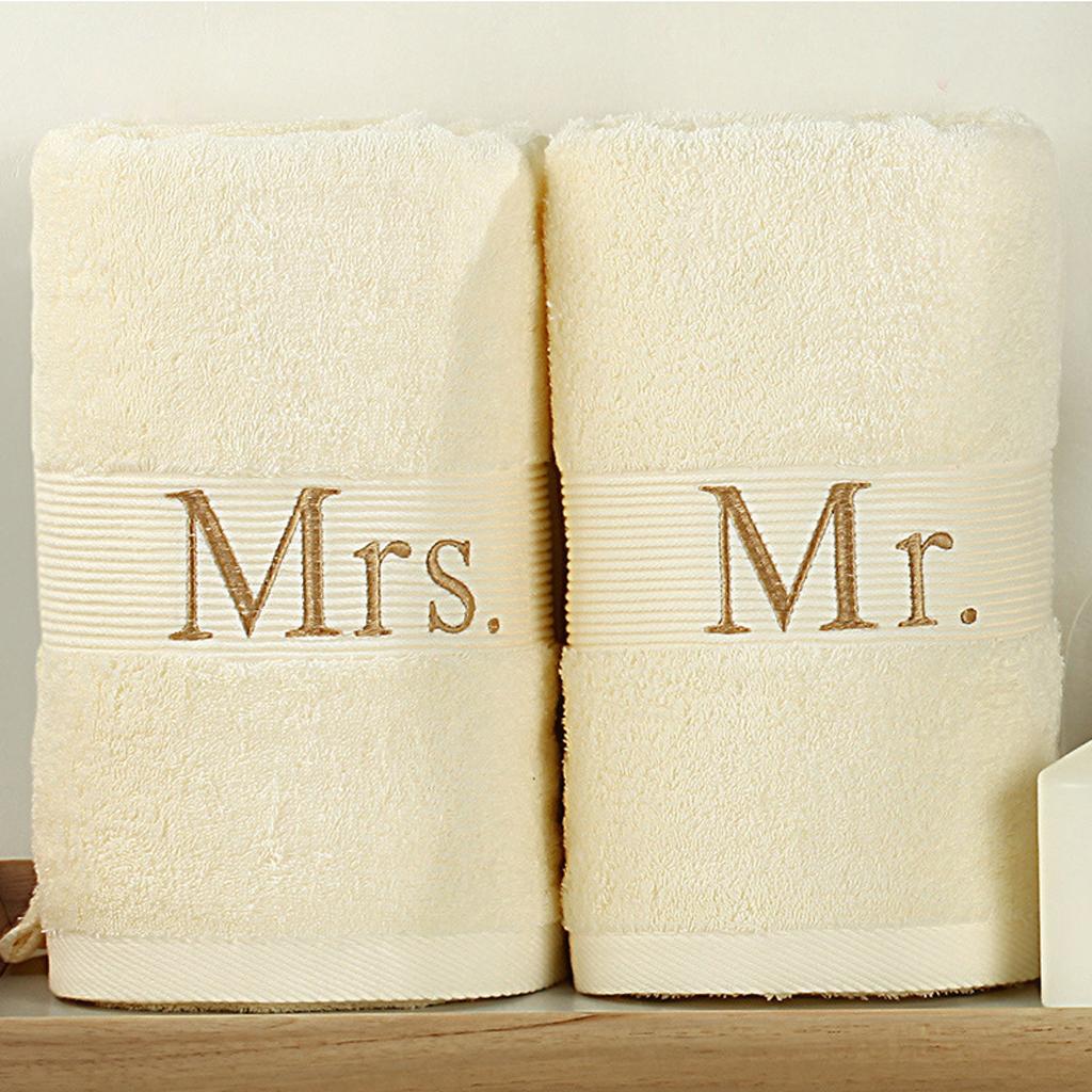 Wedding Engagement Cotton Embroidered Bath Towels Wedding Favor Mr Cream