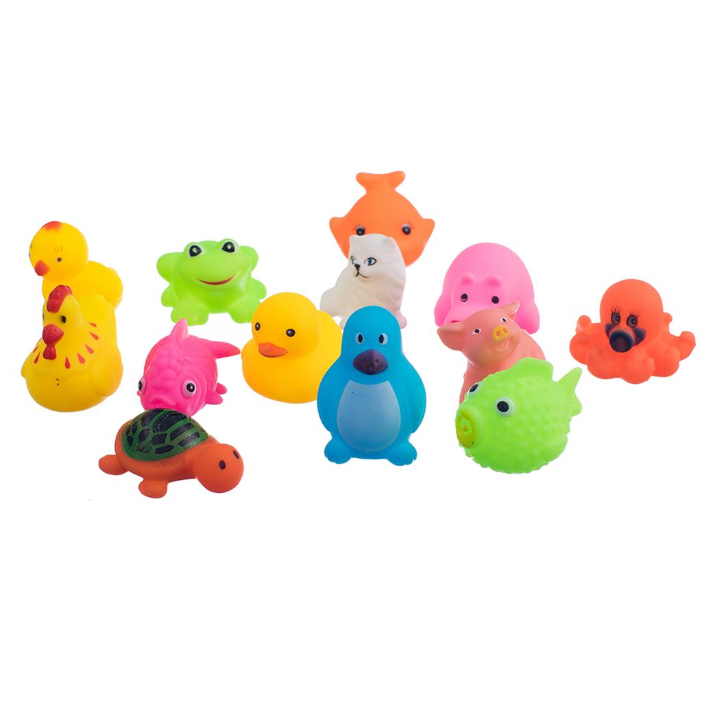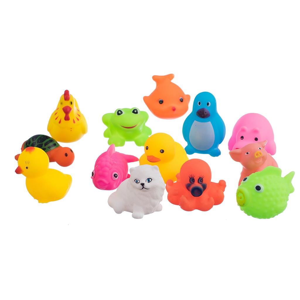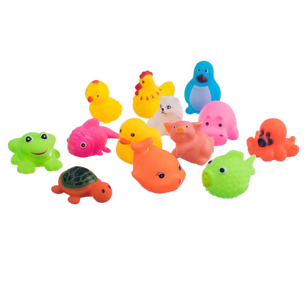 13Pcs Hot Bath Baby Soft Plastic Float Animals Toys Sqeeze Sound Wash Toys