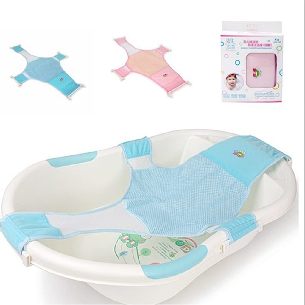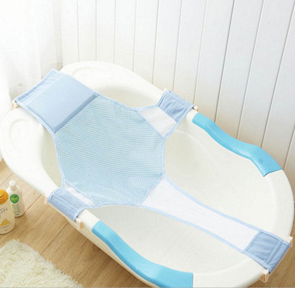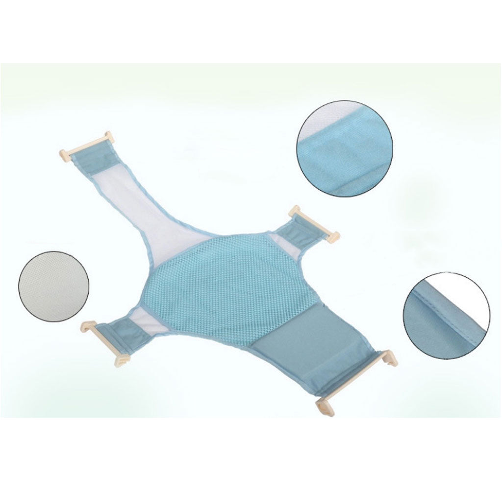 Infant Baby Adjustable Bath Seat Support Safety Cross Mesh Shower Net Blue
