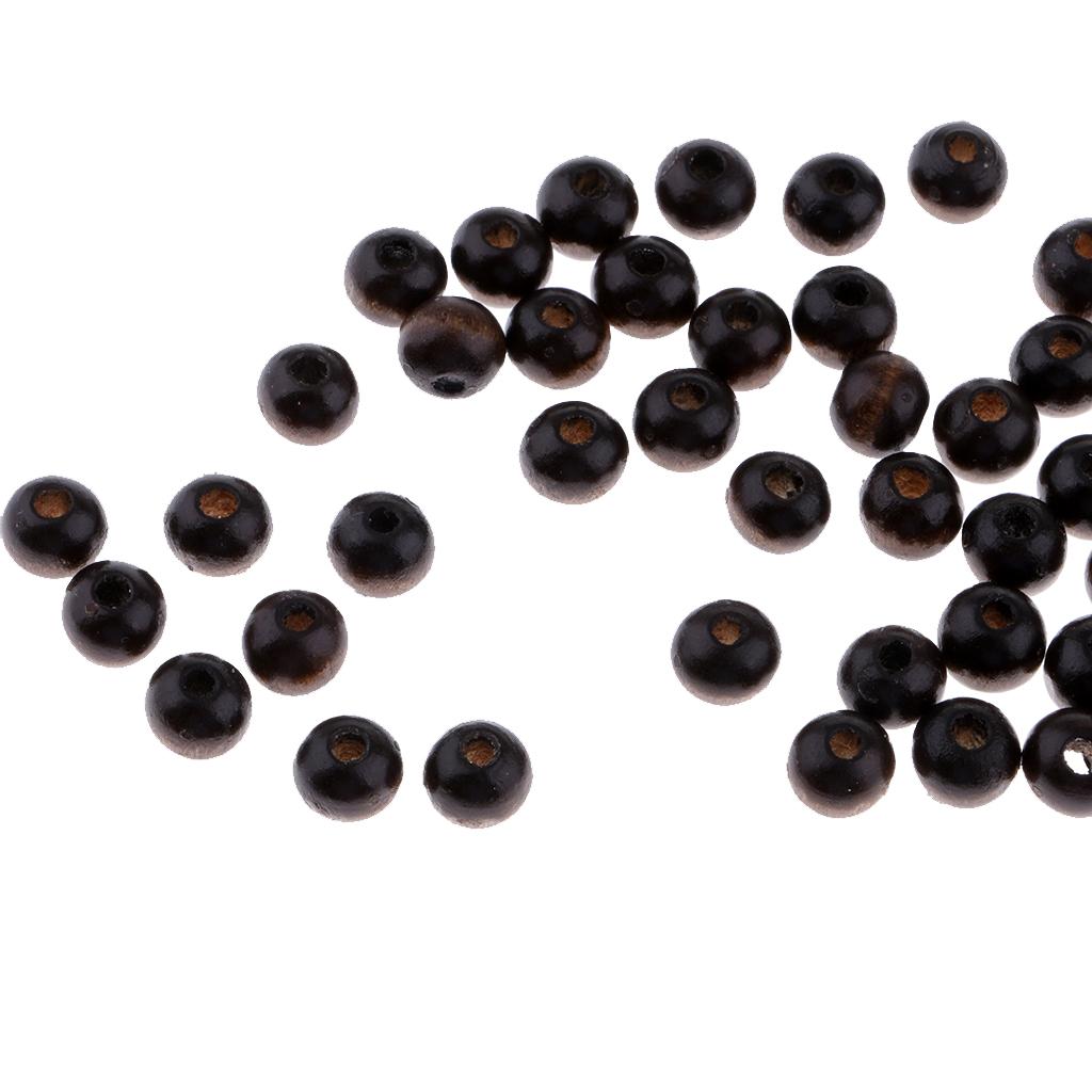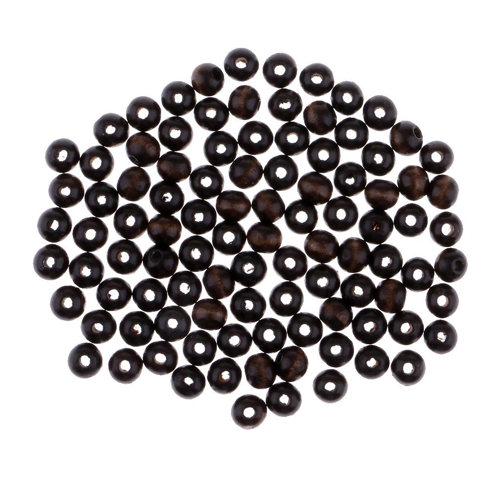 100 Piece Black Round Wooden Beads Charms for DIY Bracelet Necklace Jewelry Making Craft 8mm