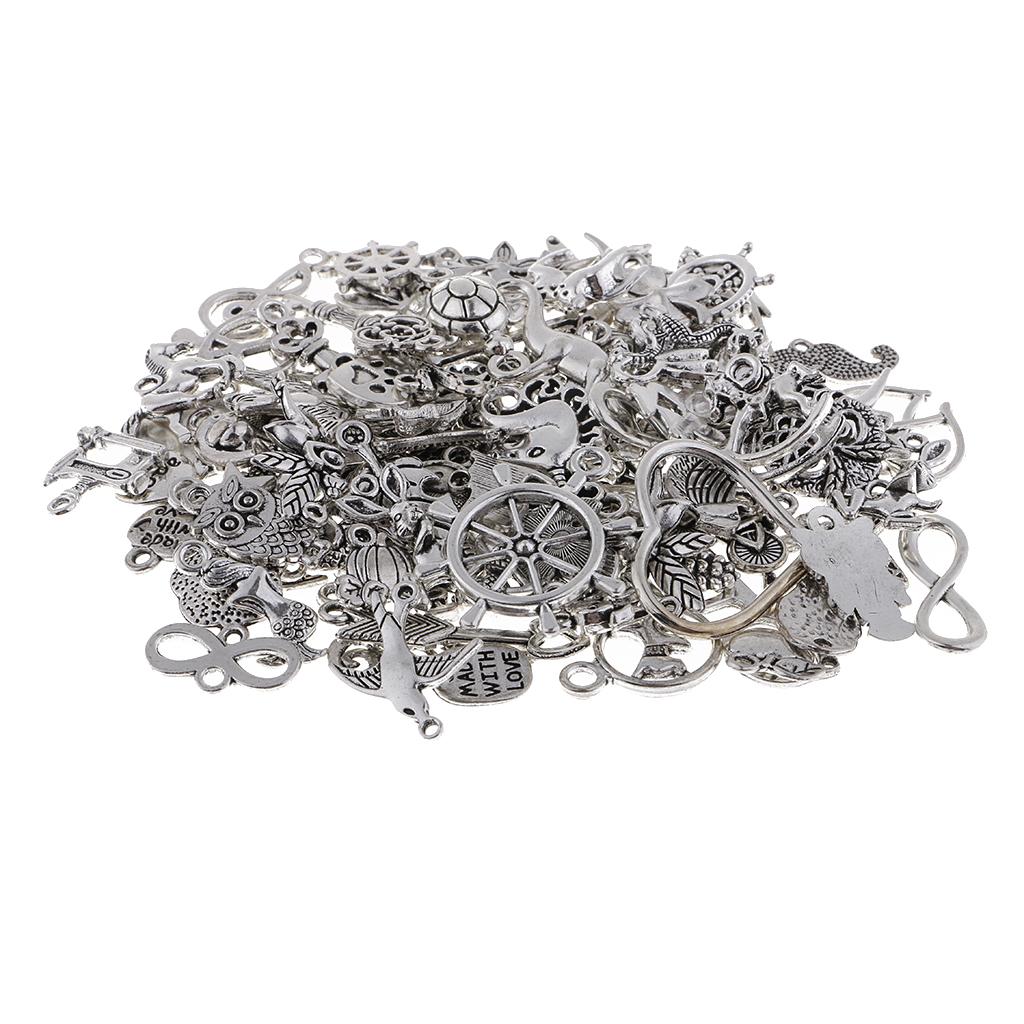 100 Piece Mixed Charms Pendants Assorted DIY Silver Charms Pendant for Crafting Bracelet Necklace Jewelry Findings Jewelry Making Accessories