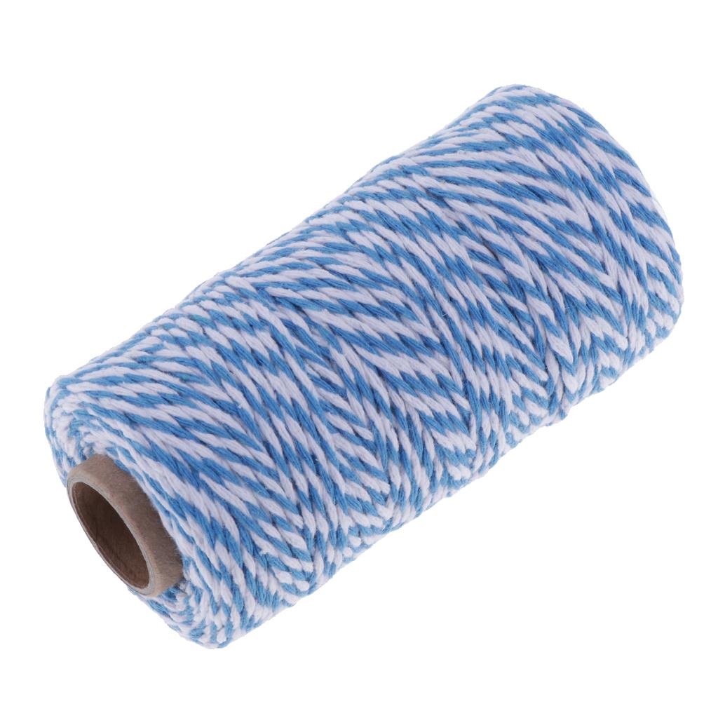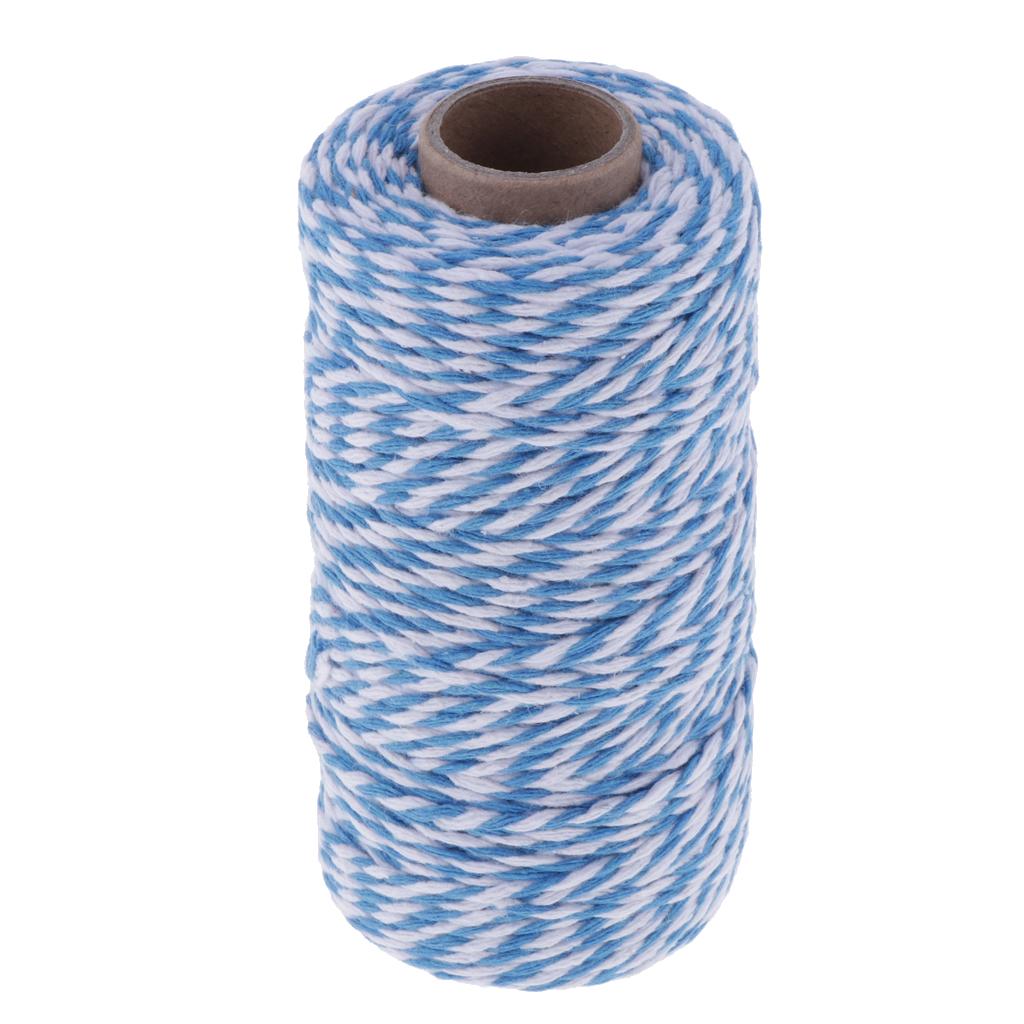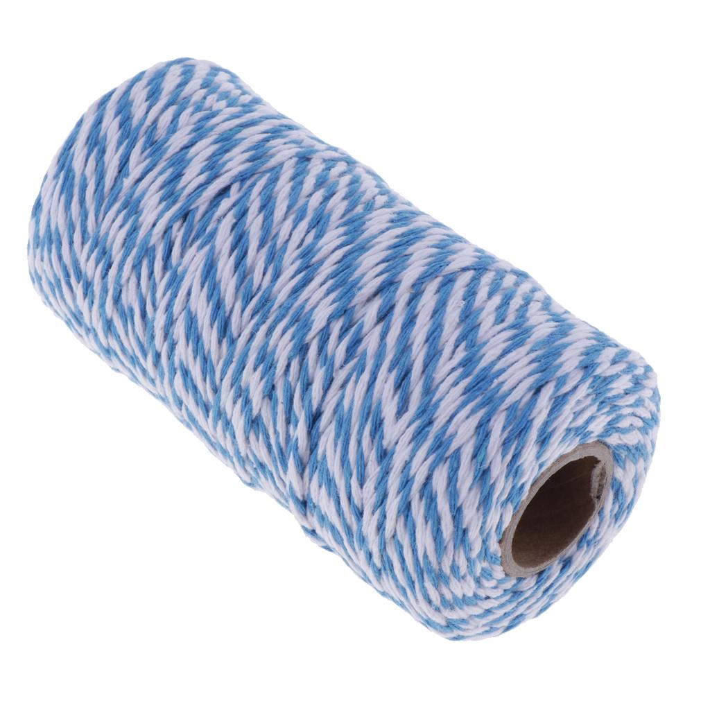 100M Wrap Gift Cotton Rope Ribbon Twine Rope Cord String Sky Blue, White