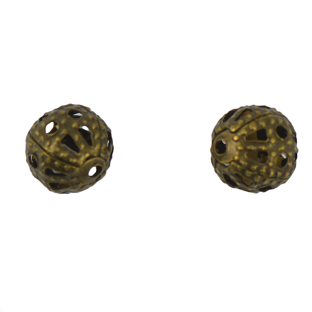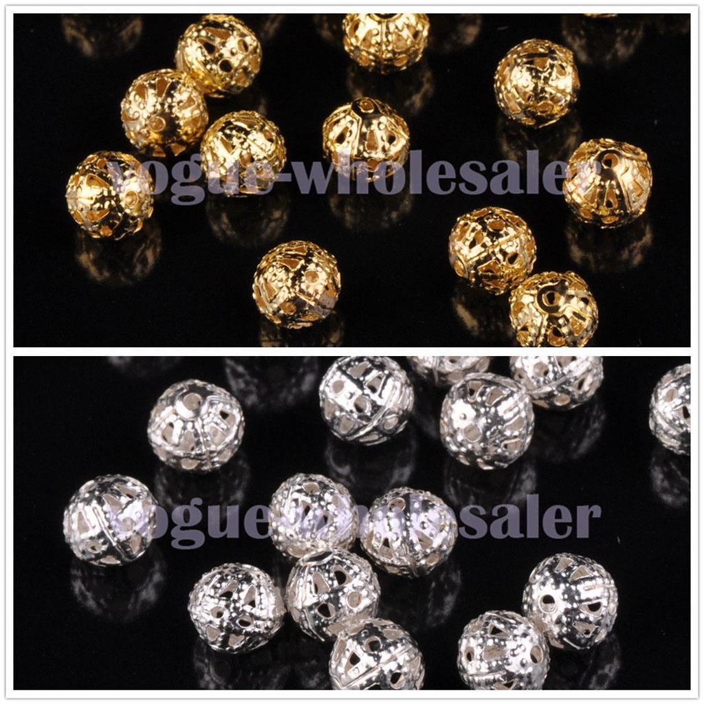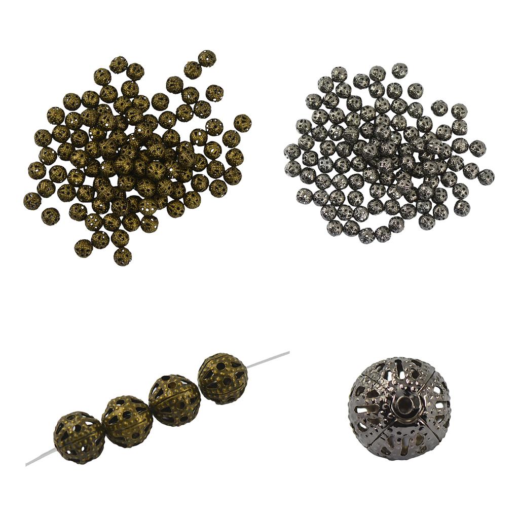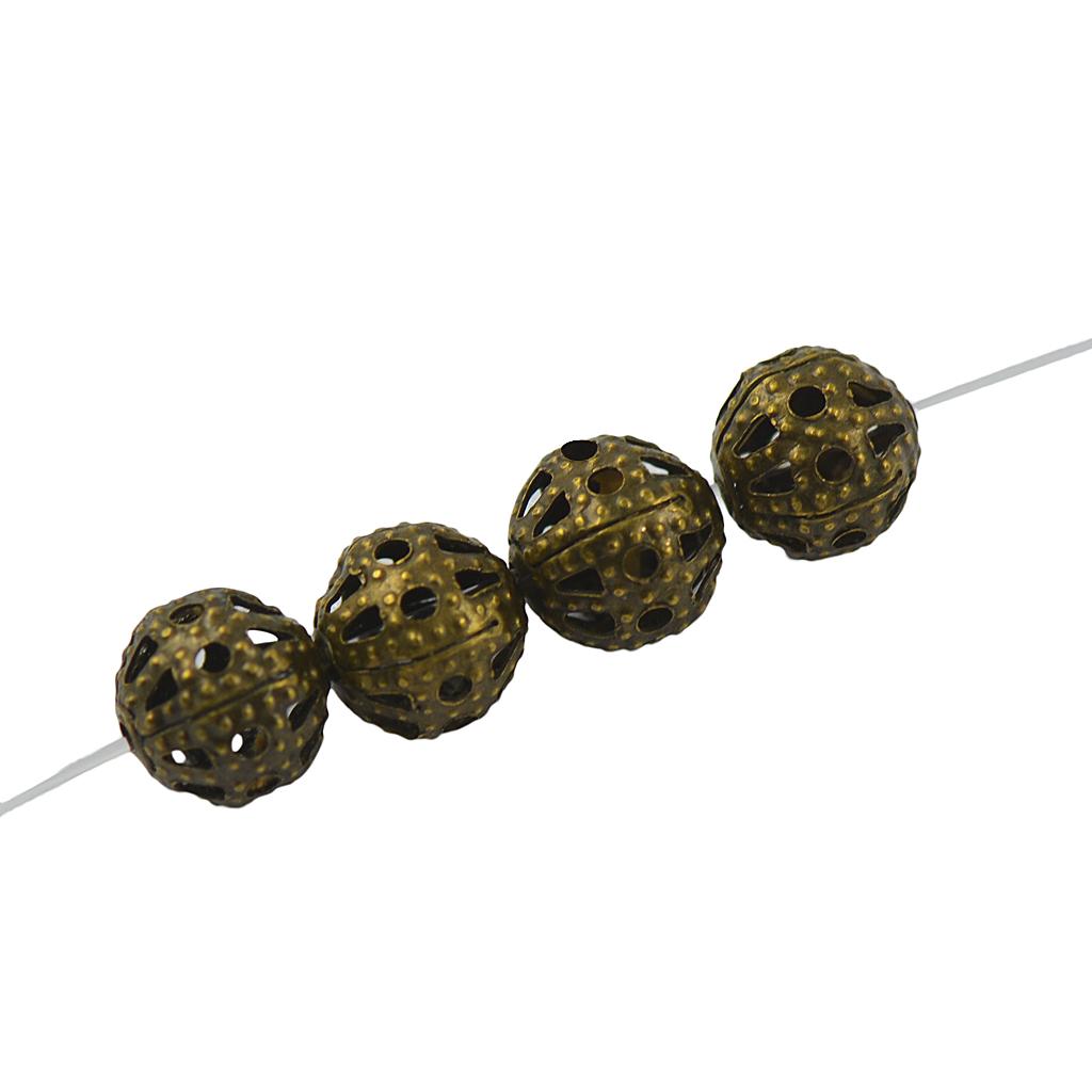 100pca 8mm Hollow Filigree Round Metal Charms Beads Jewelry Findings Bronze