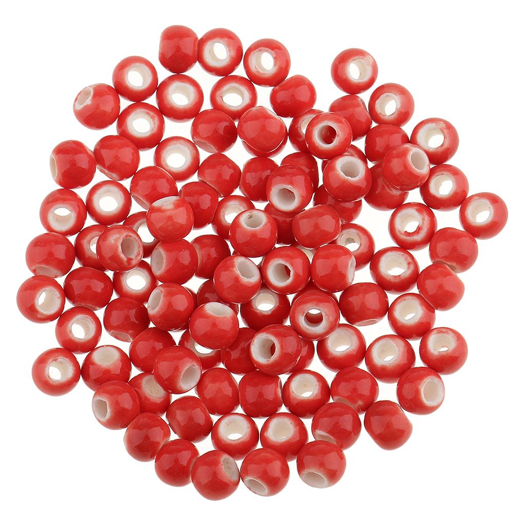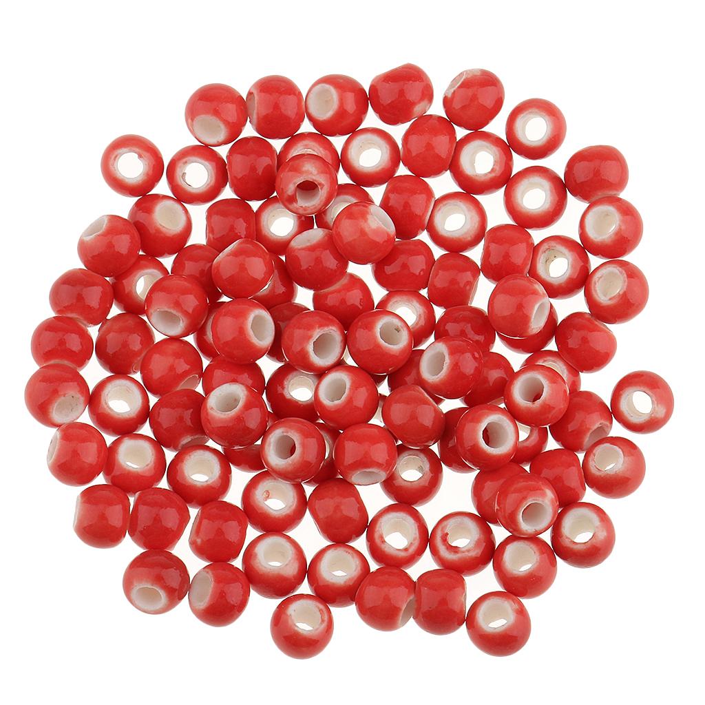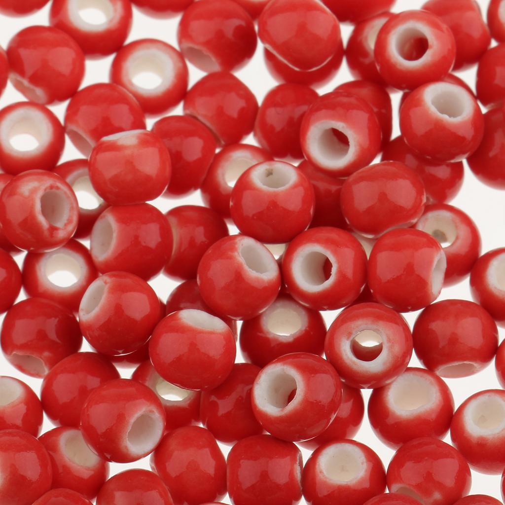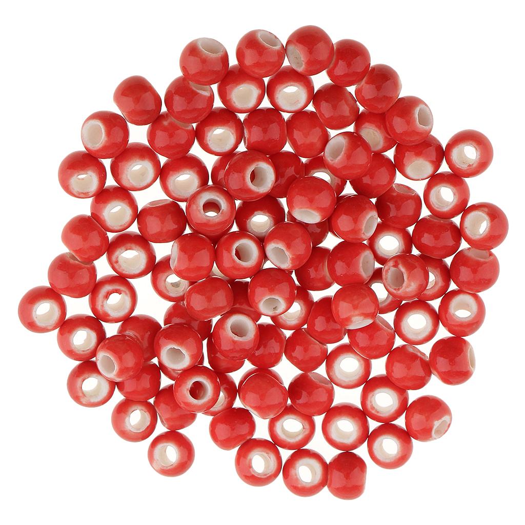 100pcs 6mm Ceramic Loose Beads Charms for DIY Jewelry Making Red