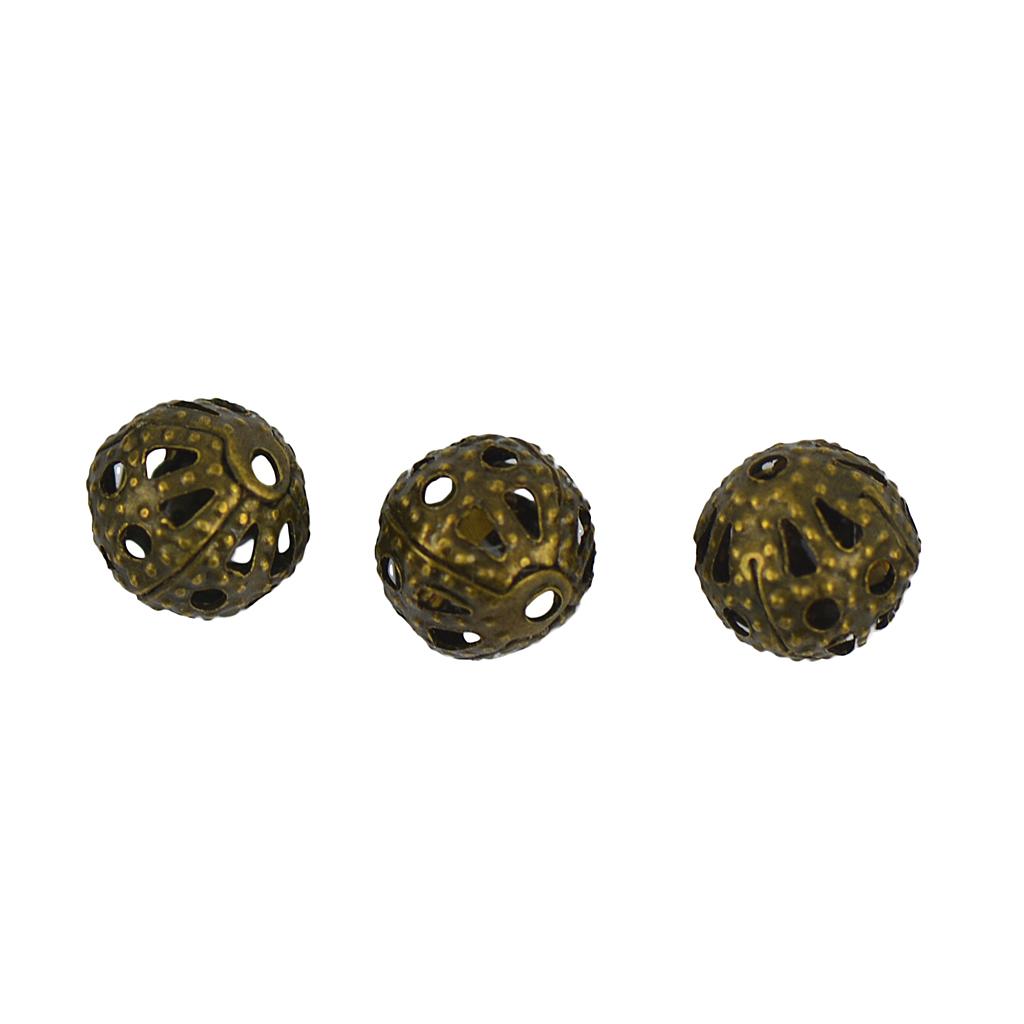 100pcs 6mm Hollow Filigree Round Metal Charms Beads Jewelry Findings Bronze