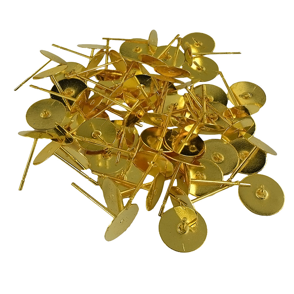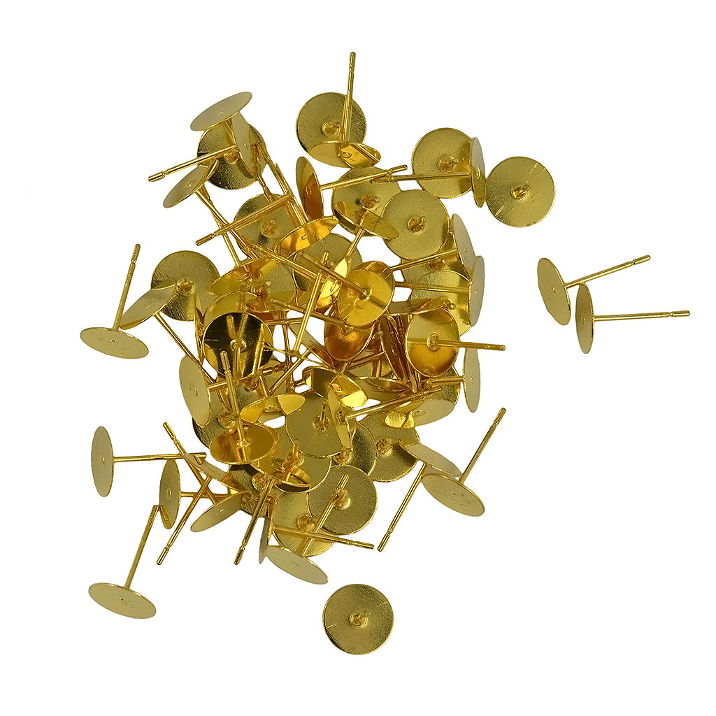 100pcs 8mm Blank Pad Stud Earring Post Peg Pin DIY Making Findings-Gold