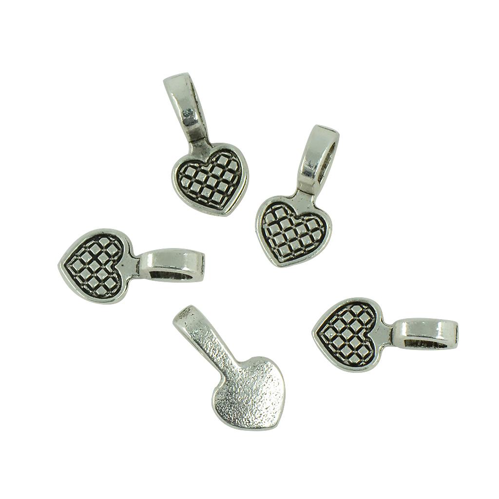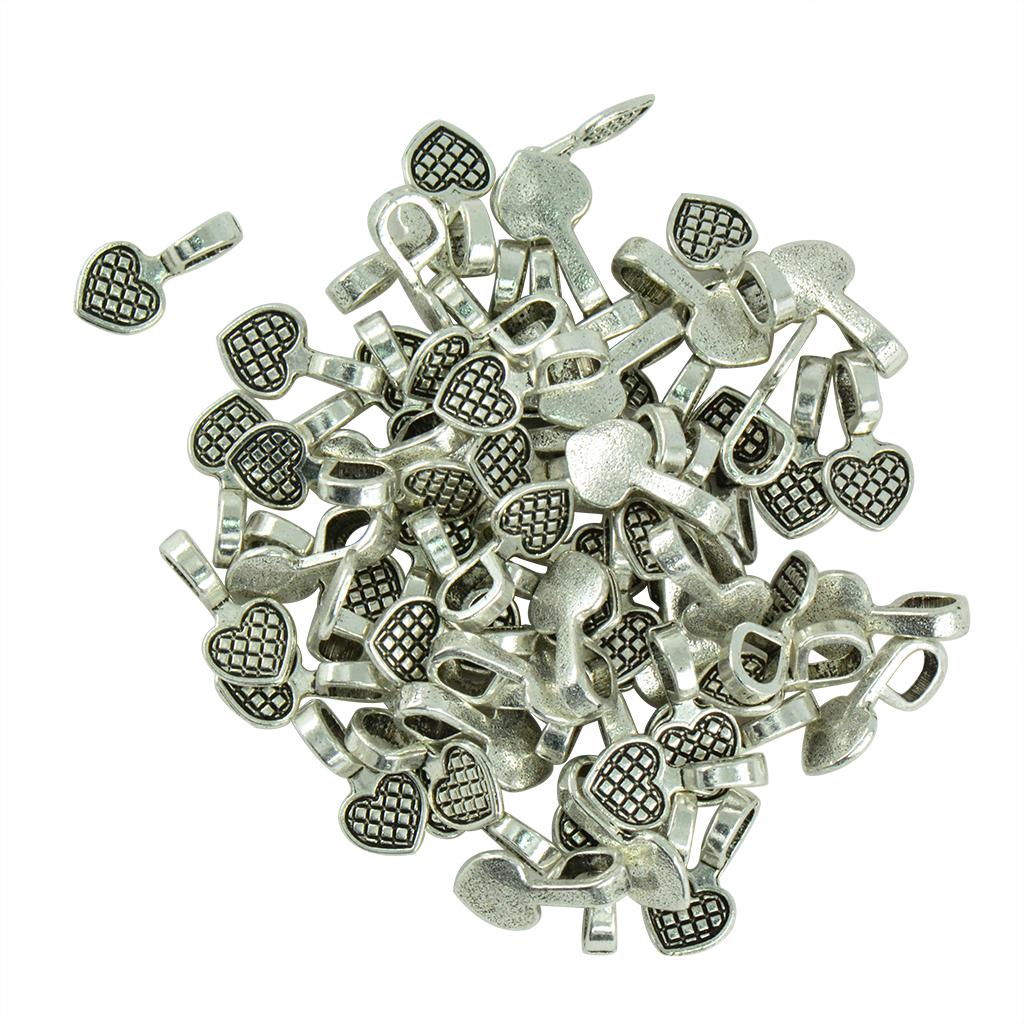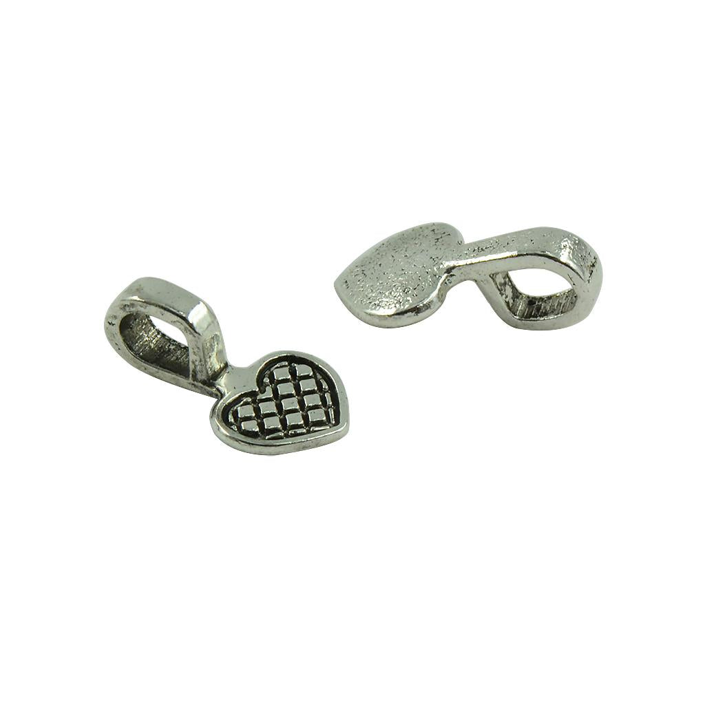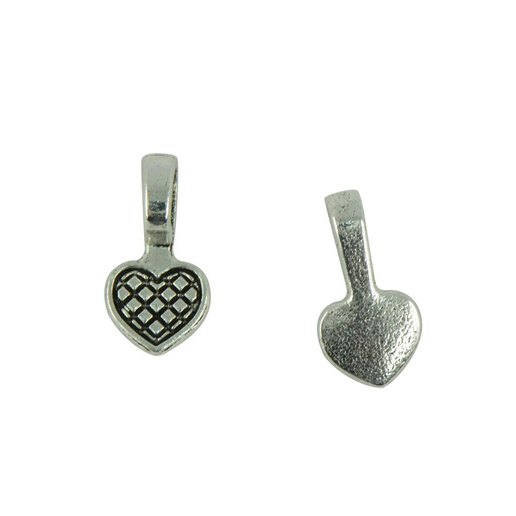 Glue-on flat pad bail has a decorative heart design and closed loop. No need for wire wrapping or drilling holes into focal pieces.