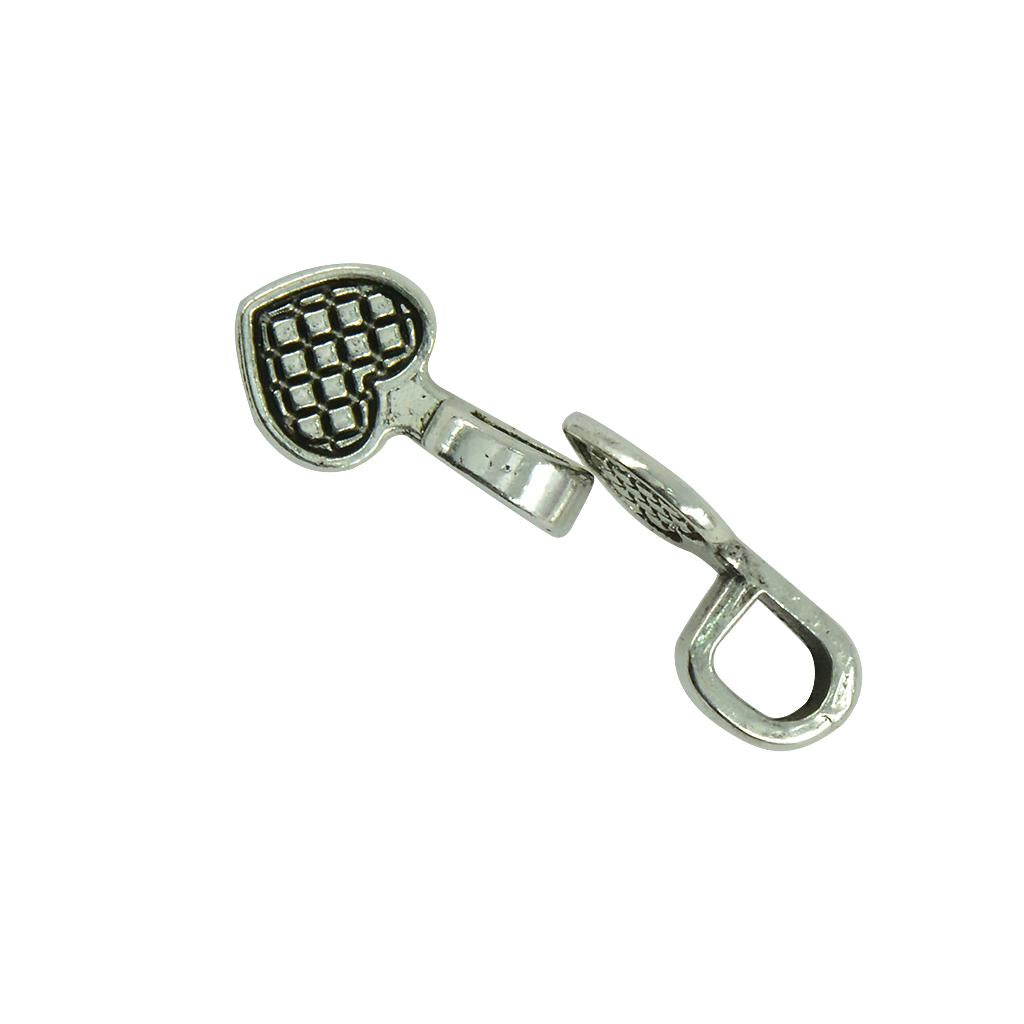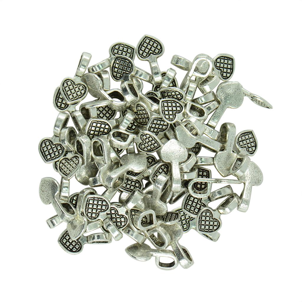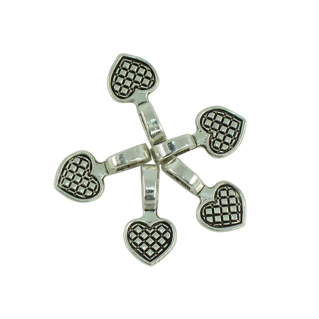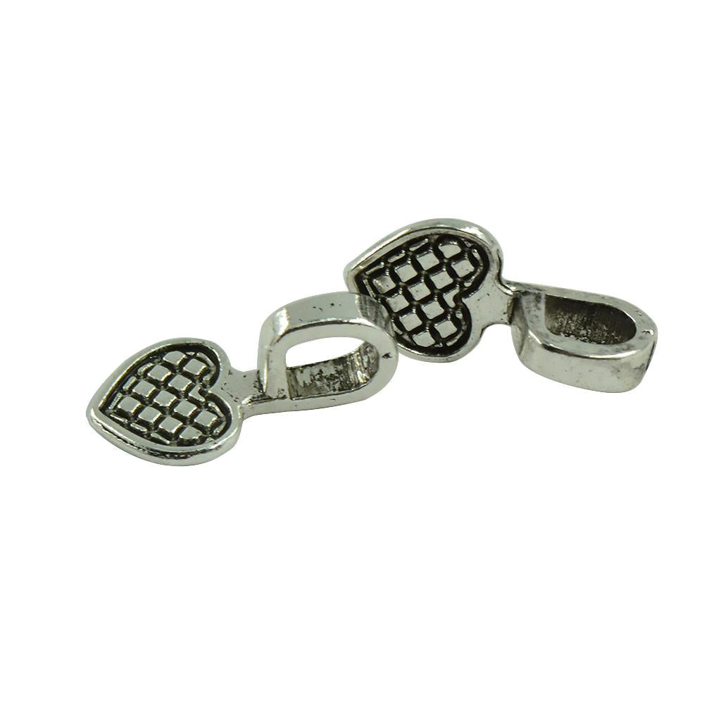 Glue-on flat pad bail has a decorative heart design and closed loop. No need for wire wrapping or drilling holes into focal pieces.