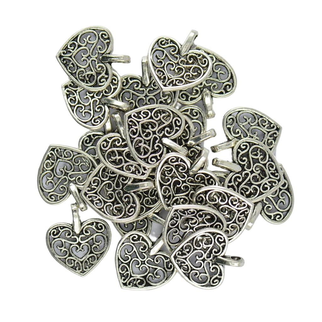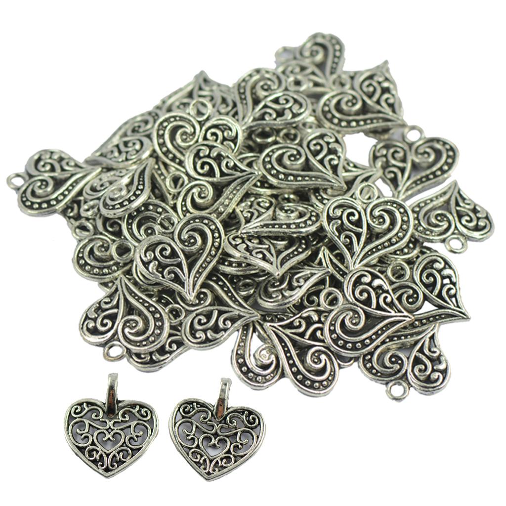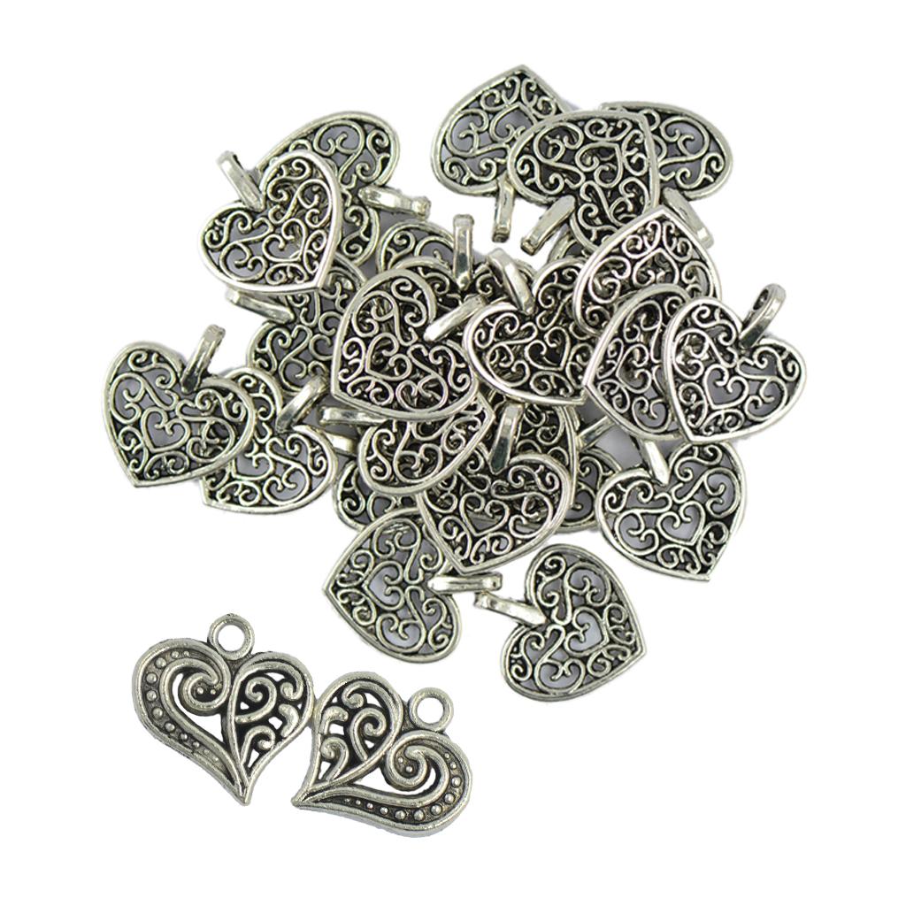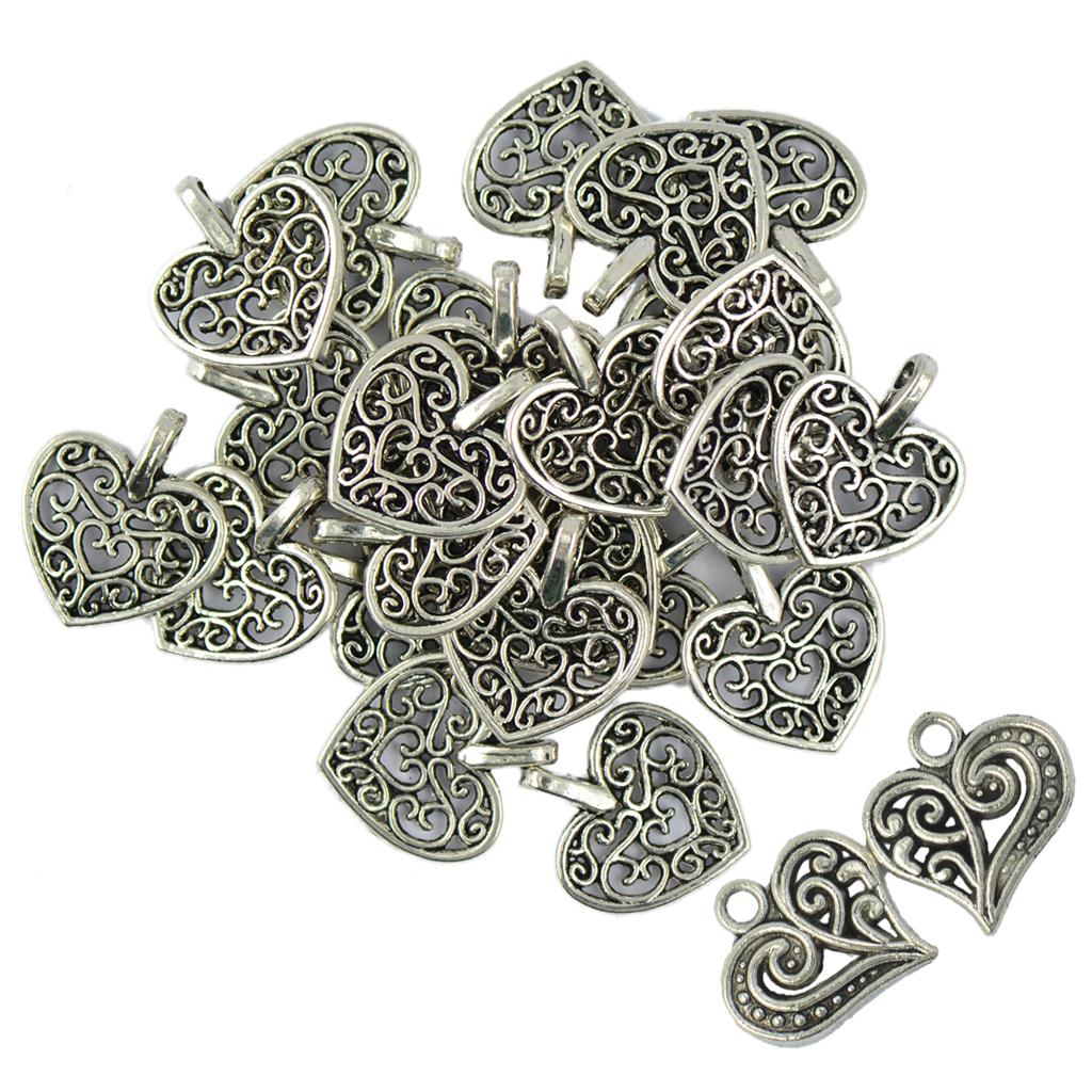 100pcs Antique Tibet Silver Charms Heart Beads Pendants Jewelry Accessories