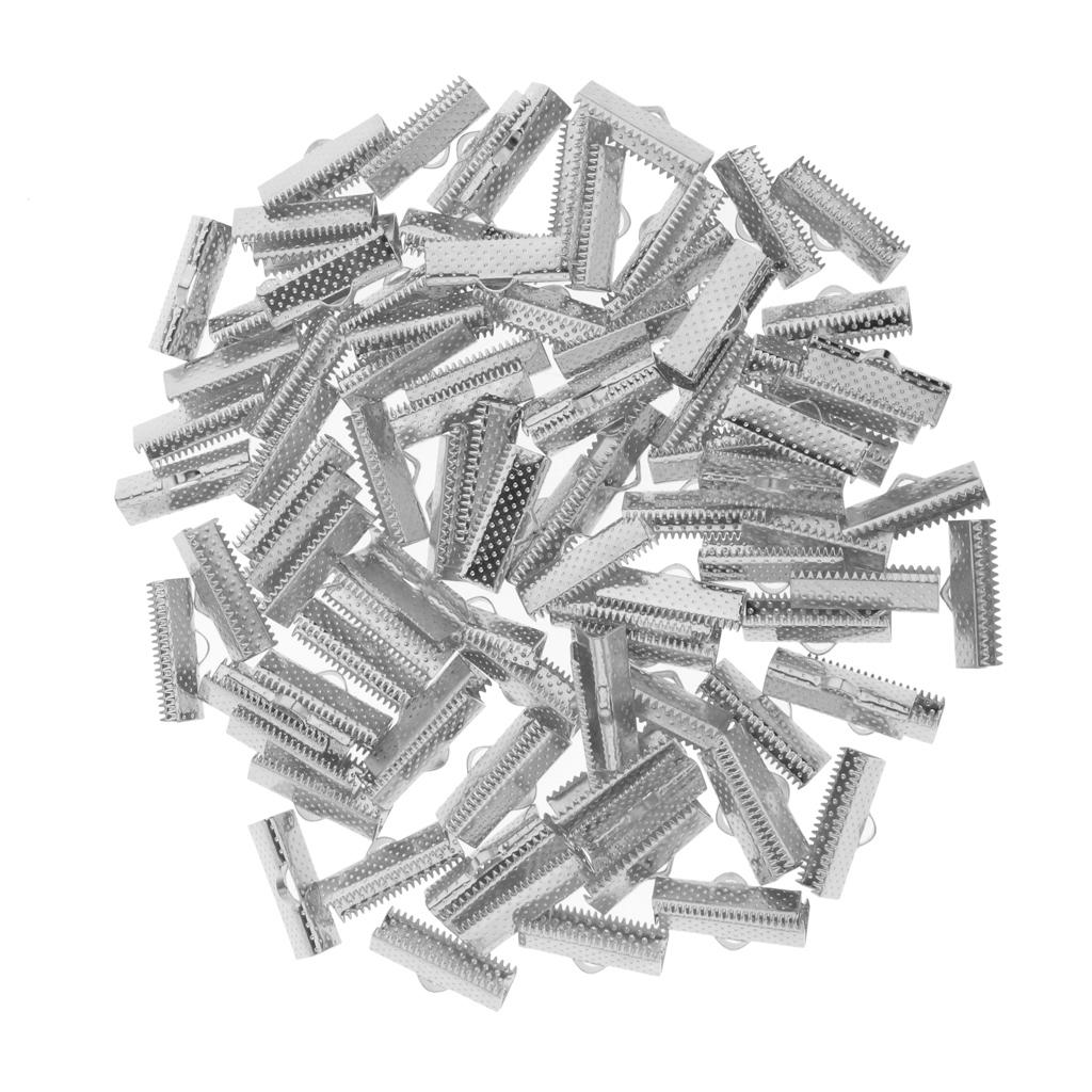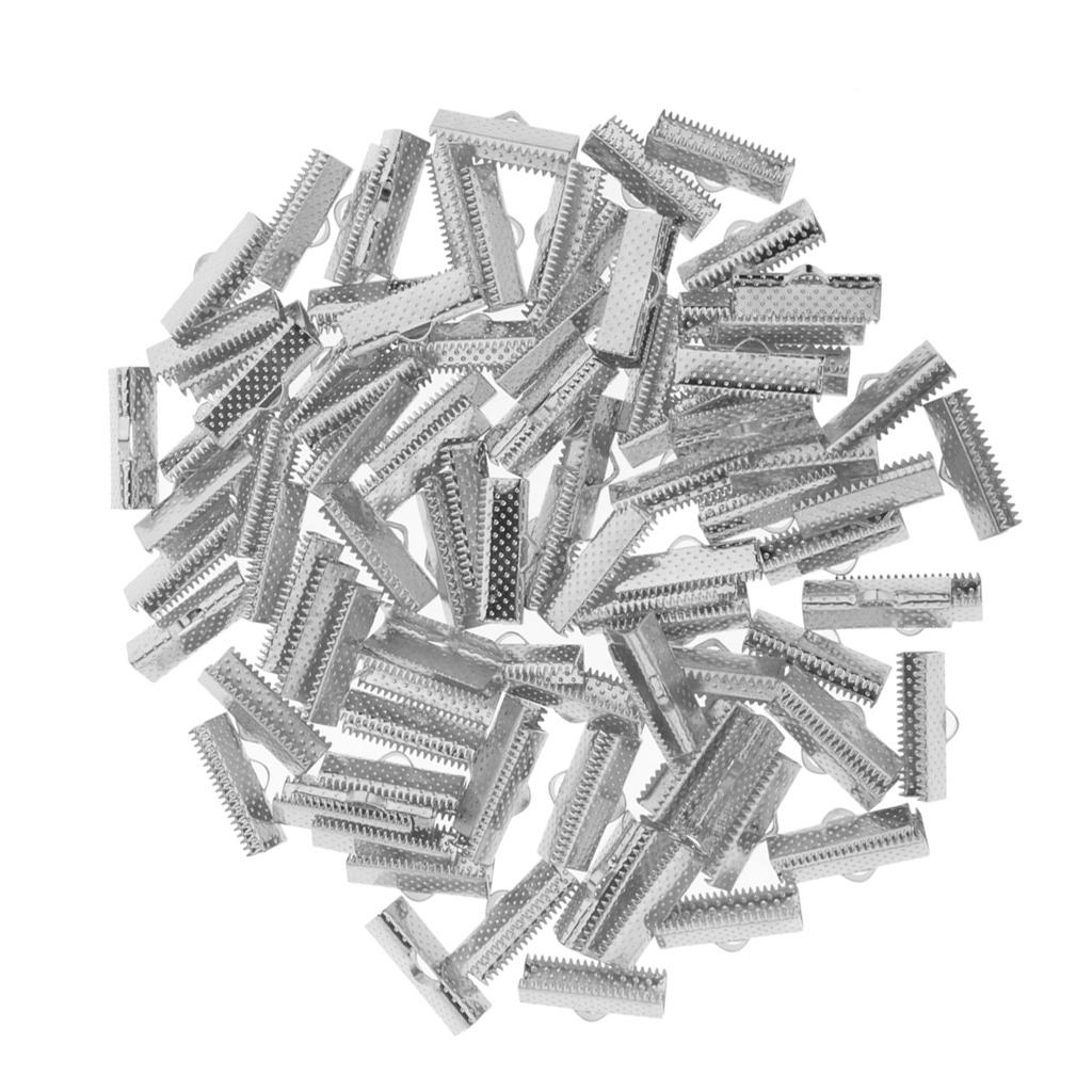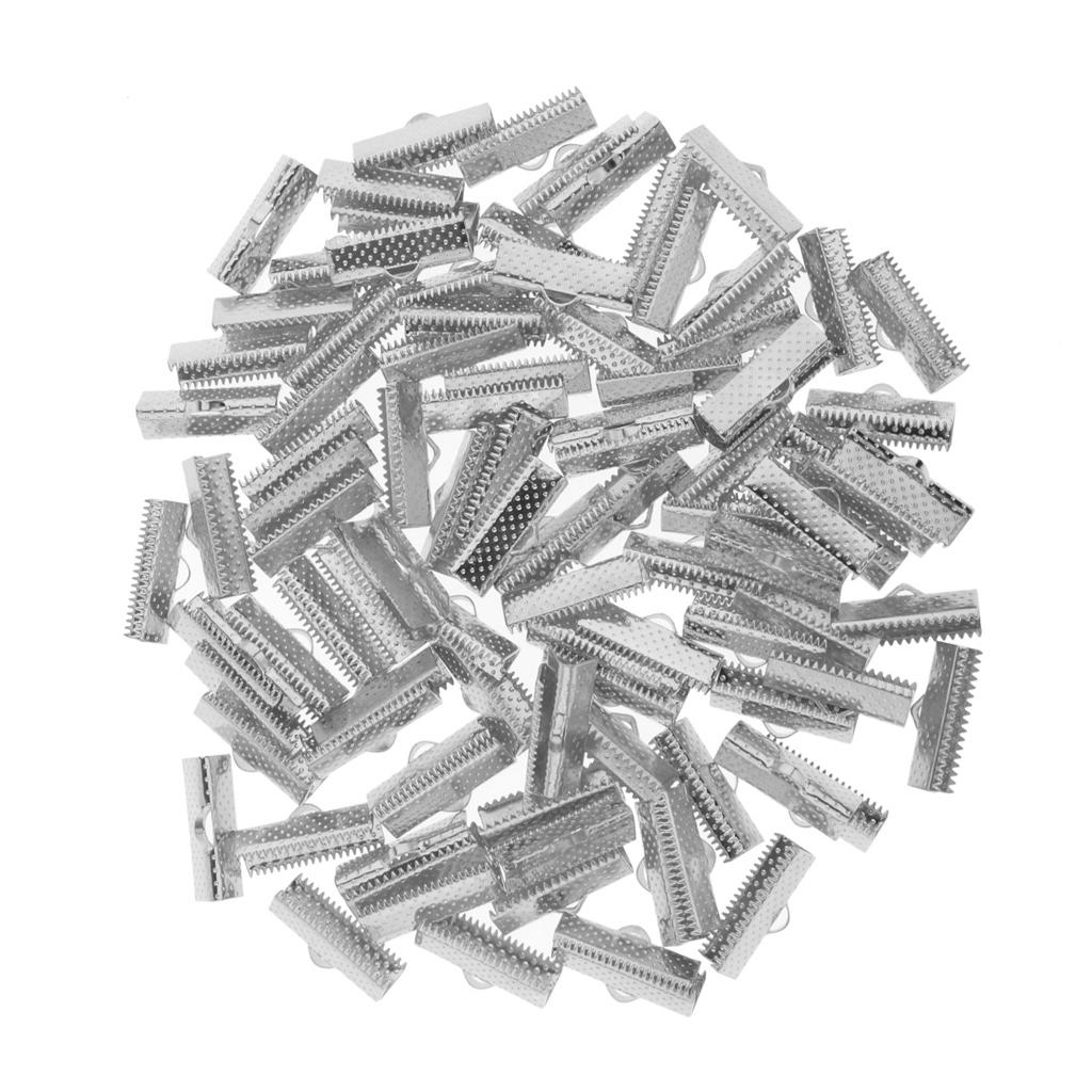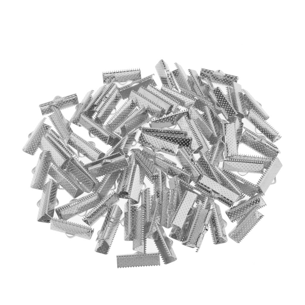 100pcs Clamp Cord Crimp End Cap Tip Bracelet Connectors 20mm Dull Sliver