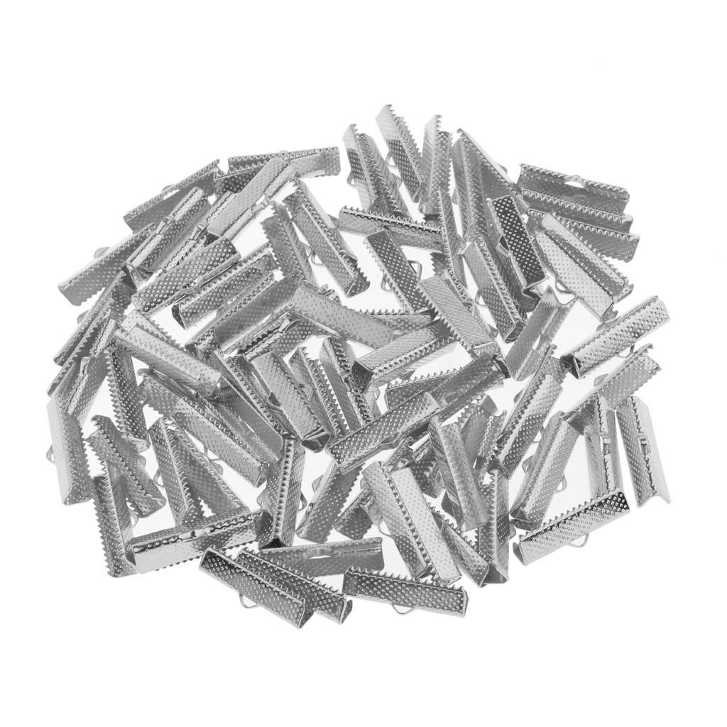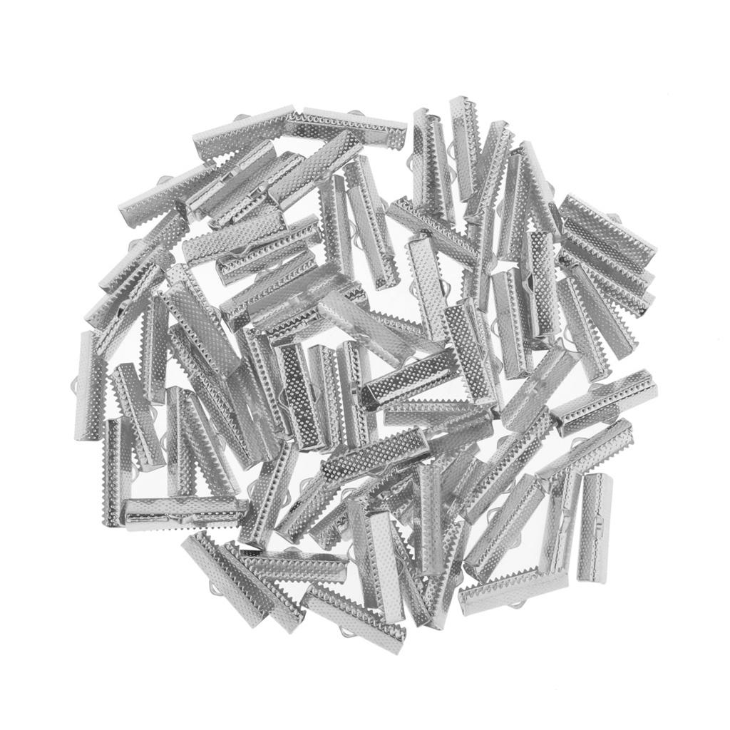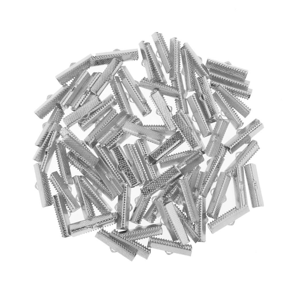 100pcs Clamp Cord Crimp End Cap Tip Bracelet Connectors 25mm Dull Sliver