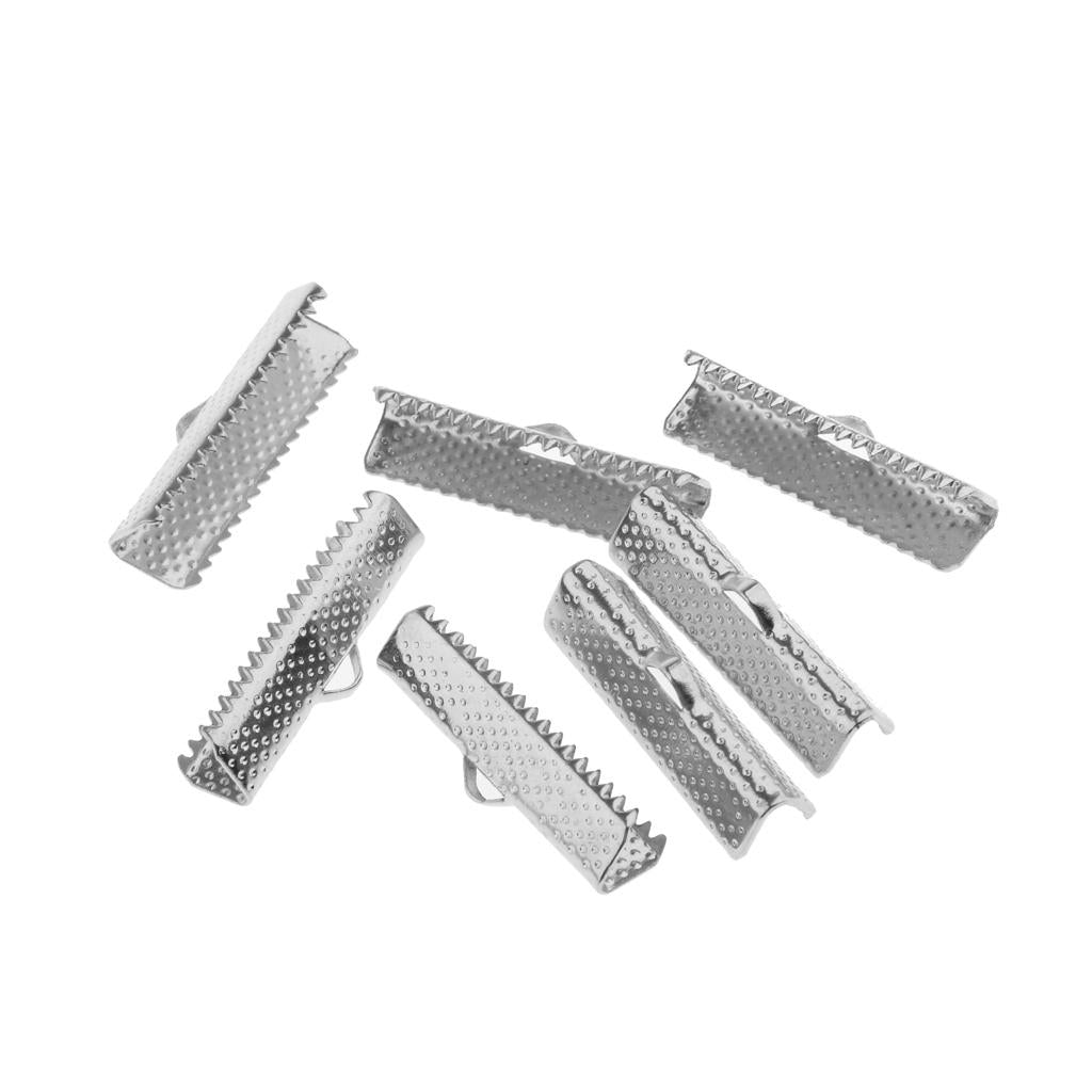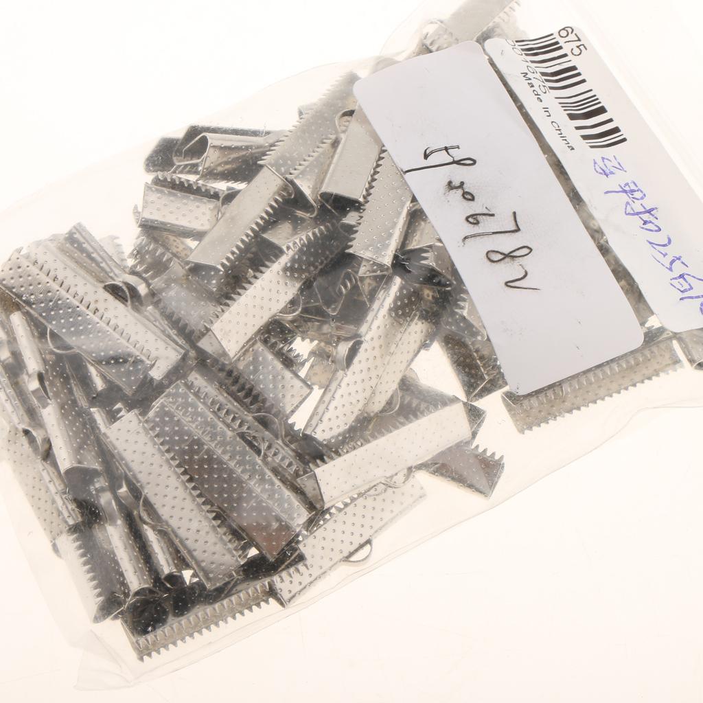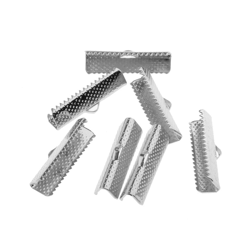 100pcs Clamp Cord Crimp End Cap Tip Bracelet Connectors 25mm Dull Sliver