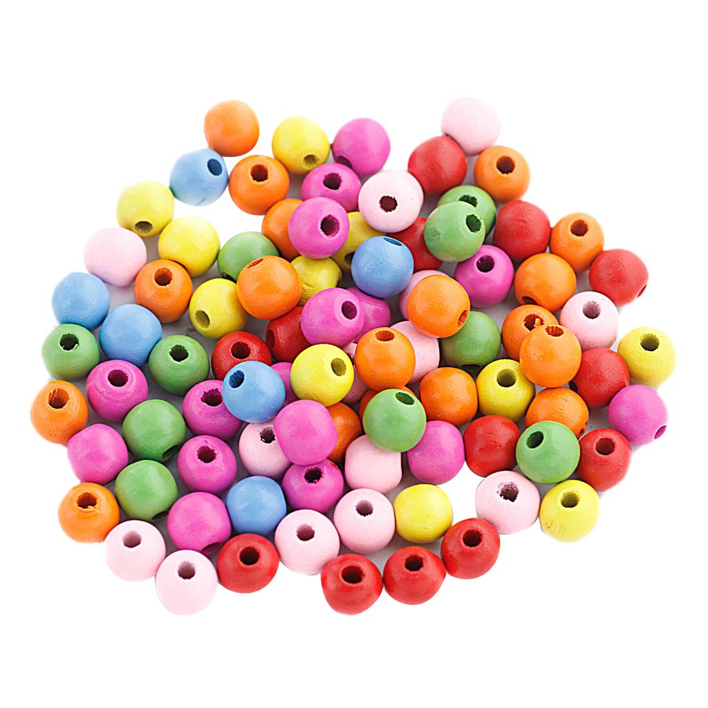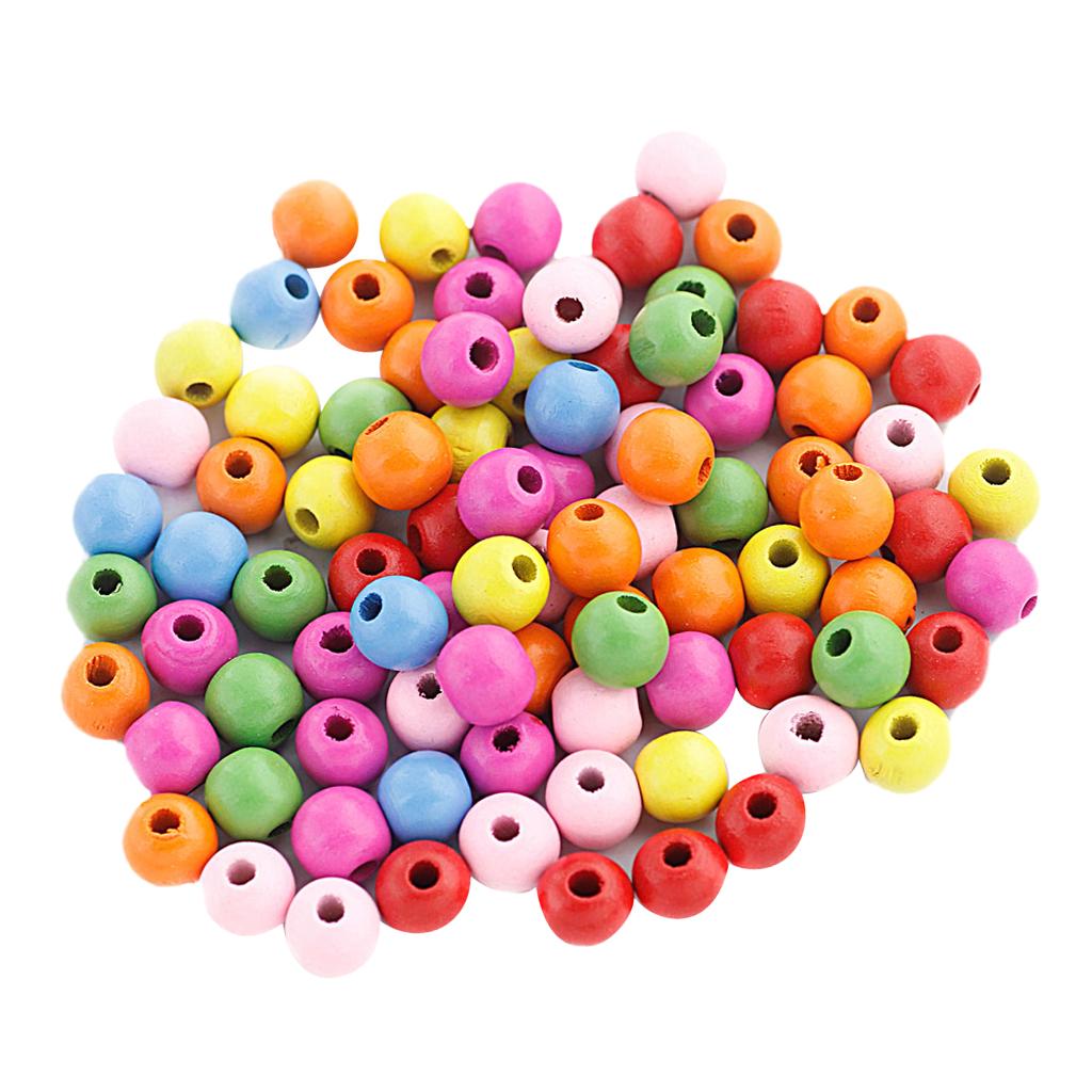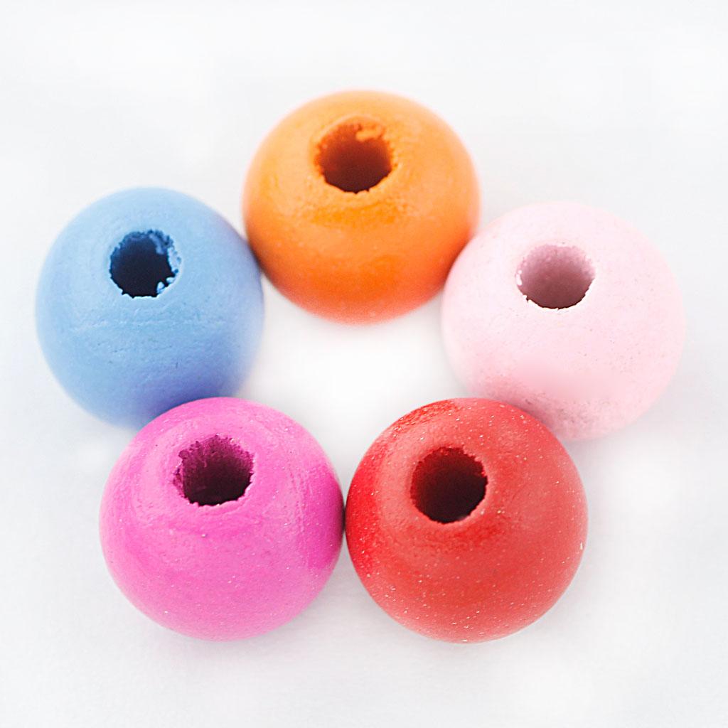 100Pcs Mixed Color Wooden Round Bead With Hole for DIY Craft Findings 12mm