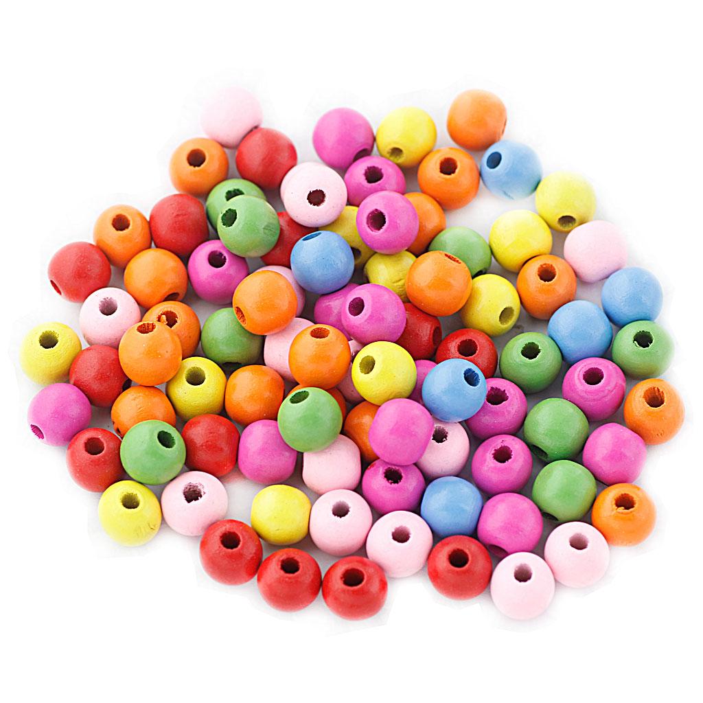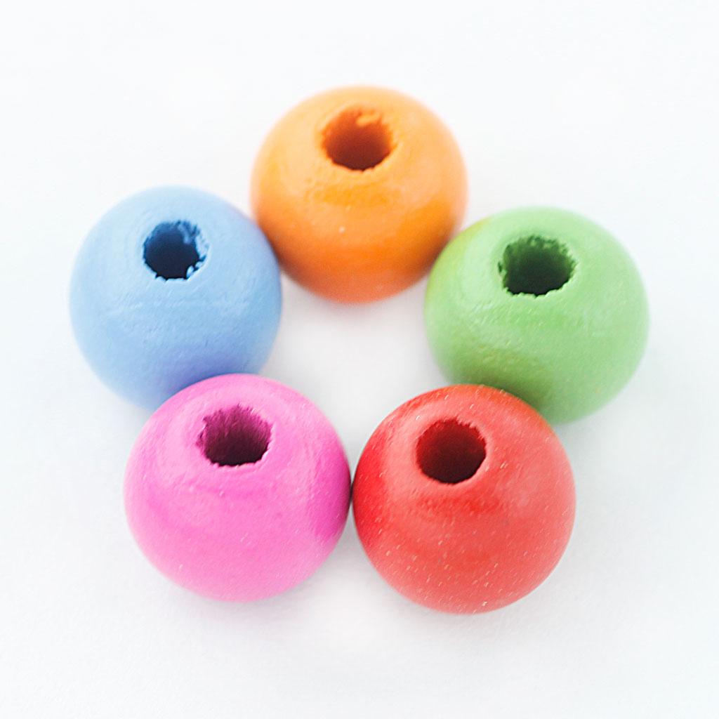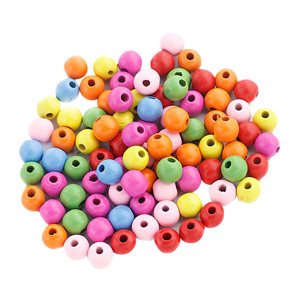 100Pcs Mixed Color Wooden Round Bead With Hole for DIY Craft Findings 12mm