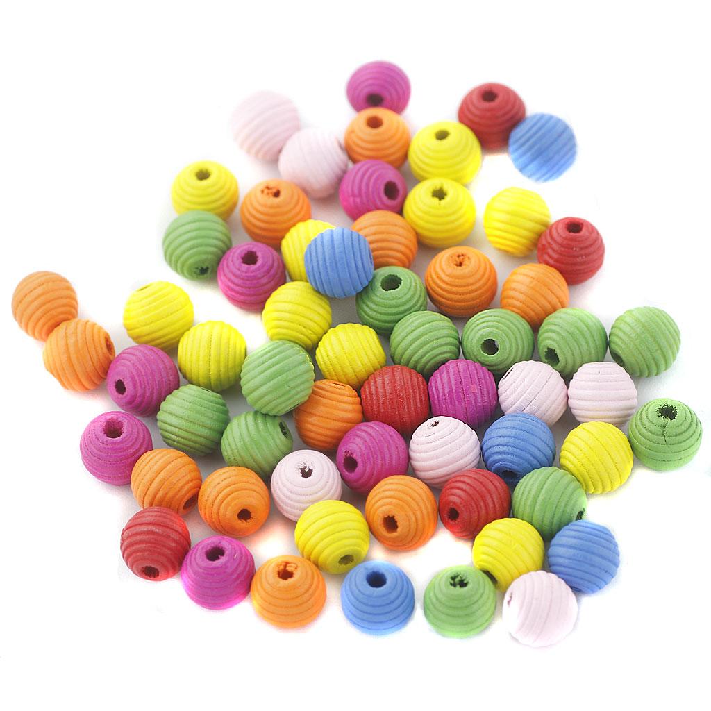 100Pcs Mixed Stripy Wooden Bead With Hole for DIY Craft Findings 12mm