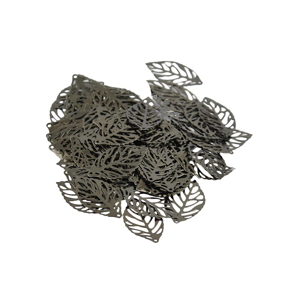 100pcs Pierced Tree Leaves Charm Pendant Jewelry Making Home Decor Jet Black